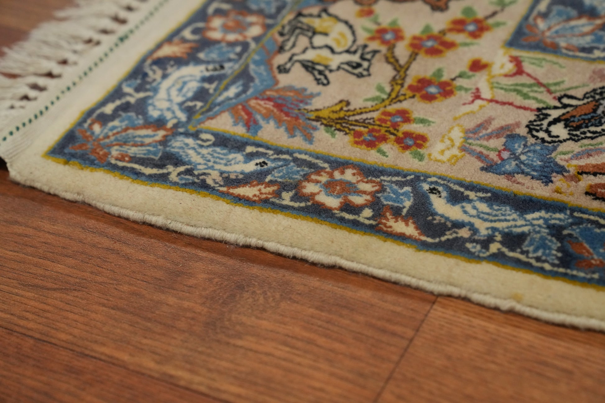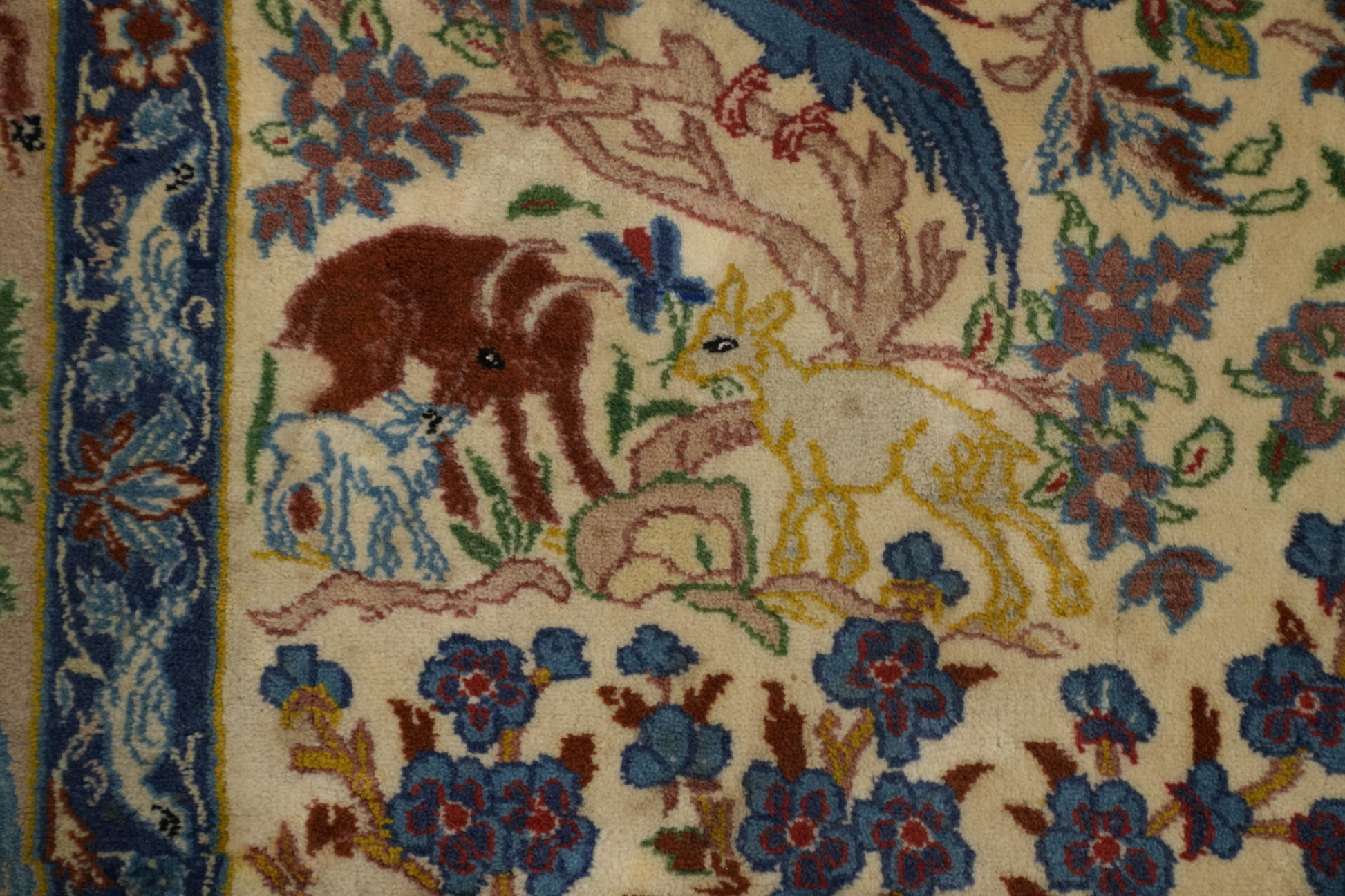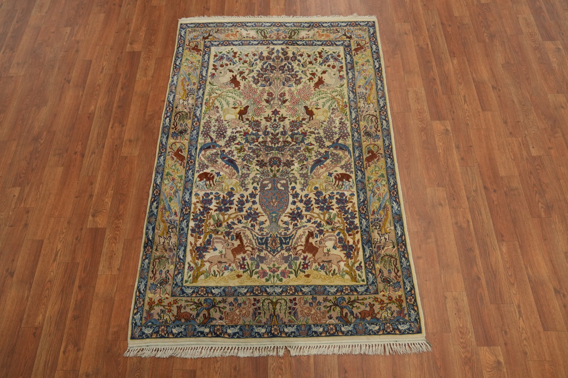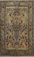 Vegetable Dye Silk Animals Isfahan Persian Rug 4x7