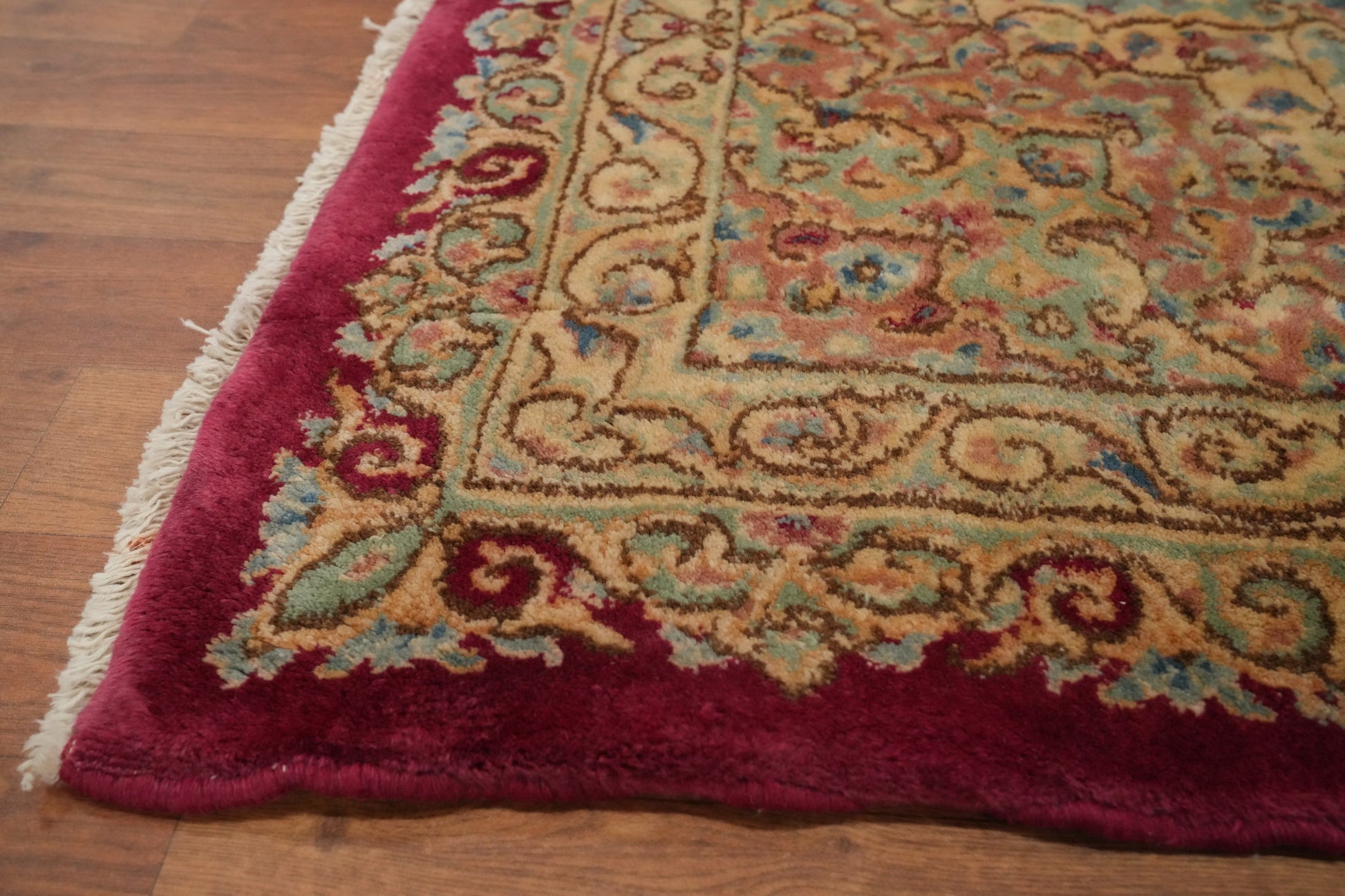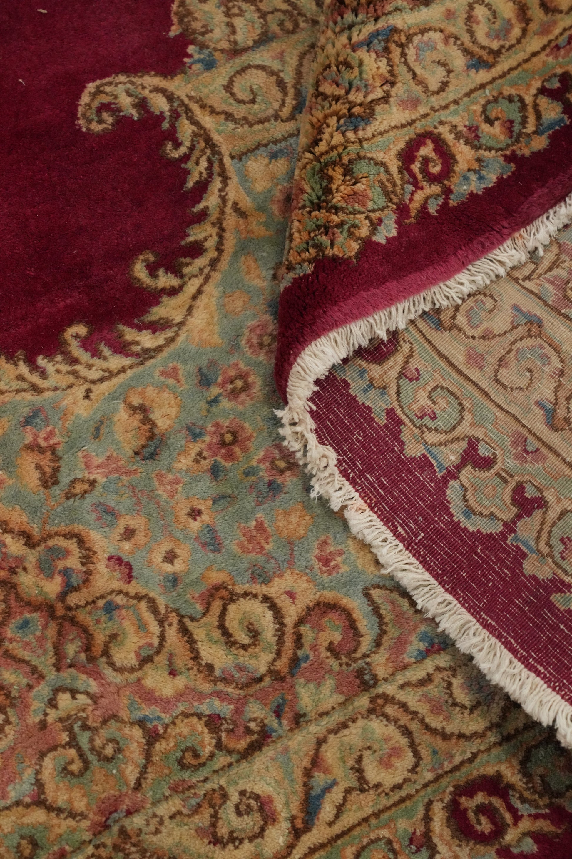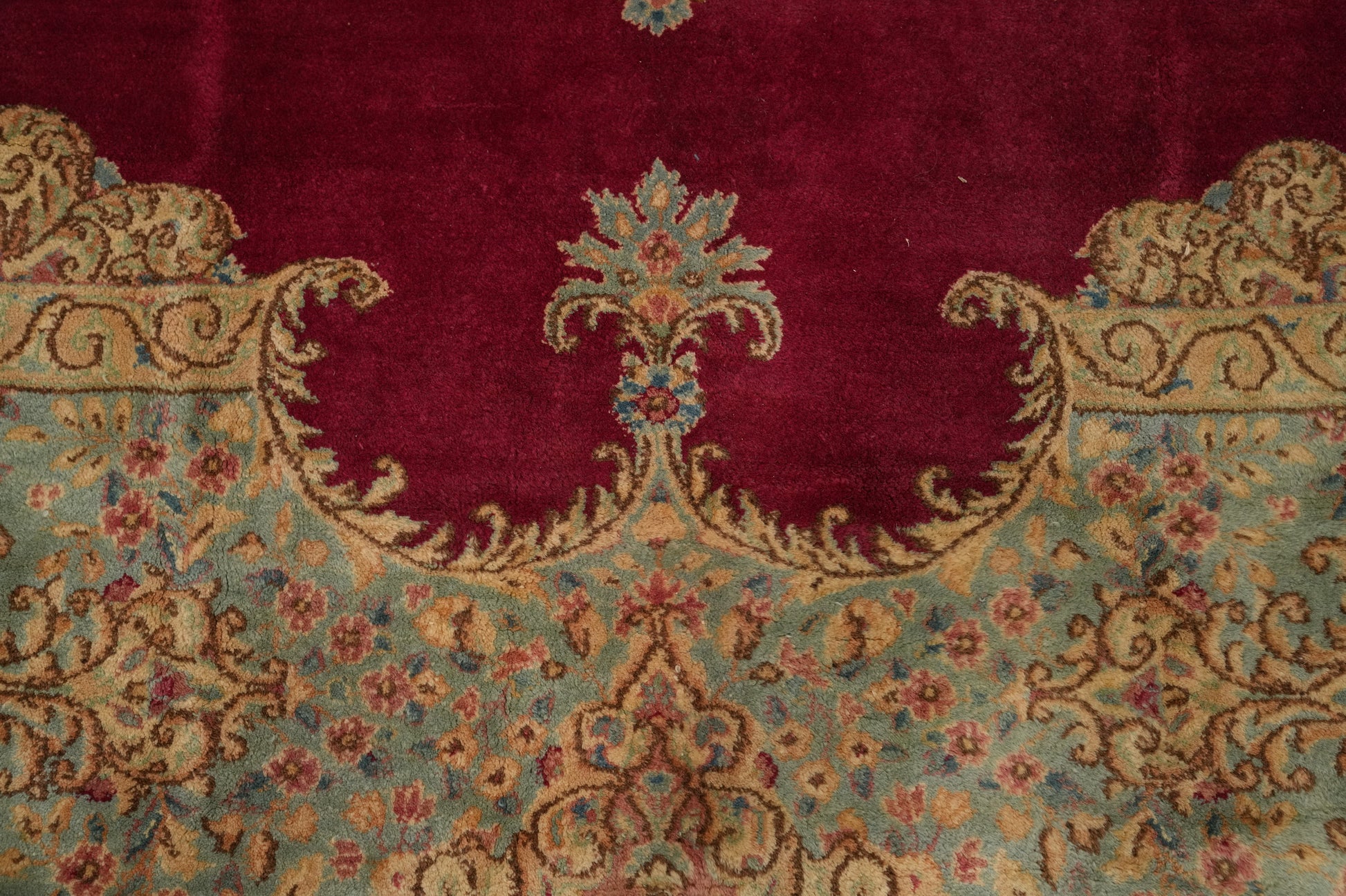 A Beautiful Genuine Persia ( Persia ) Kerman rug is Hand Knotted by skillful weavers in Persia ( Persia ) with 100% Wool Material. This rug is in Very Good condition. dimensions are 11' 6'' X 11' 7'' in foot and 351 X 353 in centimeter. the primary color is Red.