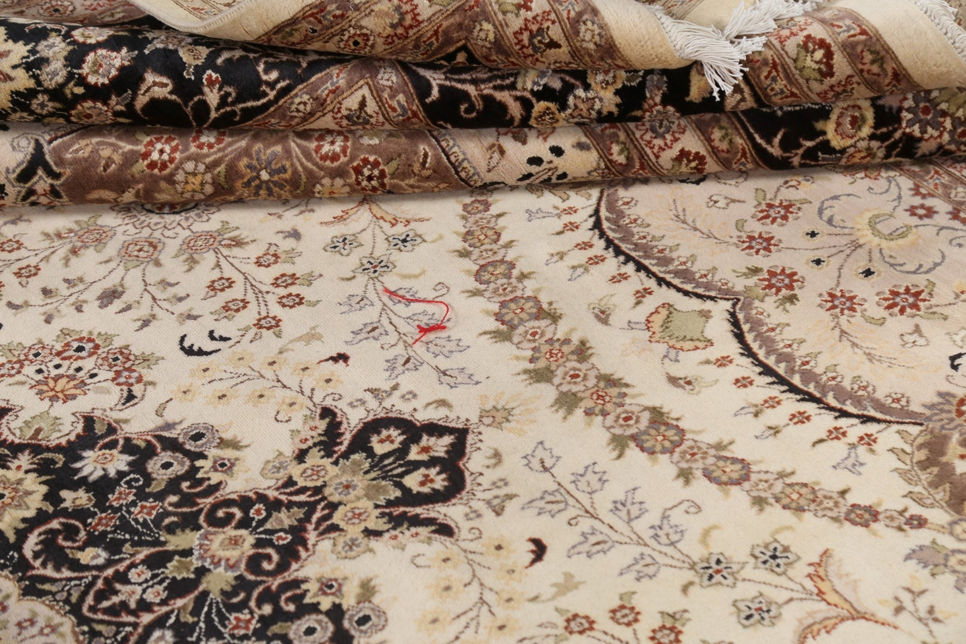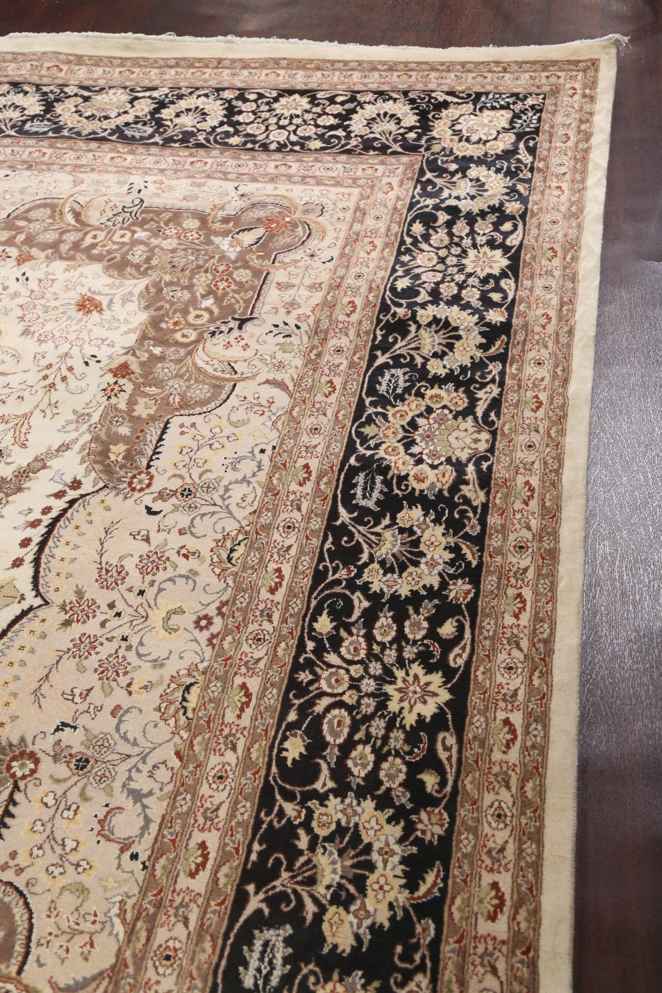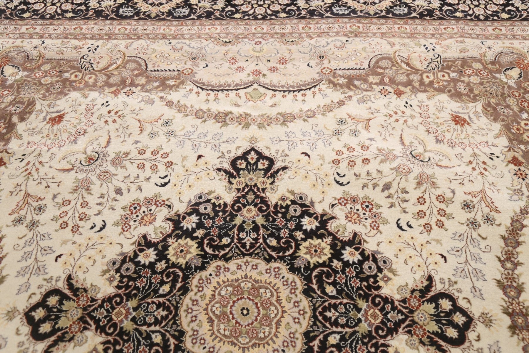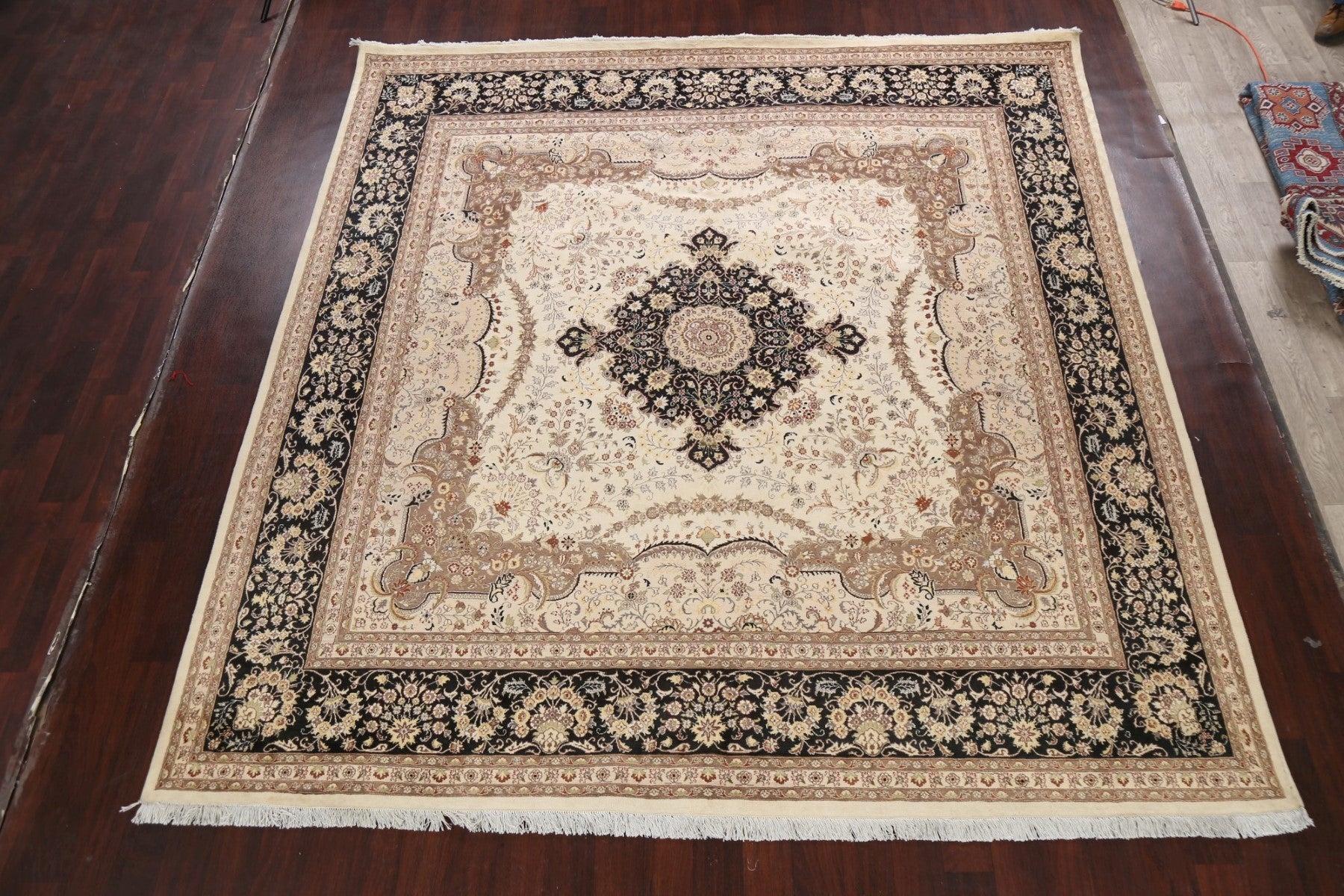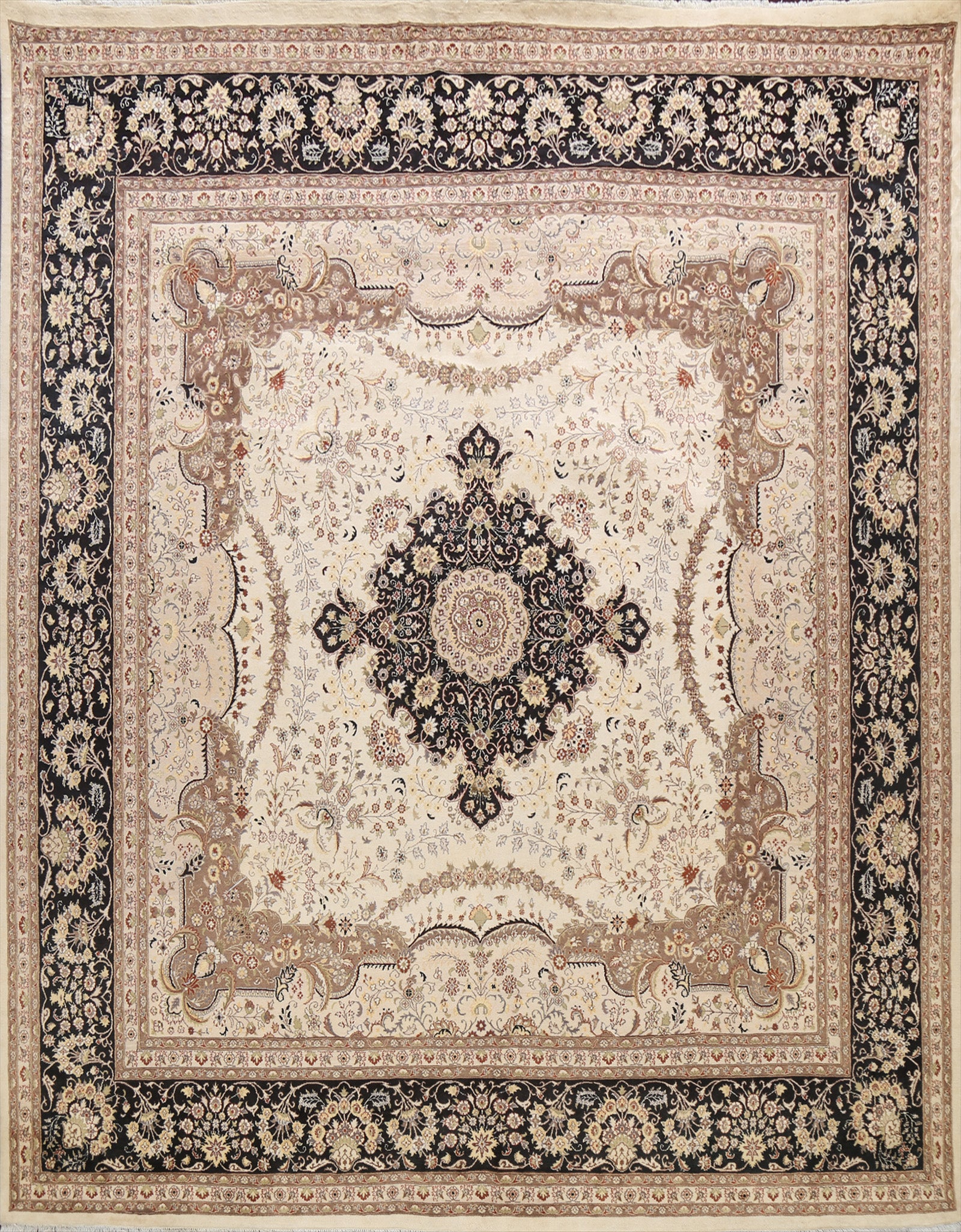 A Beautiful Genuine Pakistan Royal-Tabriz rug is Hand Knotted by skillful weavers in Pakistan with Wool & Silk Material. This rug is in New, First Quality condition. dimensions are 10' 5'' X 10' 0'' in foot and 318 X 305 in centimeter. the primary color is Beige & Ivories.