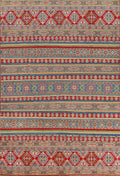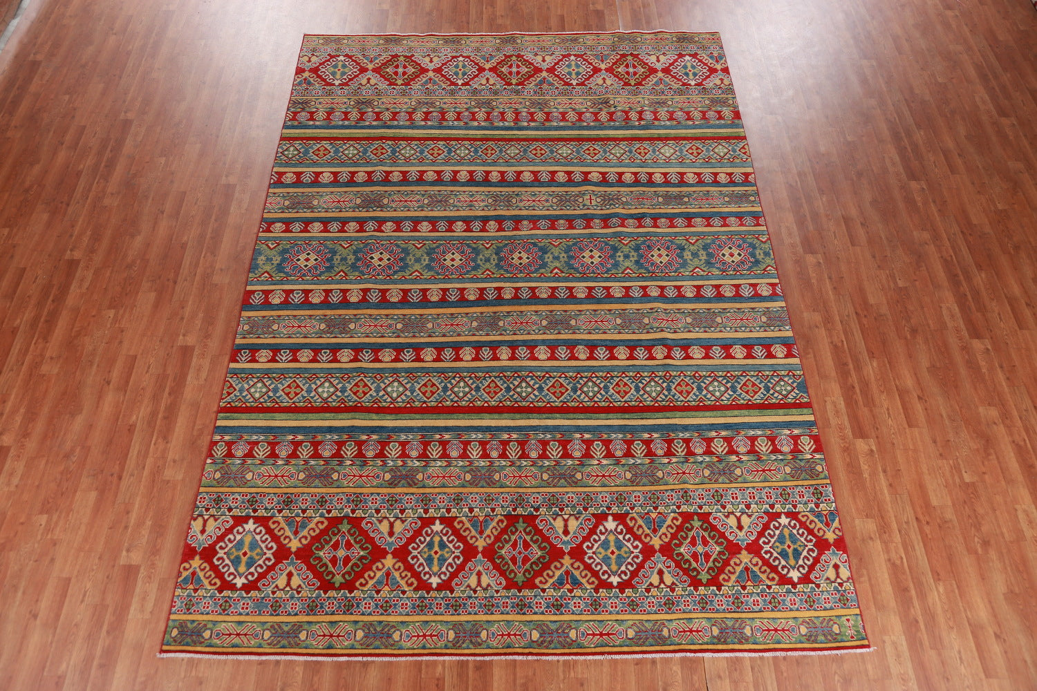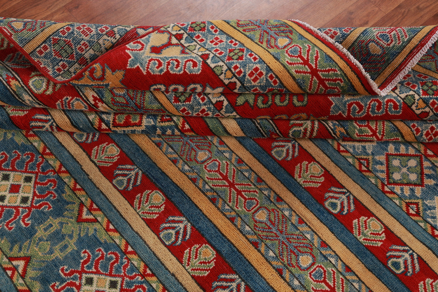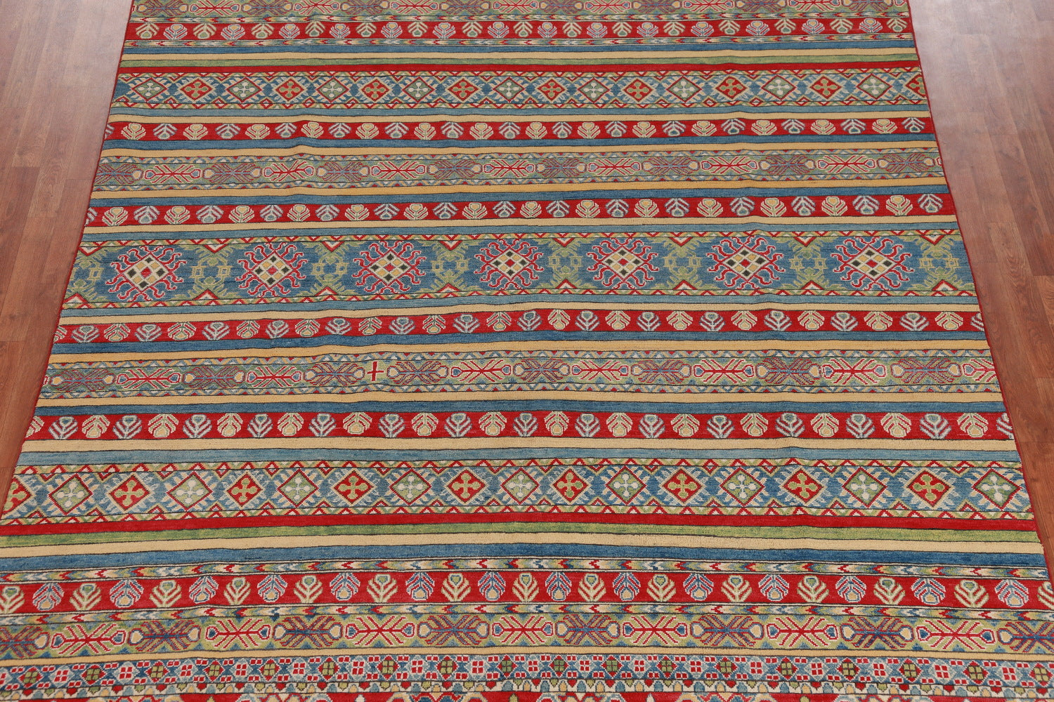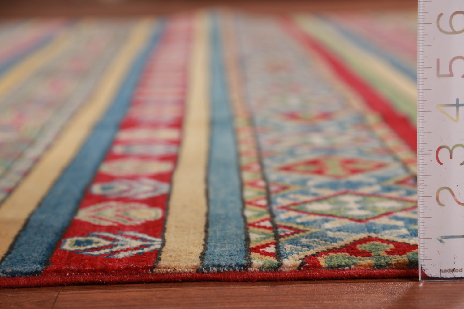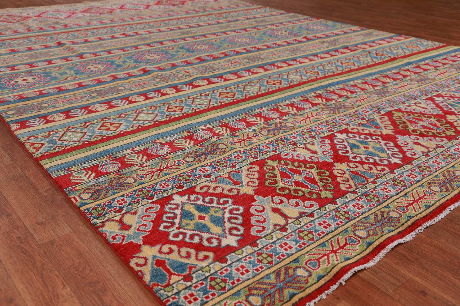 Vegetable Dye Striped Wool Kazak Oriental Area Rug 8x12