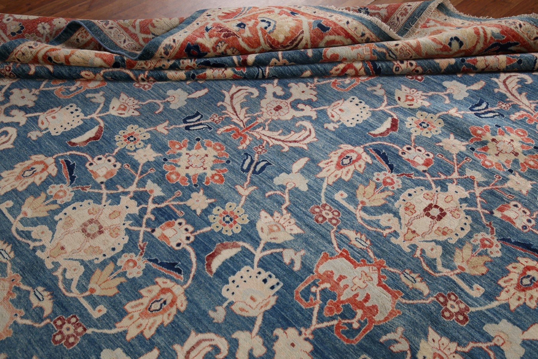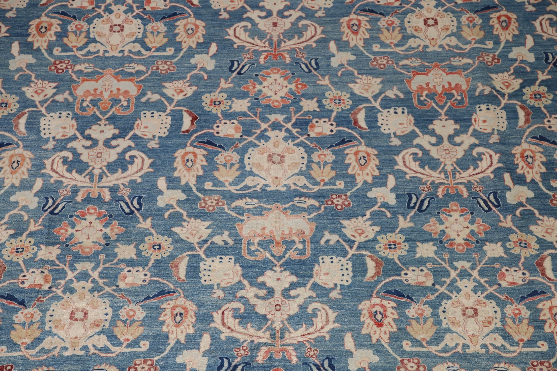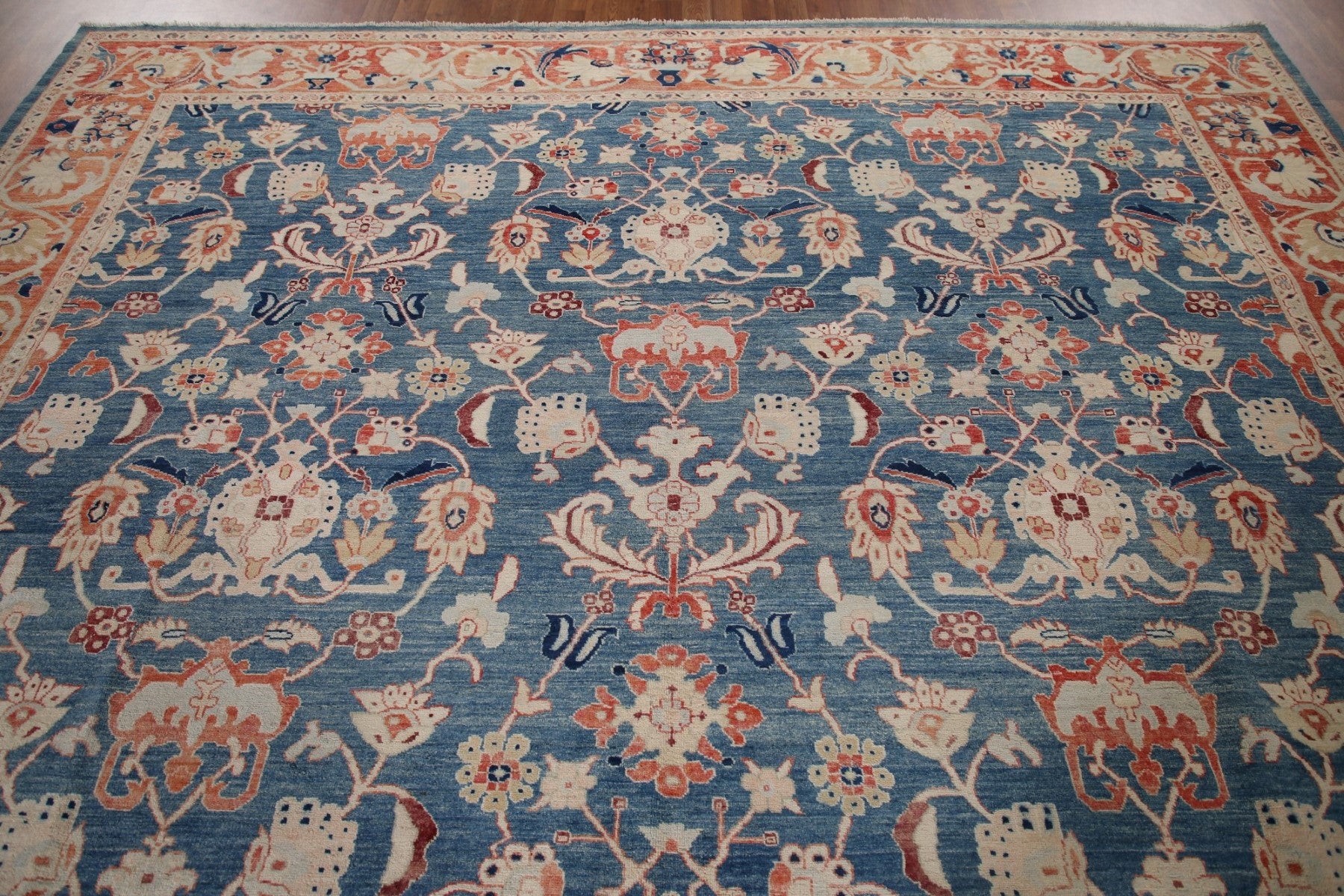A Beautiful Genuine Pakistan Sultanabad rug is Hand Knotted by skillful weavers in Pakistan with 100% Wool Material. This rug is in condition. dimensions are 13' 0'' X 9' 10'' in foot and 396 X 300 in centimeter. the primary color is Navy Blue & Blues.
