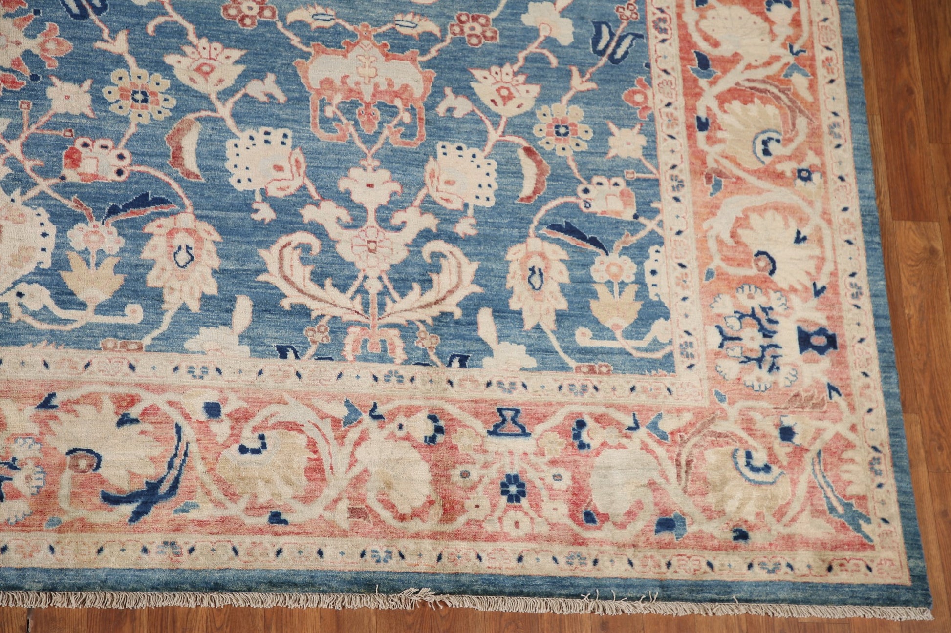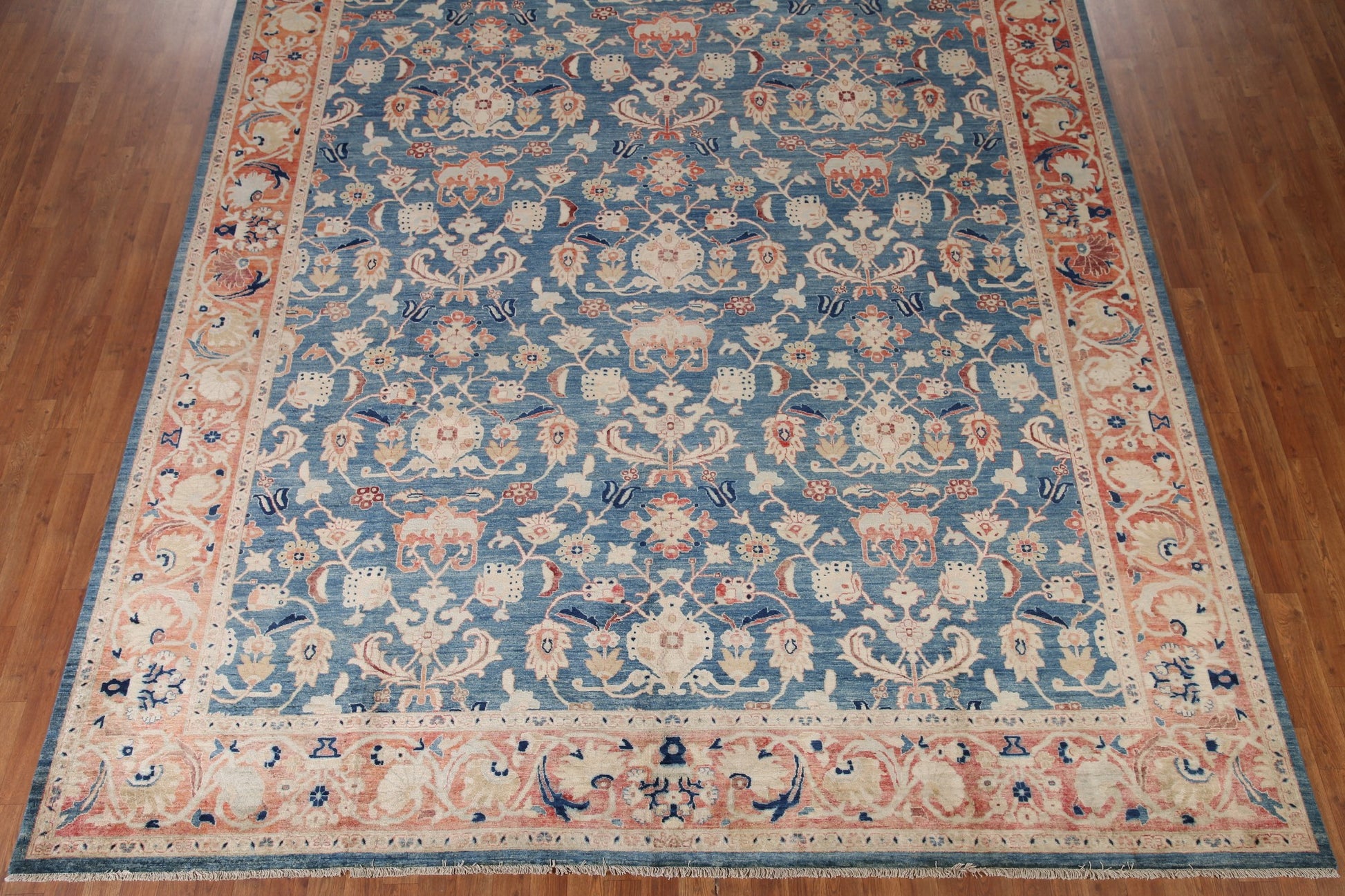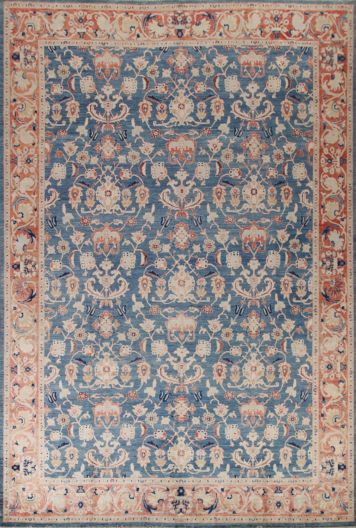 A Beautiful Genuine Pakistan Sultanabad rug is Hand Knotted by skillful weavers in Pakistan with 100% Wool Material. This rug is in condition. dimensions are 13' 0'' X 9' 10'' in foot and 396 X 300 in centimeter. the primary color is Navy Blue & Blues.
