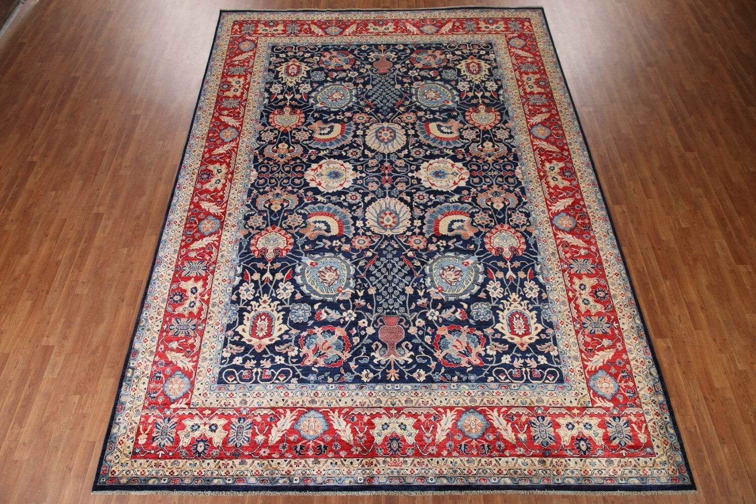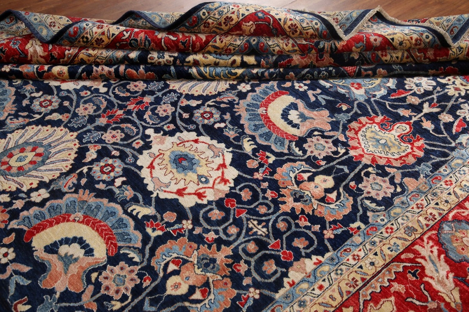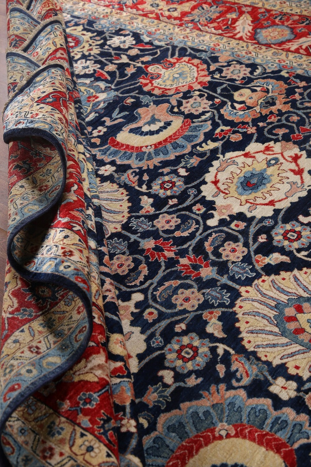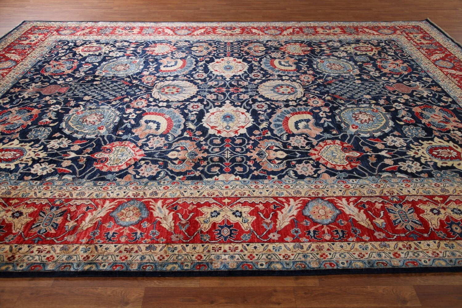 A Beautiful Genuine Pakistan Sultanabad (Ziegler) rug is Hand Knotted by skillful weavers in Pakistan with 100% Wool Material. This rug is in condition. dimensions are 13' 9'' X 9' 11'' in foot and 419 X 302 in centimeter. the primary color is Navy Blue & Blues.