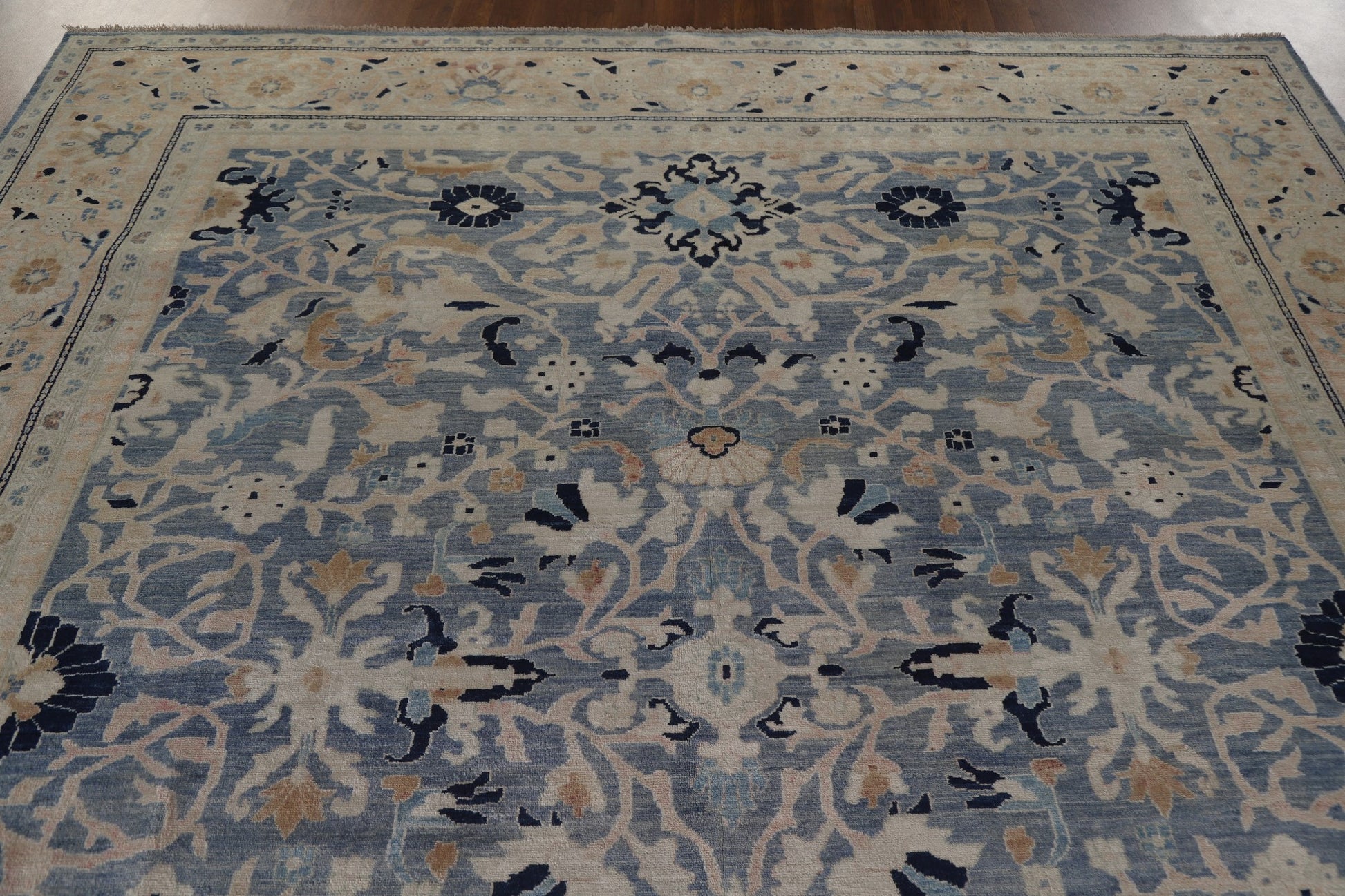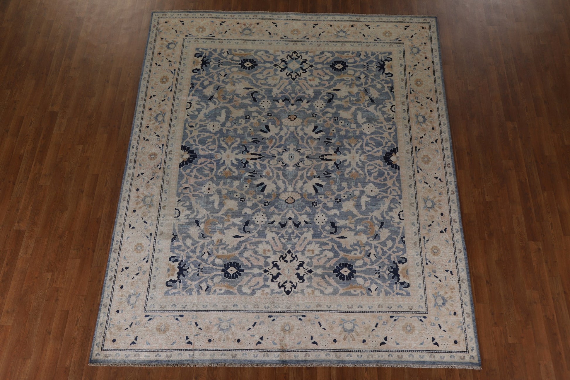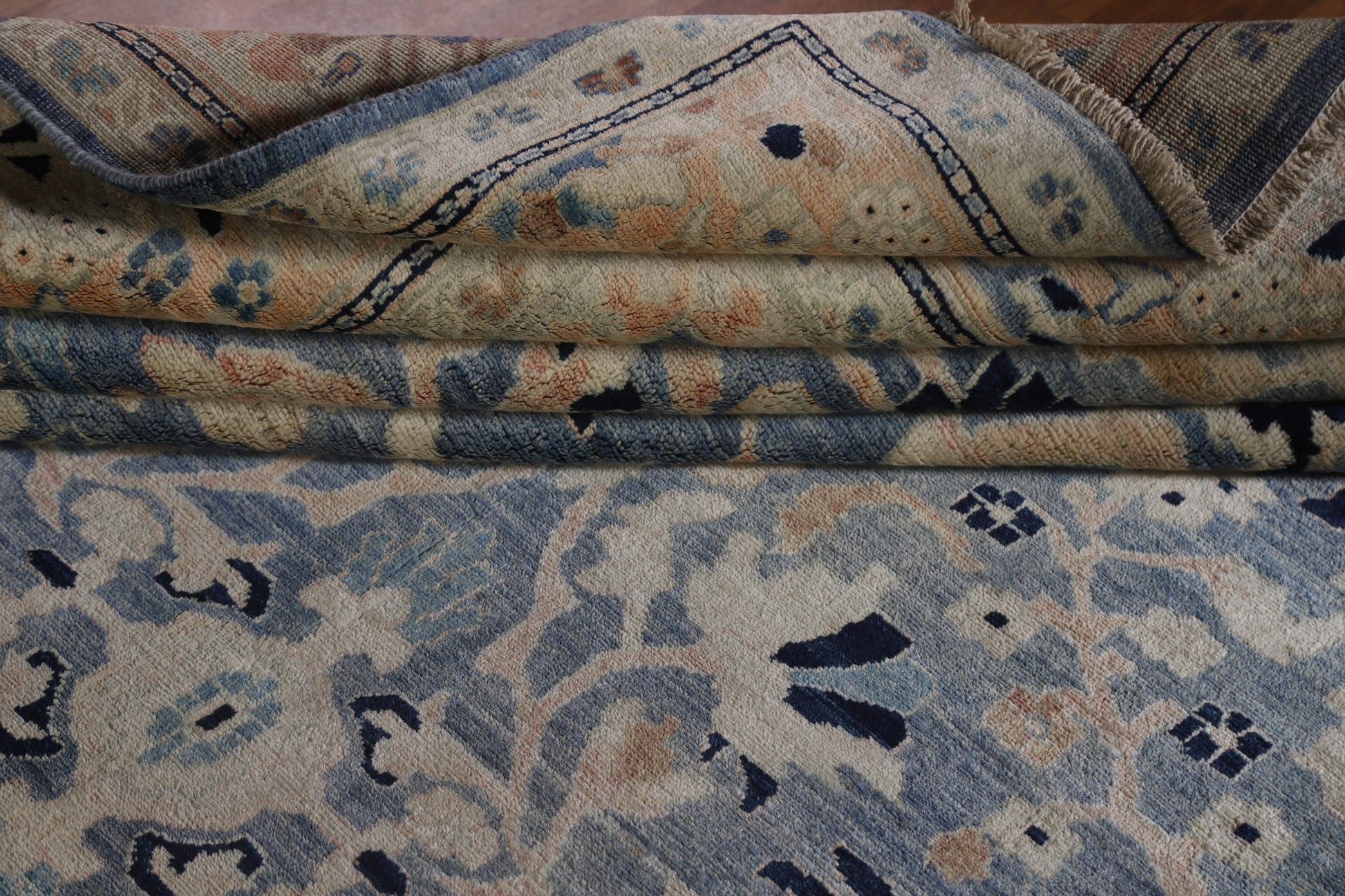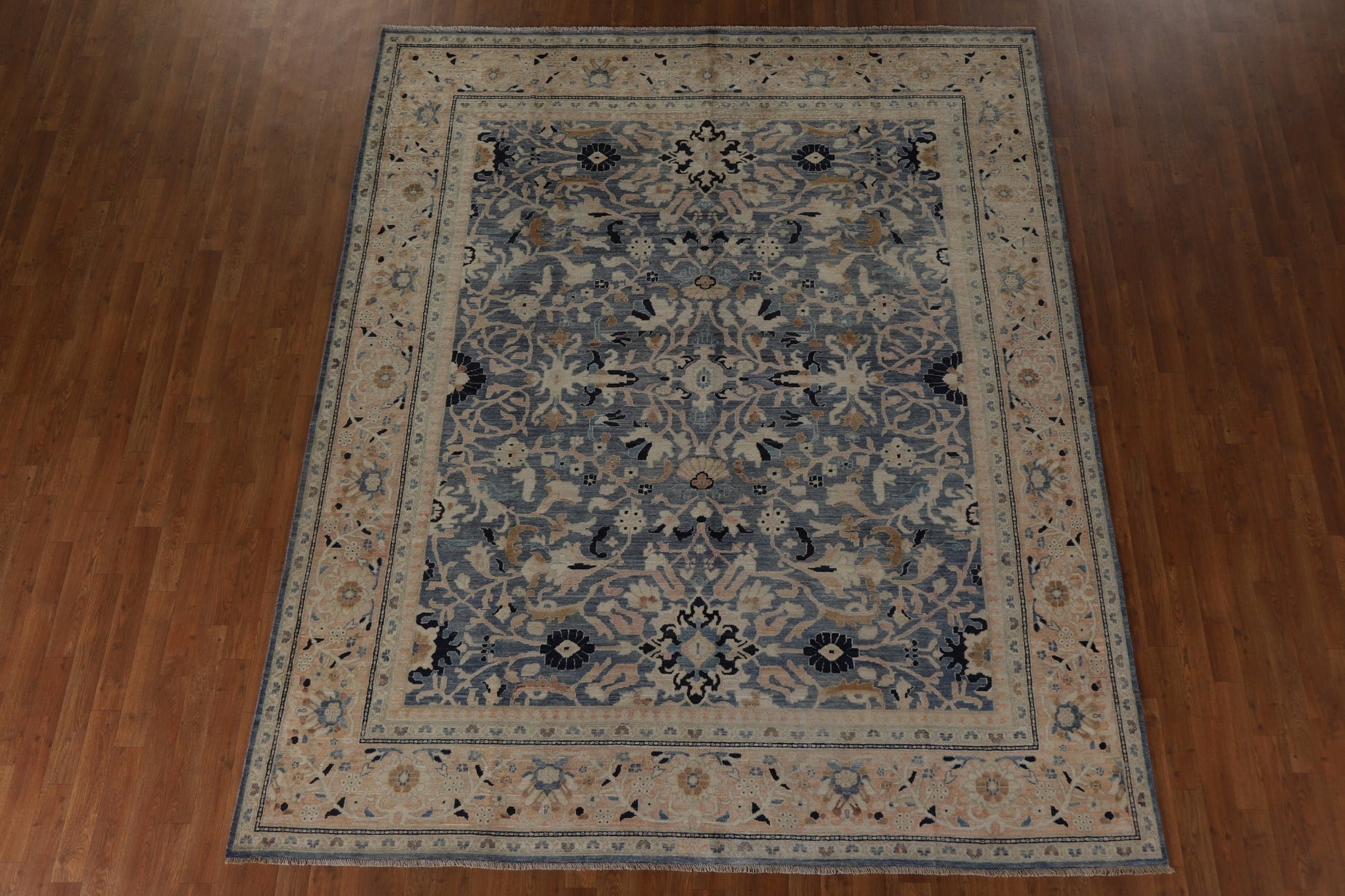 A Beautiful Genuine Pakistan Sultanabad (Ziegler) rug is Hand Knotted by skillful weavers in Pakistan with 100% Wool Material. This rug is in condition. dimensions are 9' 8'' X 7' 11'' in foot and 295 X 241 in centimeter. the primary color is Navy Blue & Blues.