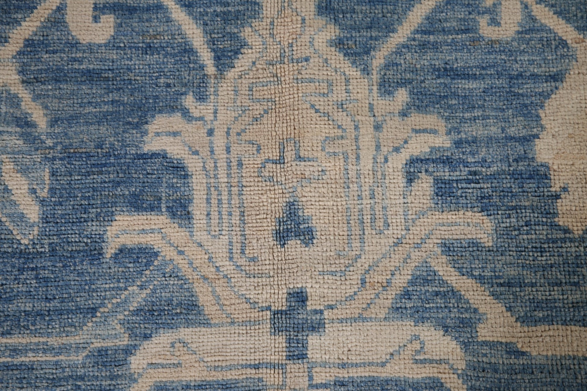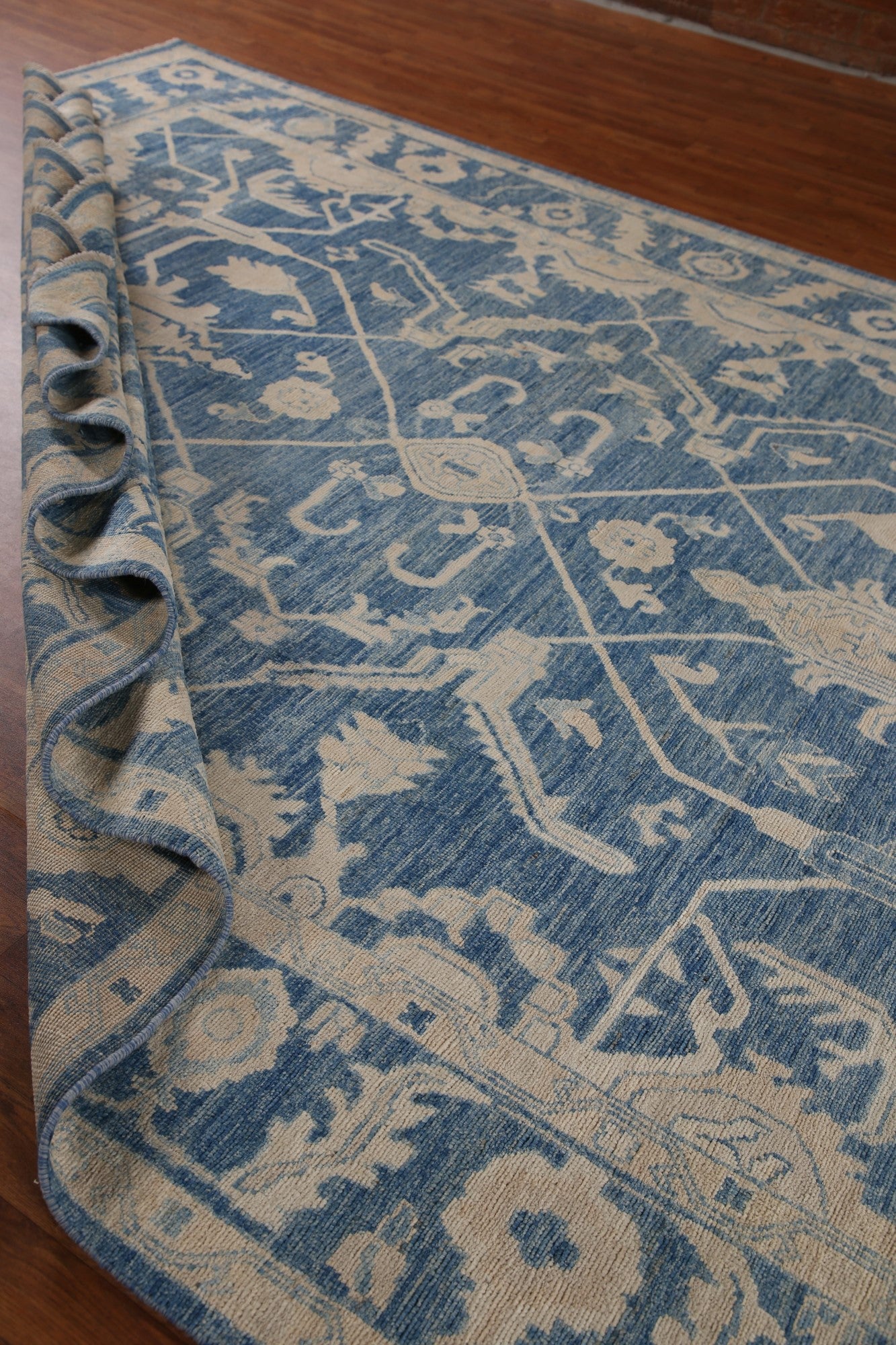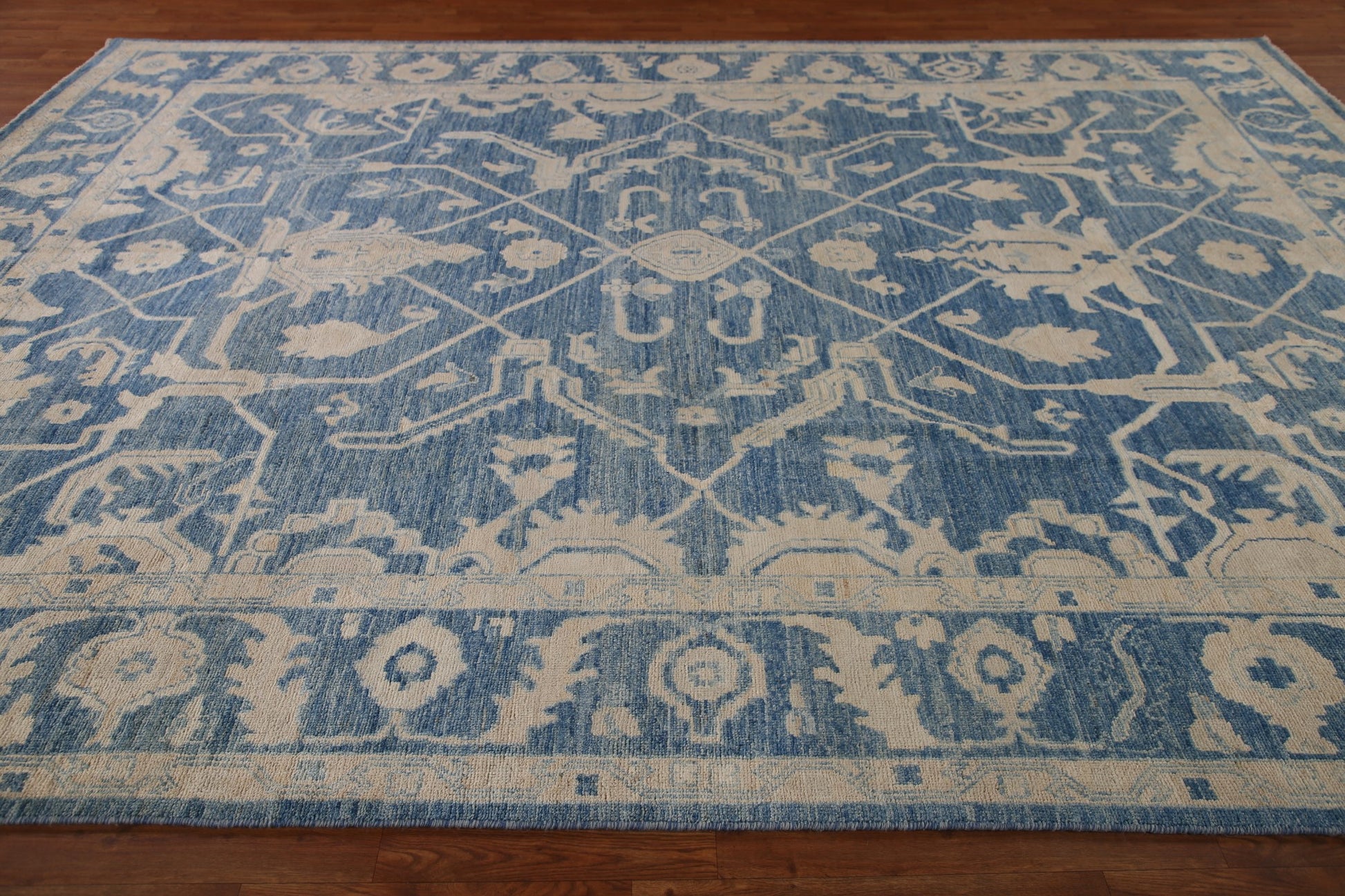 A Beautiful Genuine Pakistan Sultanabad (Ziegler) rug is Hand Knotted by skillful weavers in Pakistan with 100% Wool Material. This rug is in Excellent condition. dimensions are 11' 10'' X 8' 9'' in foot and 361 X 267 in centimeter. the primary color is Navy Blue & Blues.