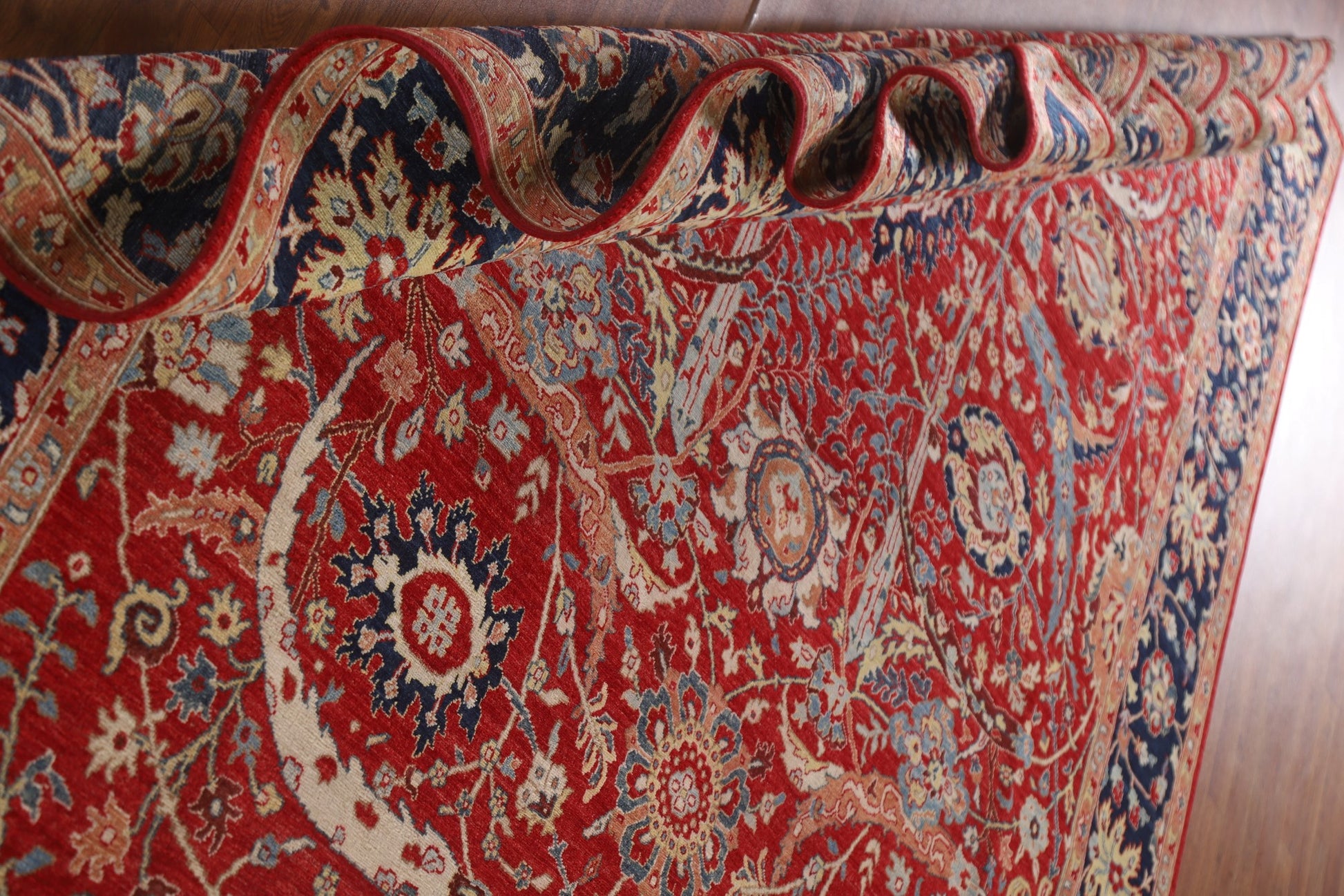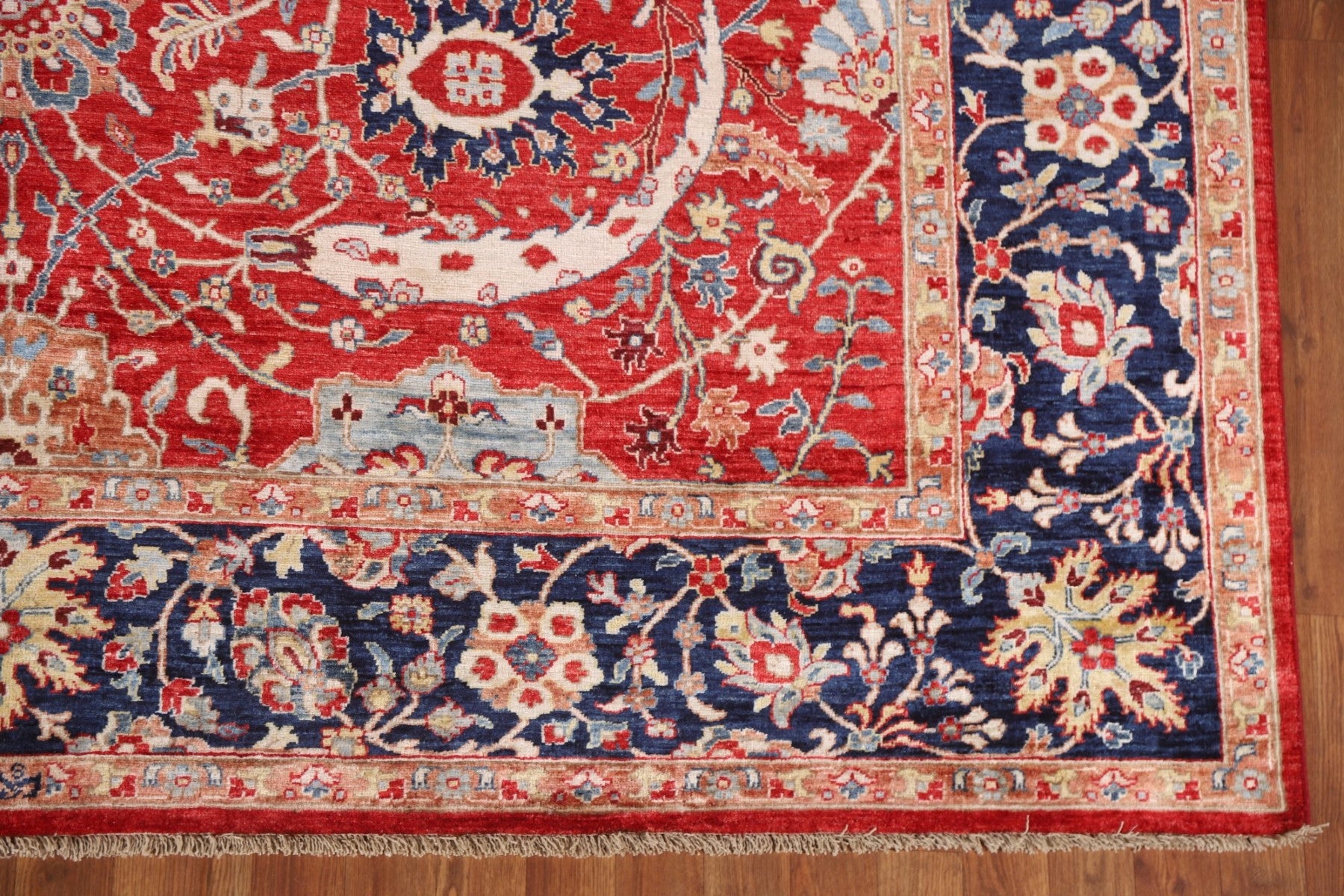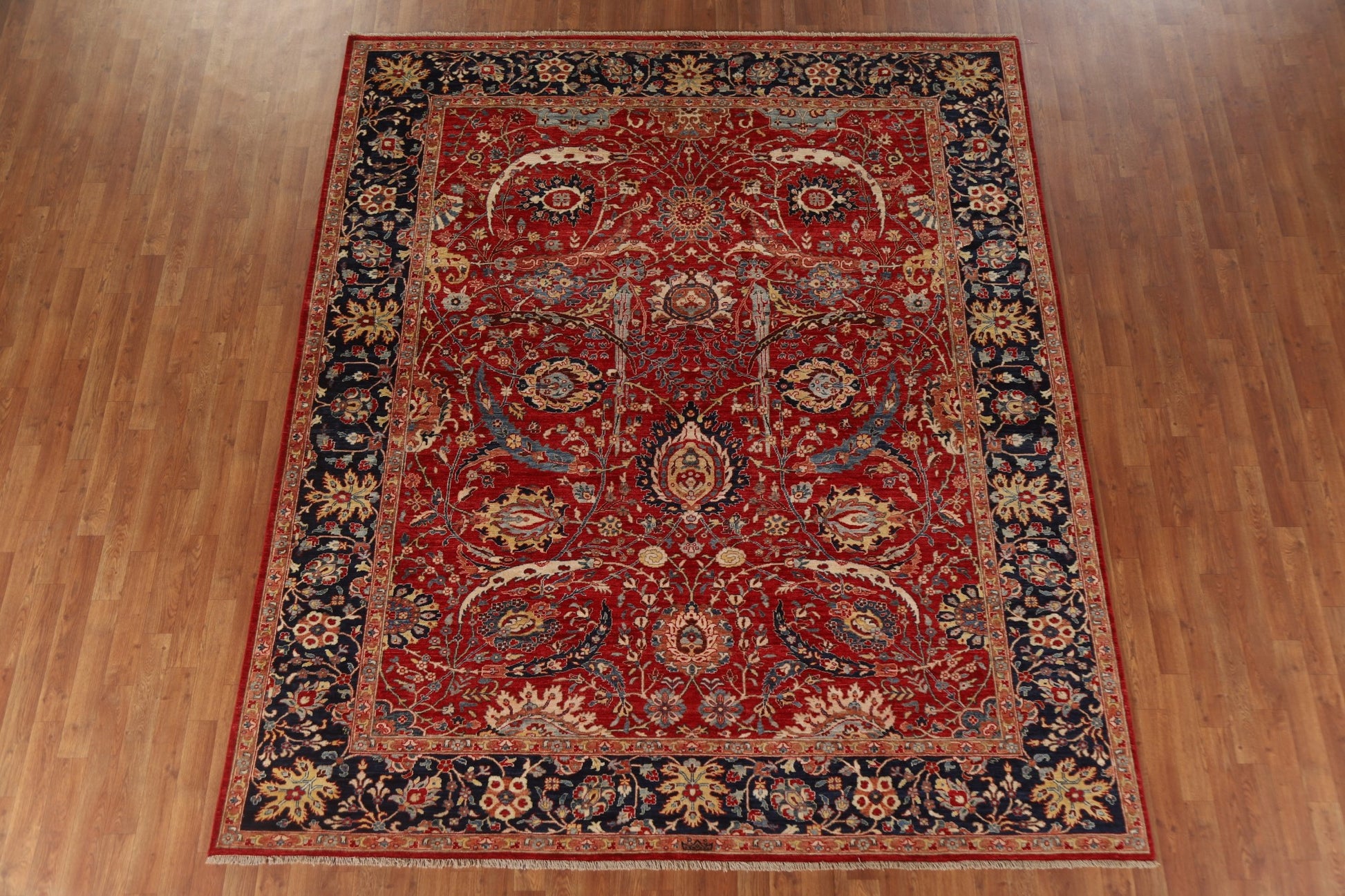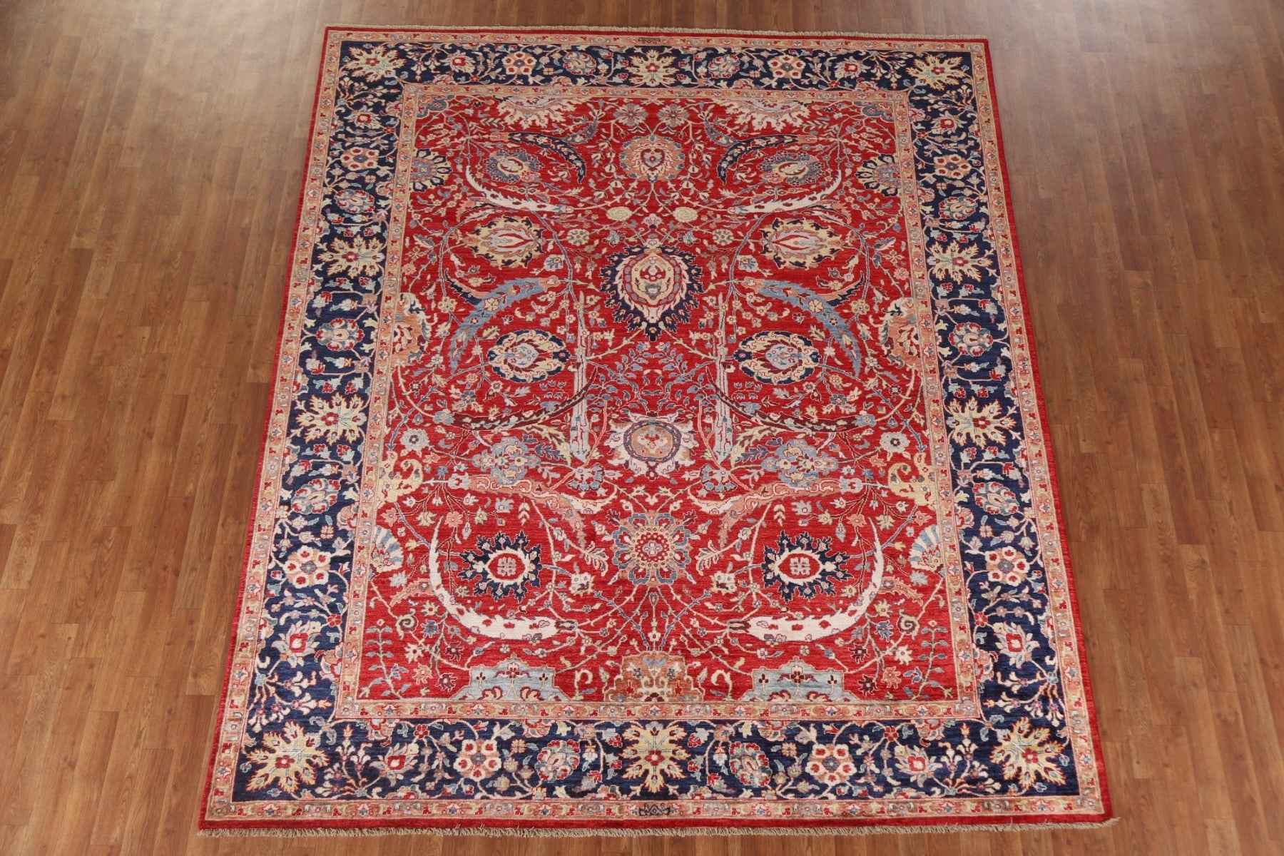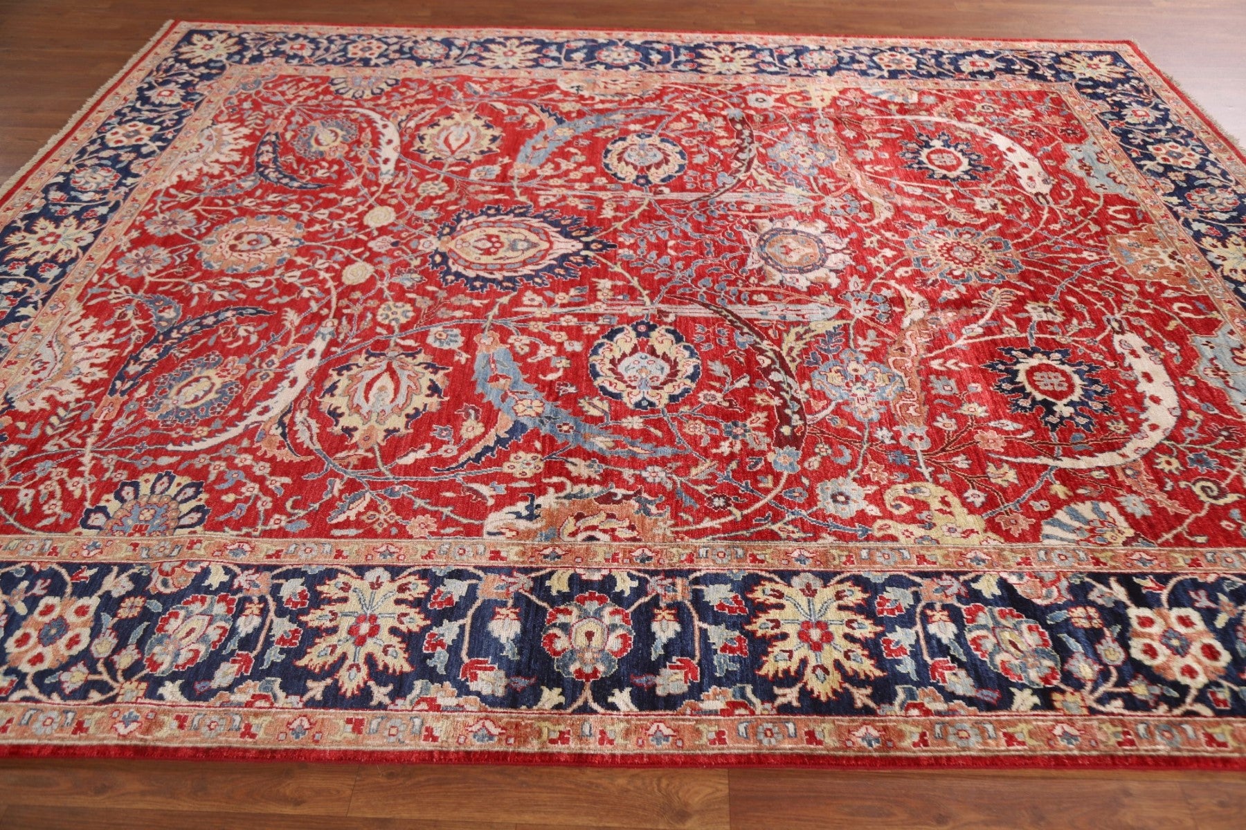 A Beautiful Genuine Pakistan Sultanabad (Ziegler) rug is Hand Knotted by skillful weavers in Pakistan with 100% Wool Material. This rug is in New, First Quality condition. dimensions are 9' 6'' X 8' 0'' in foot and 290 X 244 in centimeter. the primary color is Red.