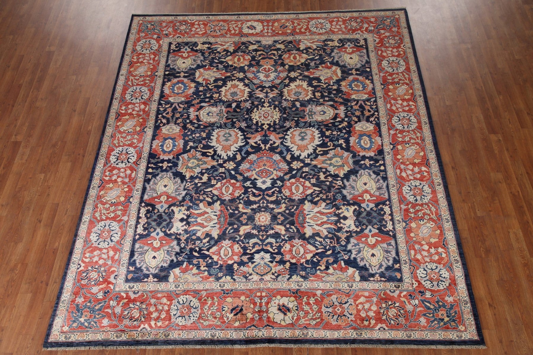 A Beautiful Genuine Pakistan Sultanabad (Ziegler) rug is Hand Knotted by skillful weavers in Pakistan with 100% Wool Material. This rug is in condition. dimensions are 9' 10'' X 8' 3'' in foot and 300 X 251 in centimeter. the primary color is Navy Blue & Blues.