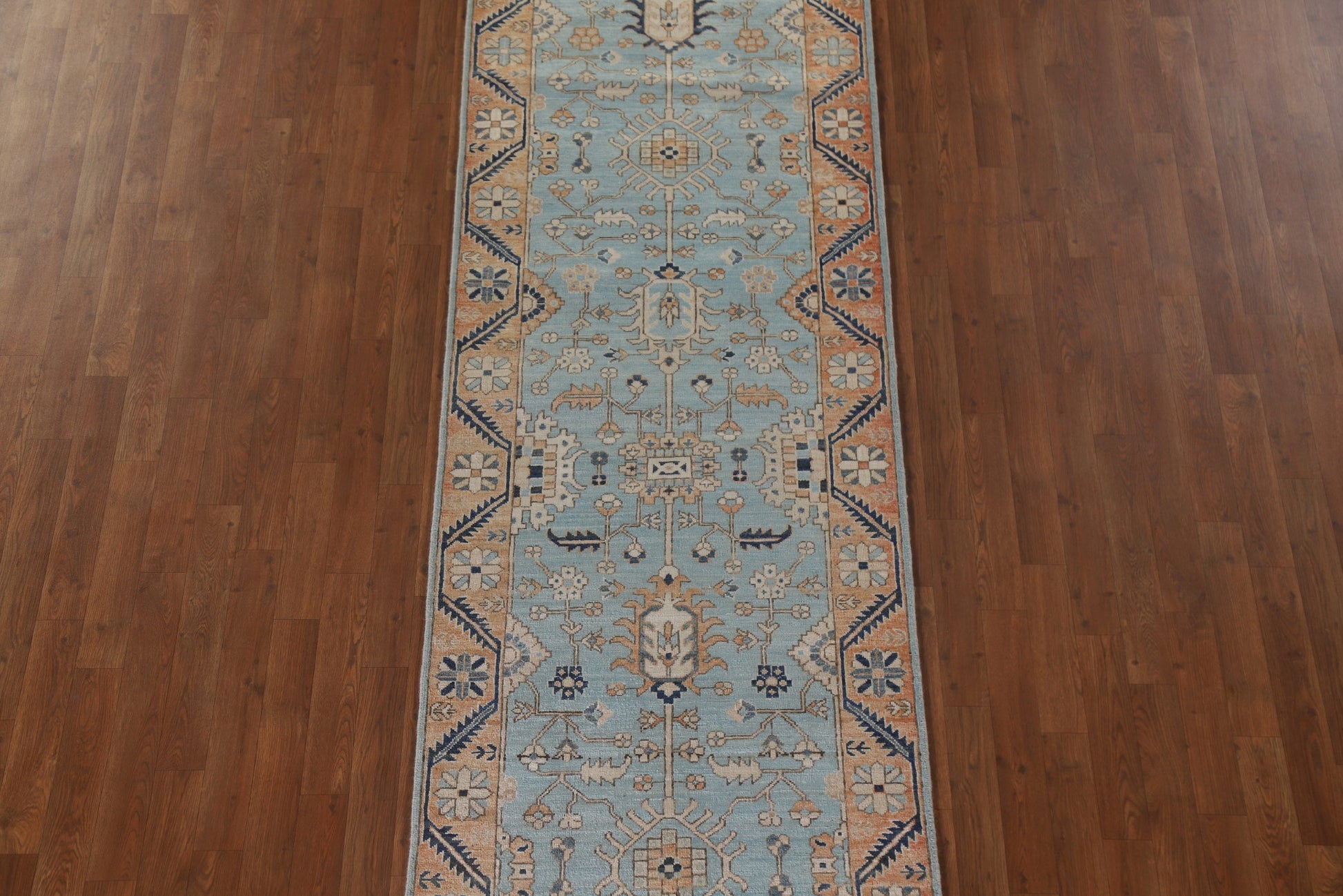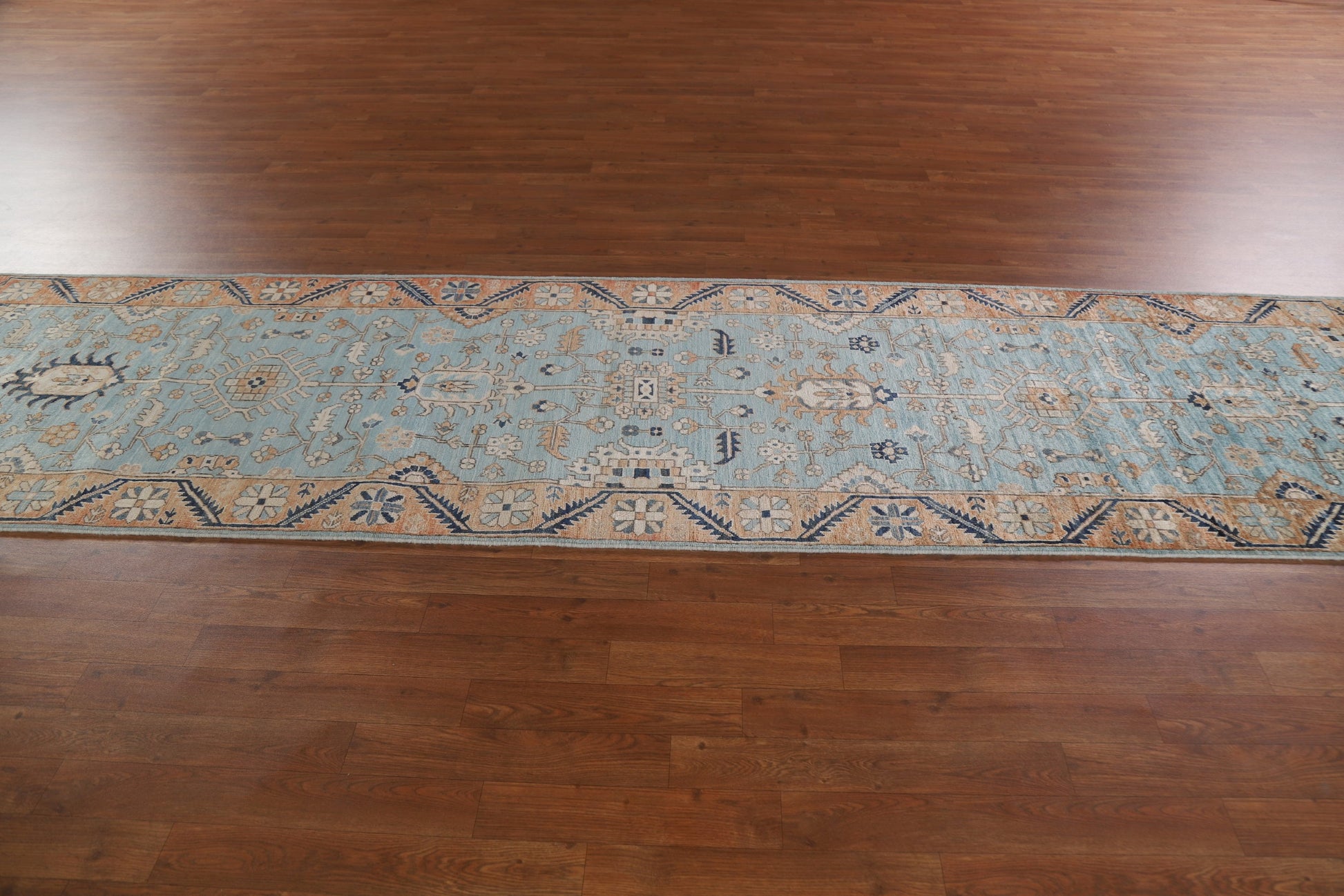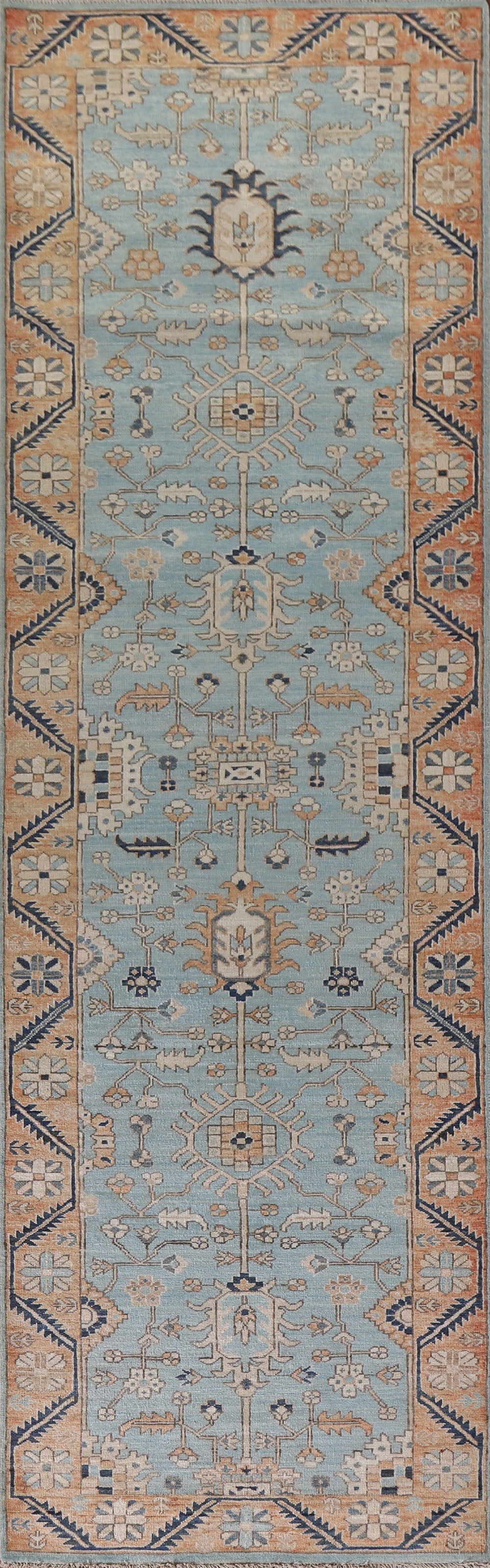 A Beautiful Genuine Pakistan Sultanabad (Ziegler) rug is Hand Knotted by skillful weavers in Pakistan with 100% Wool Material. This rug is in condition. dimensions are 11' 7'' X 2' 11'' in foot and 353 X 89 in centimeter. the primary color is Navy Blue & Blues.