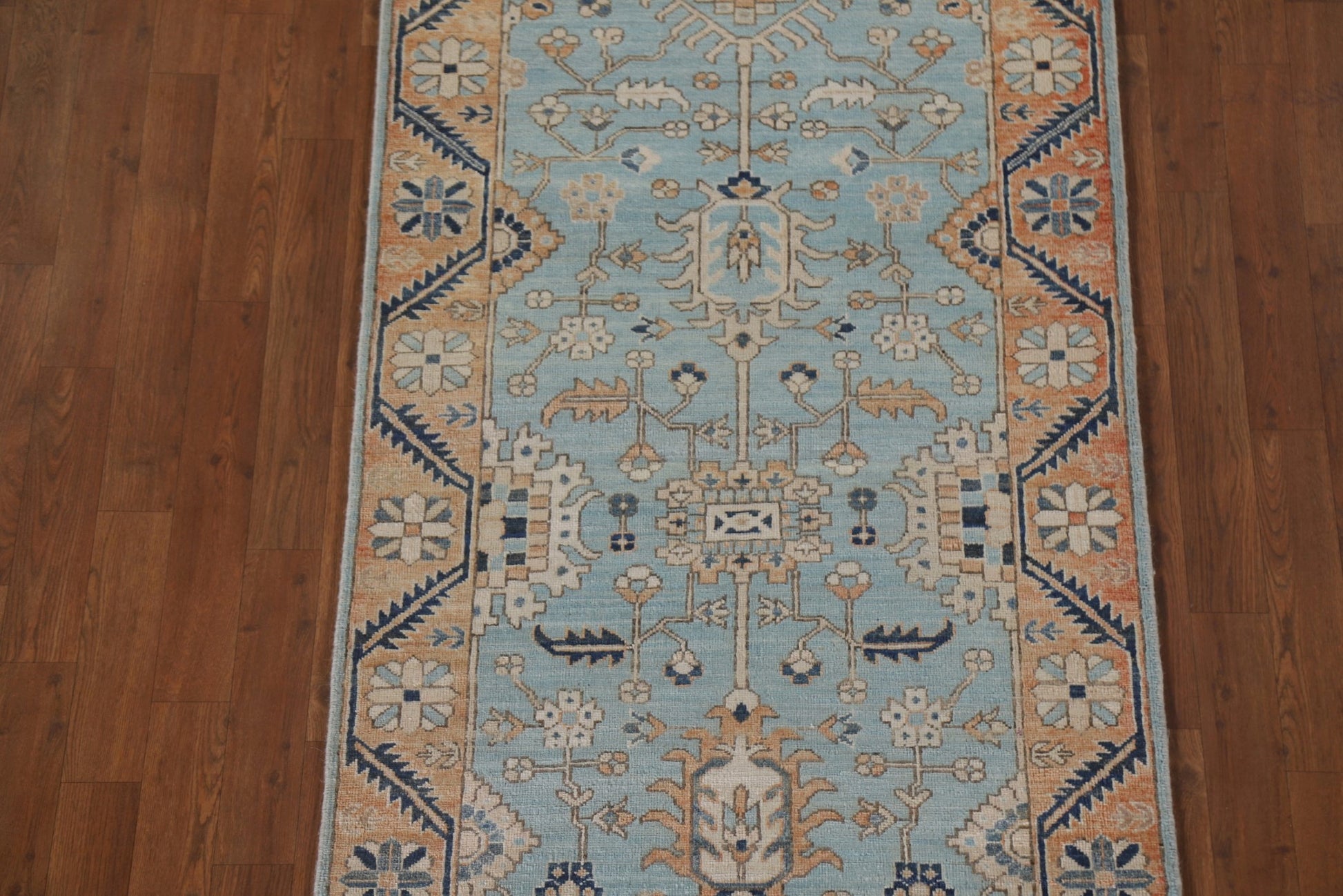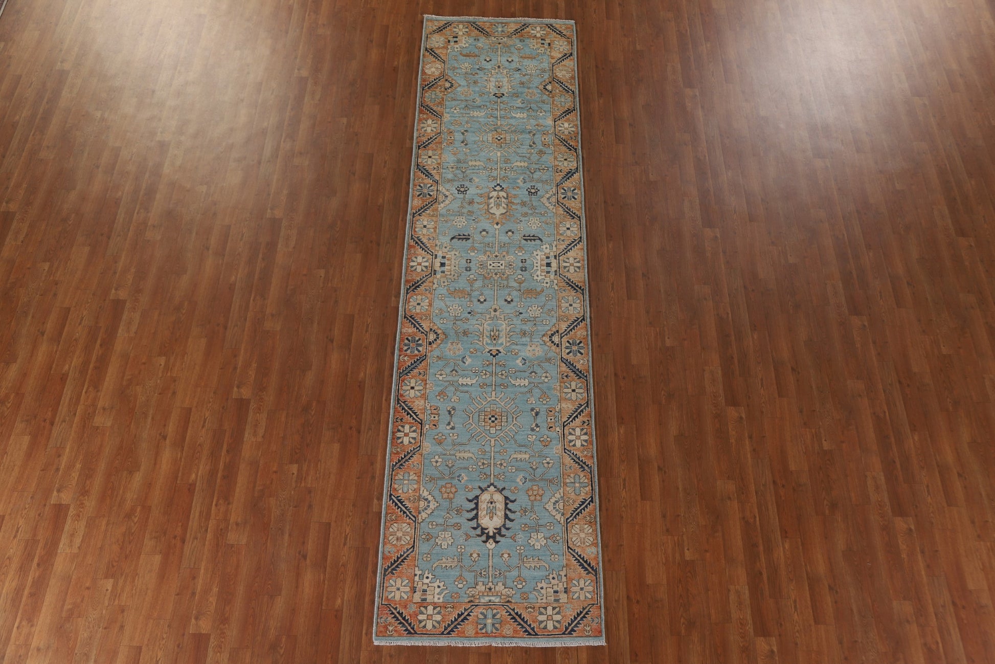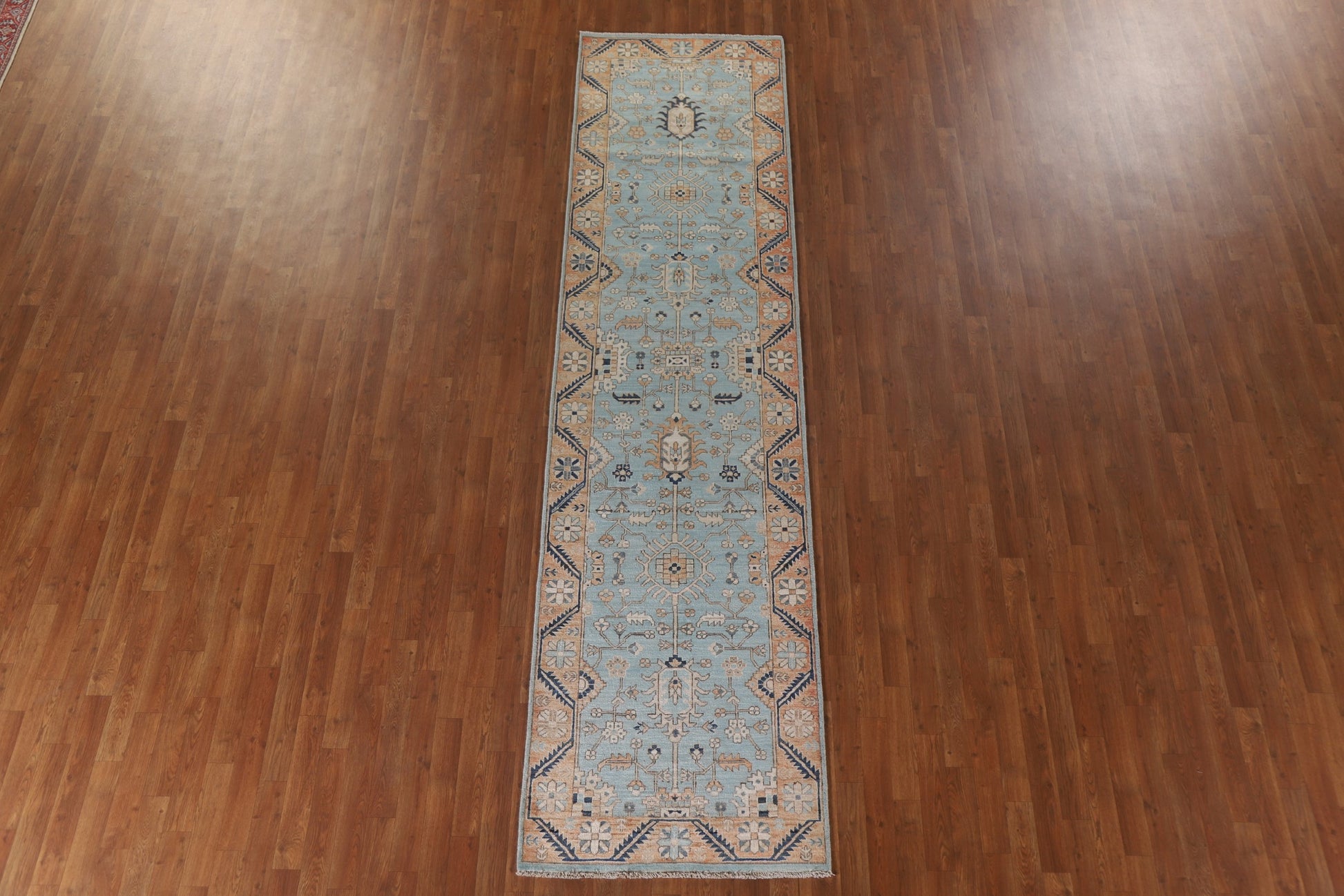 A Beautiful Genuine Pakistan Sultanabad (Ziegler) rug is Hand Knotted by skillful weavers in Pakistan with 100% Wool Material. This rug is in condition. dimensions are 11' 7'' X 2' 11'' in foot and 353 X 89 in centimeter. the primary color is Navy Blue & Blues.
