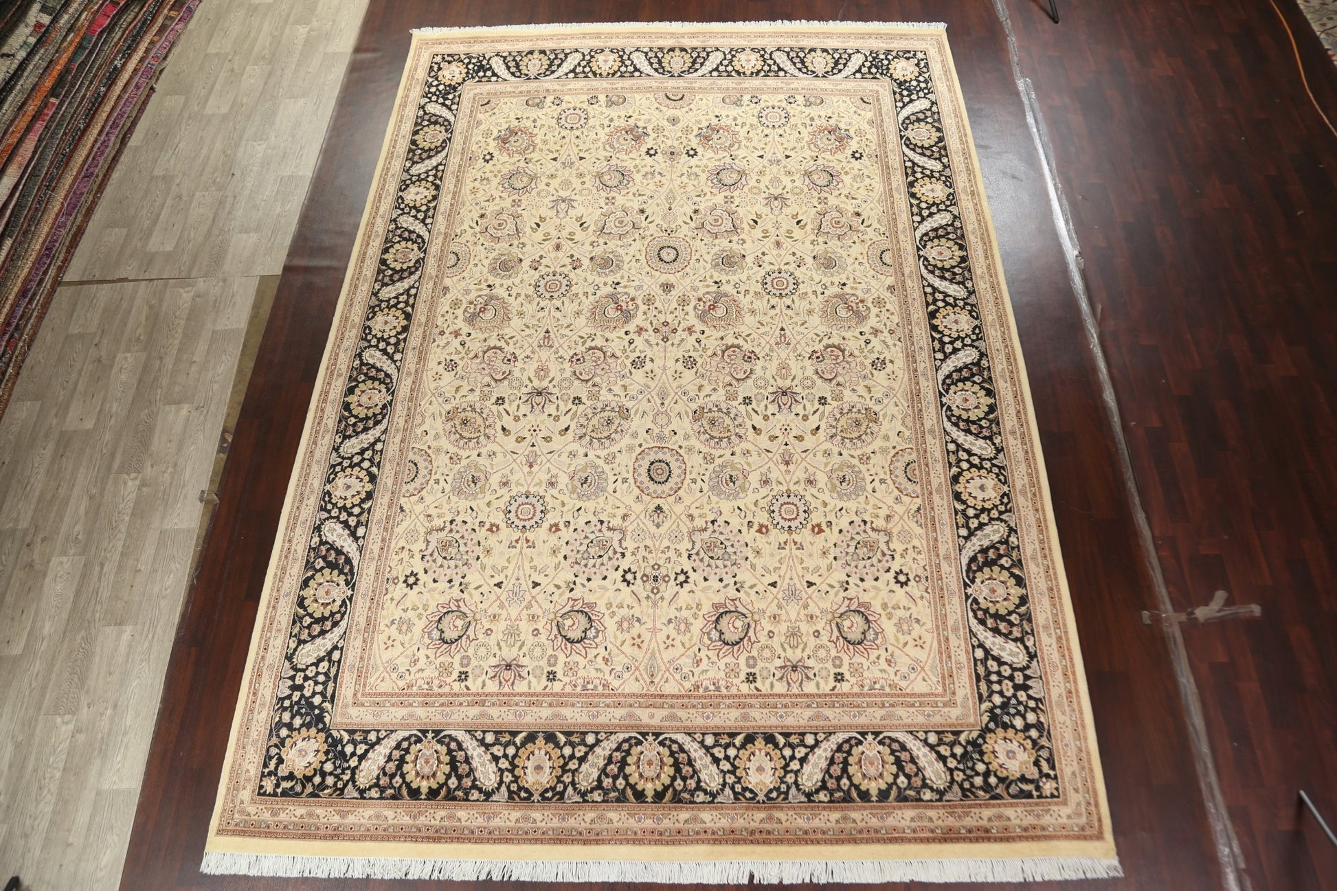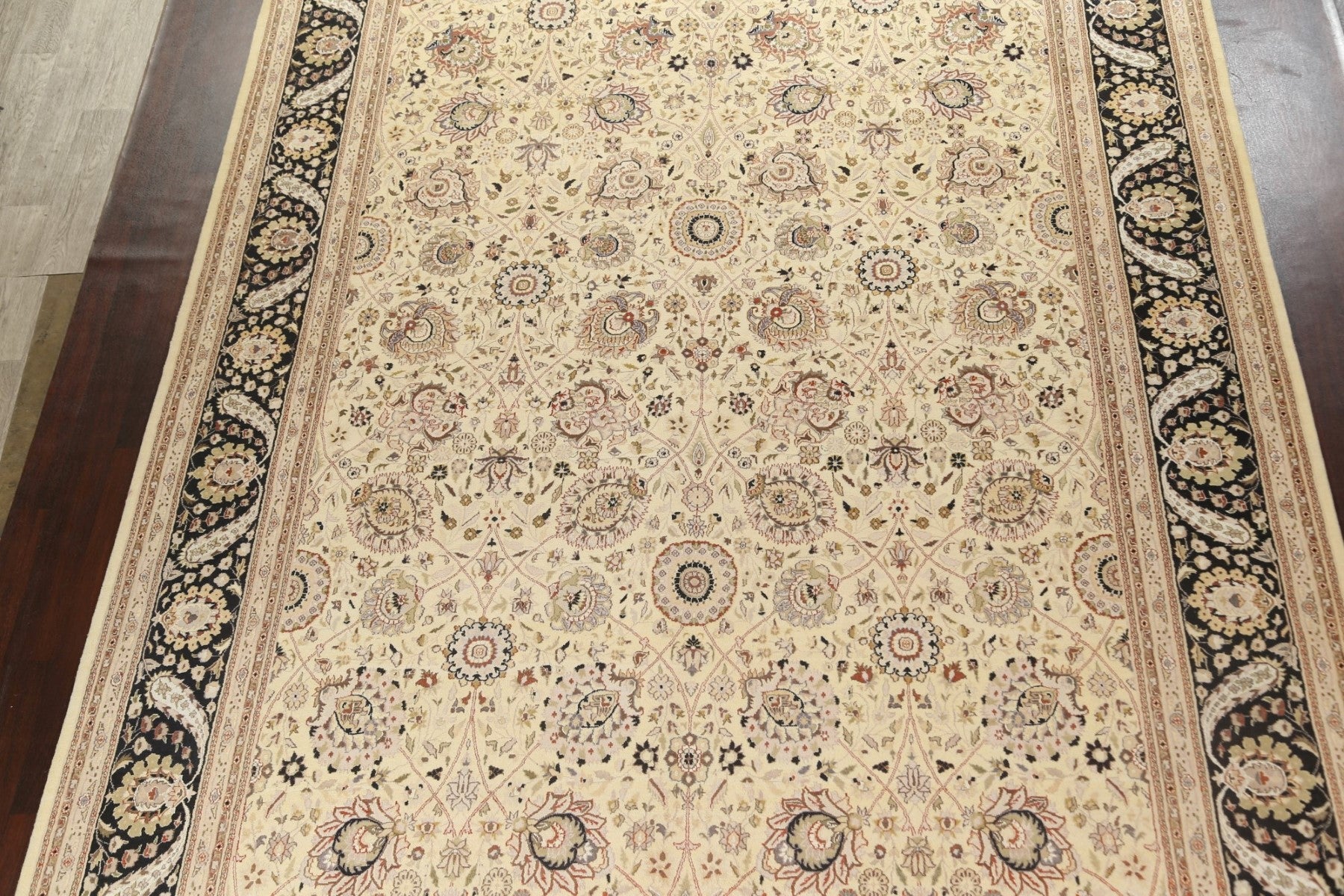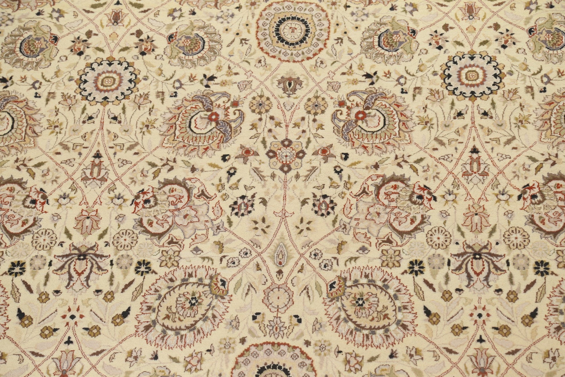 A Beautiful Genuine Pakistan Tabriz rug is Hand Knotted by skillful weavers in Pakistan with Wool & Silk Material. This rug is in New, First Quality condition. dimensions are 14' 1'' X 10' 1'' in foot and 429 X 307 in centimeter. the primary color is Beige & Ivories.