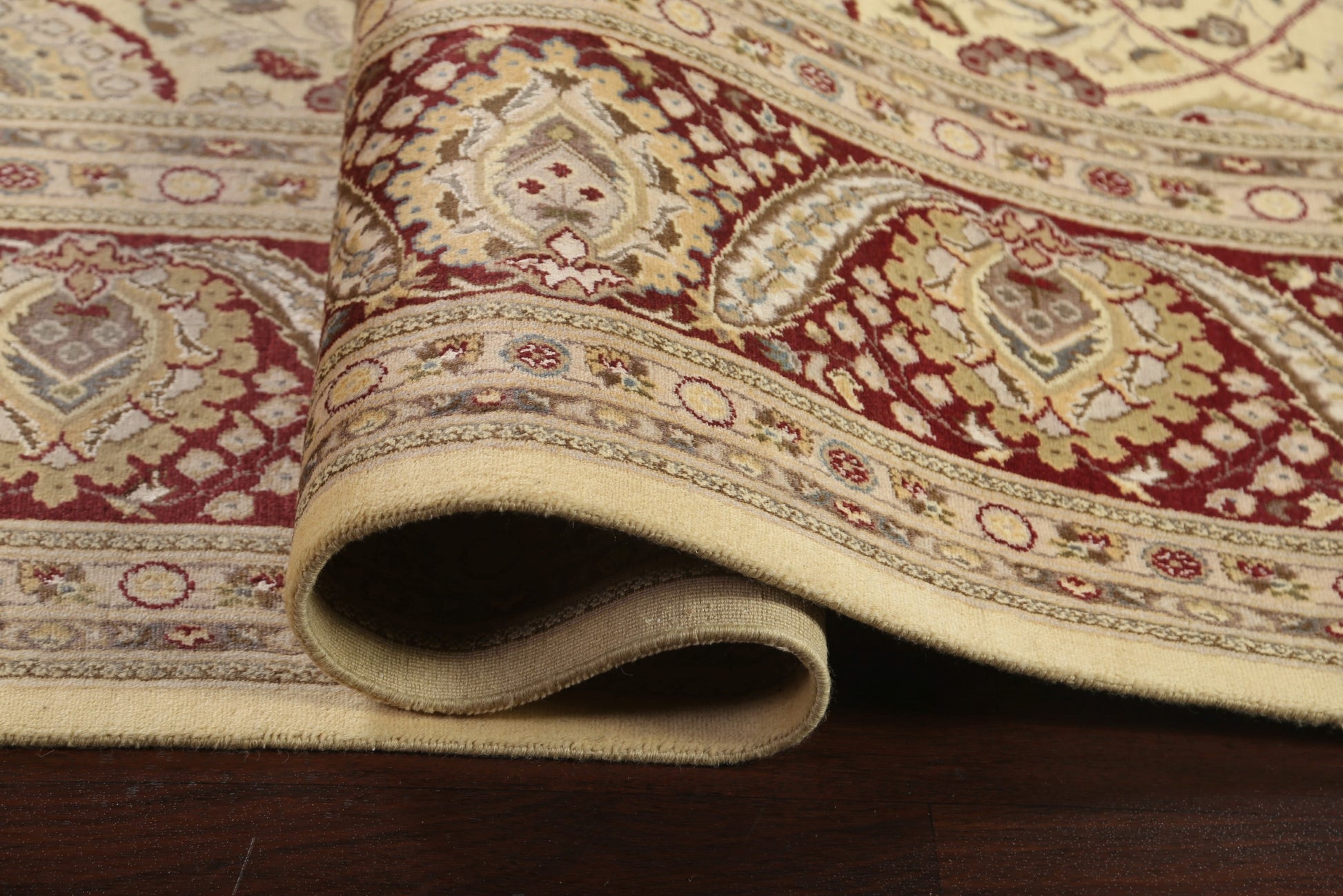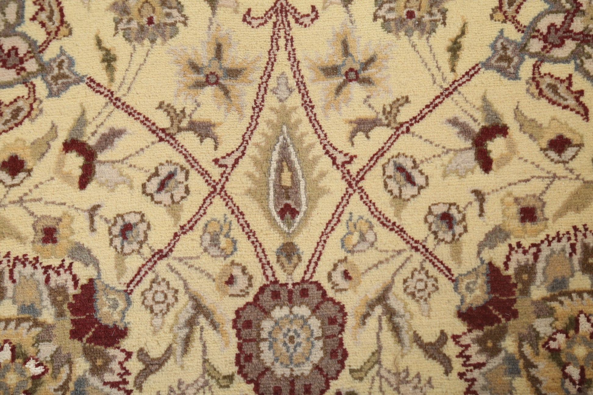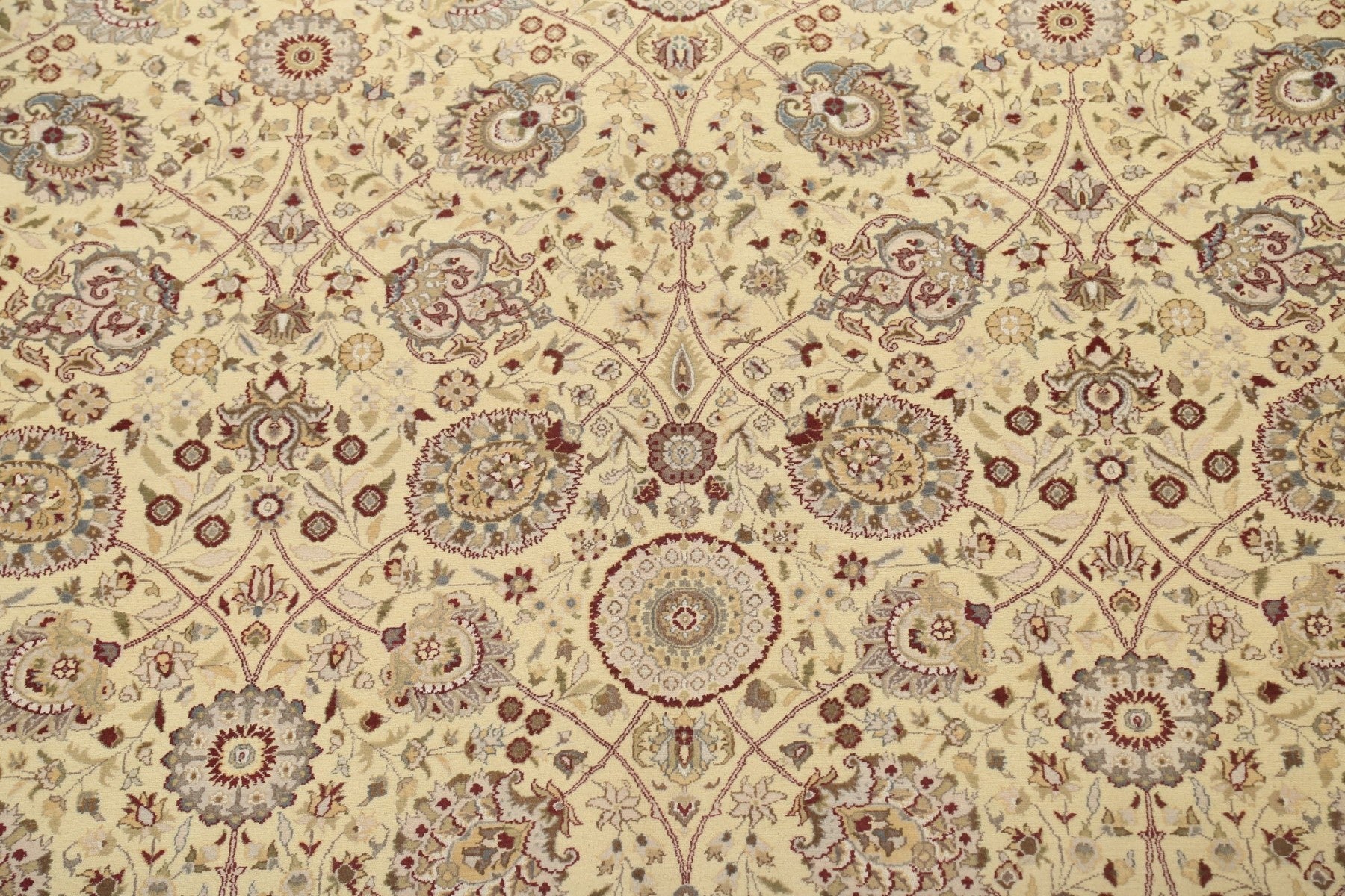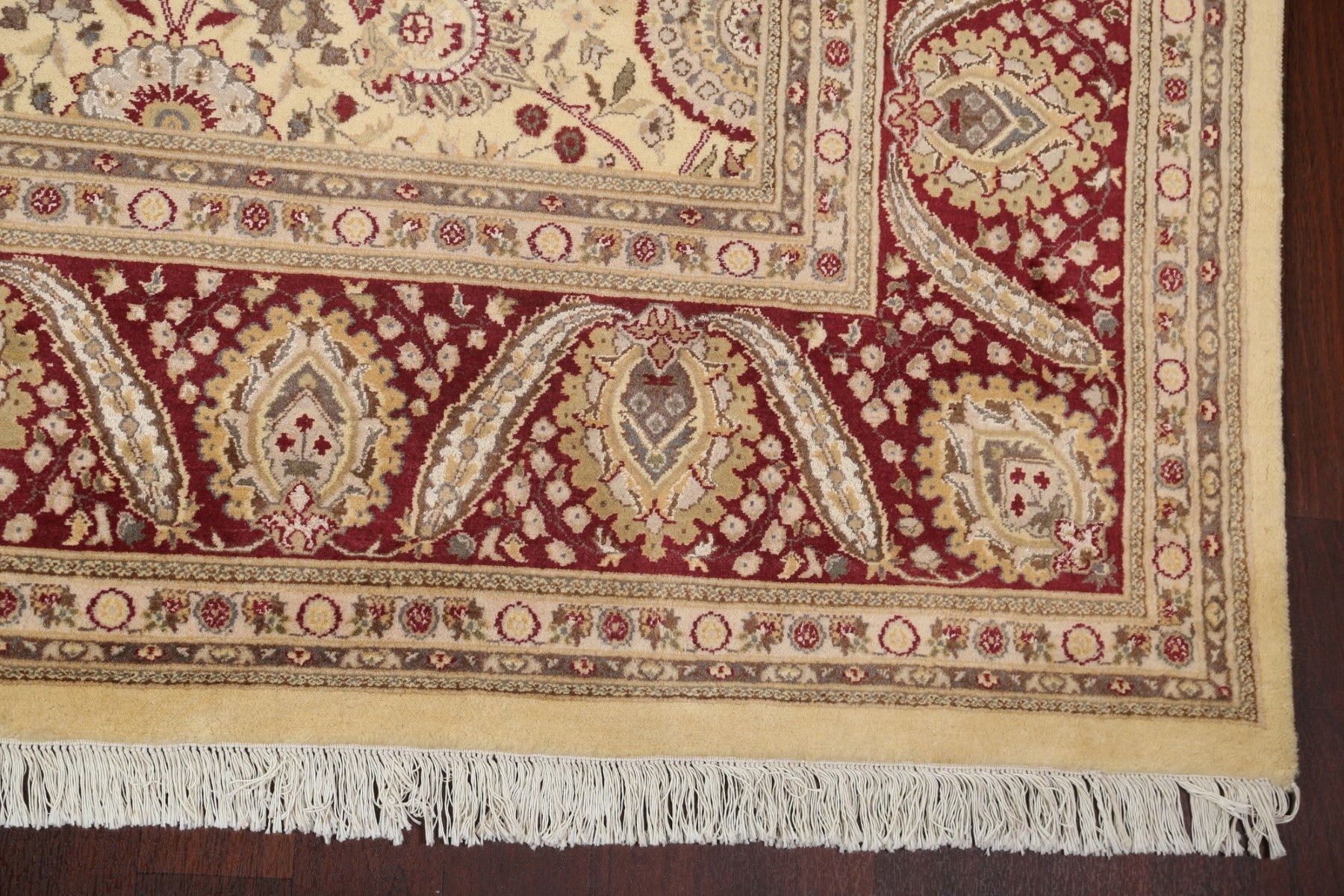 A Beautiful Genuine Pakistan Tabriz rug is Hand Knotted by skillful weavers in Pakistan with Wool & Silk Material. This rug is in New, First Quality condition. dimensions are 14' 2'' X 9' 11'' in foot and 432 X 302 in centimeter. the primary color is Yellow & Gold.