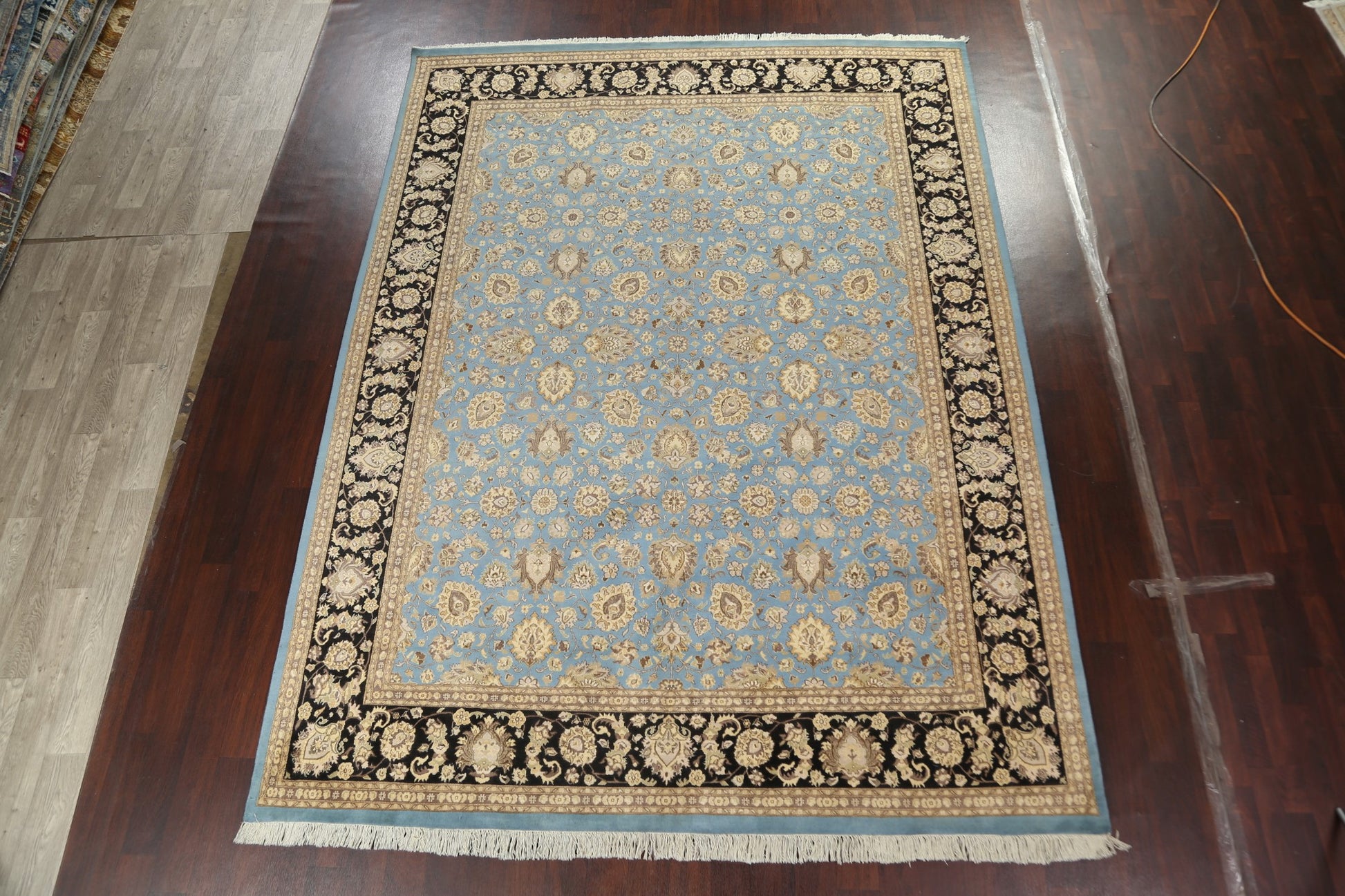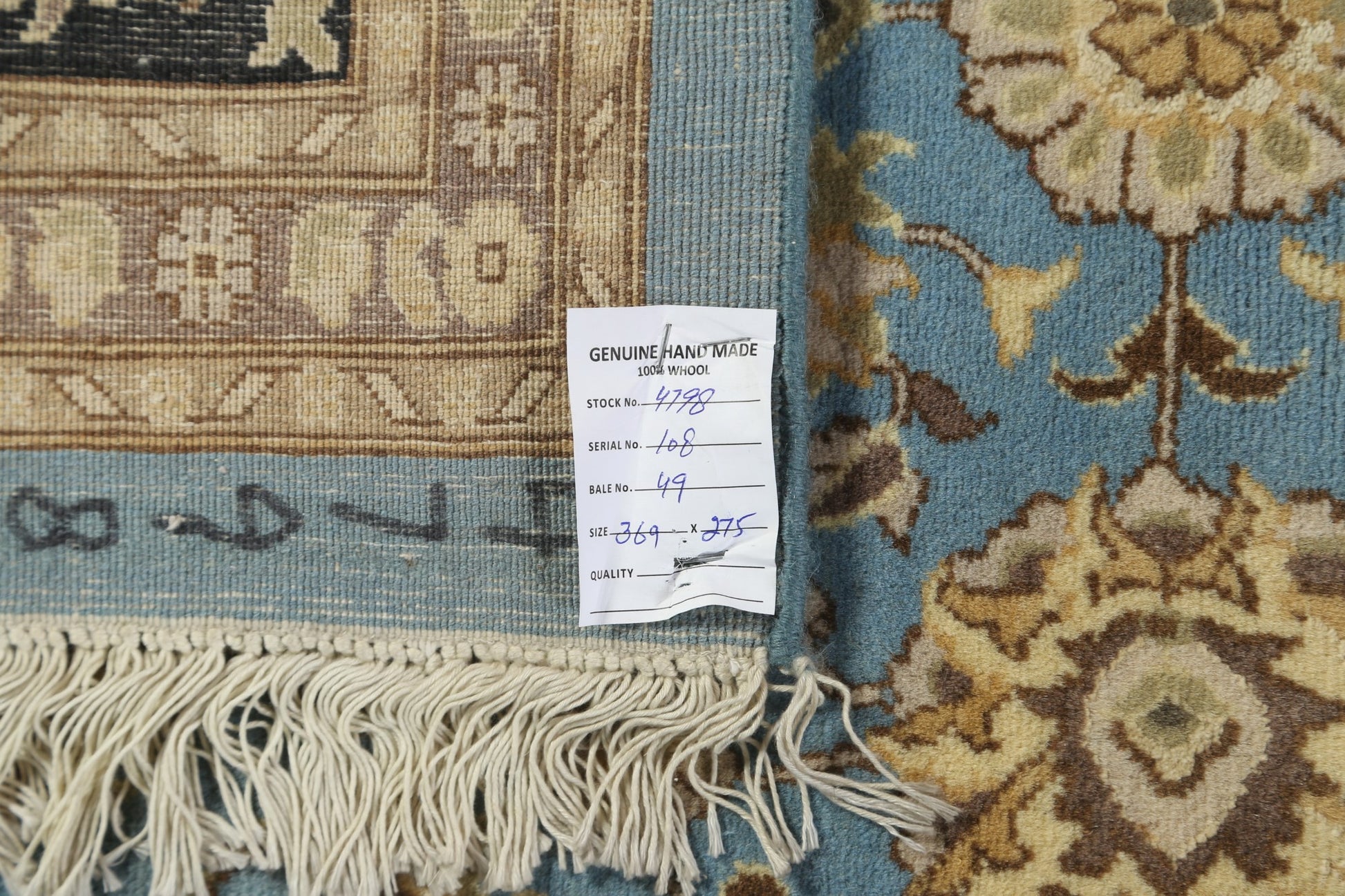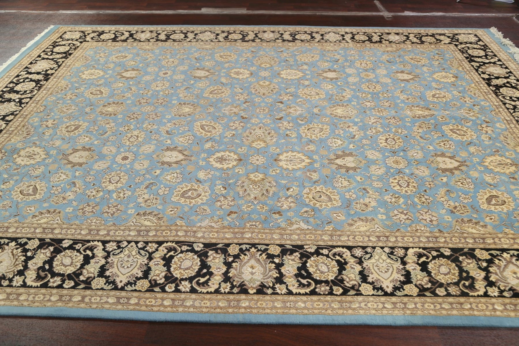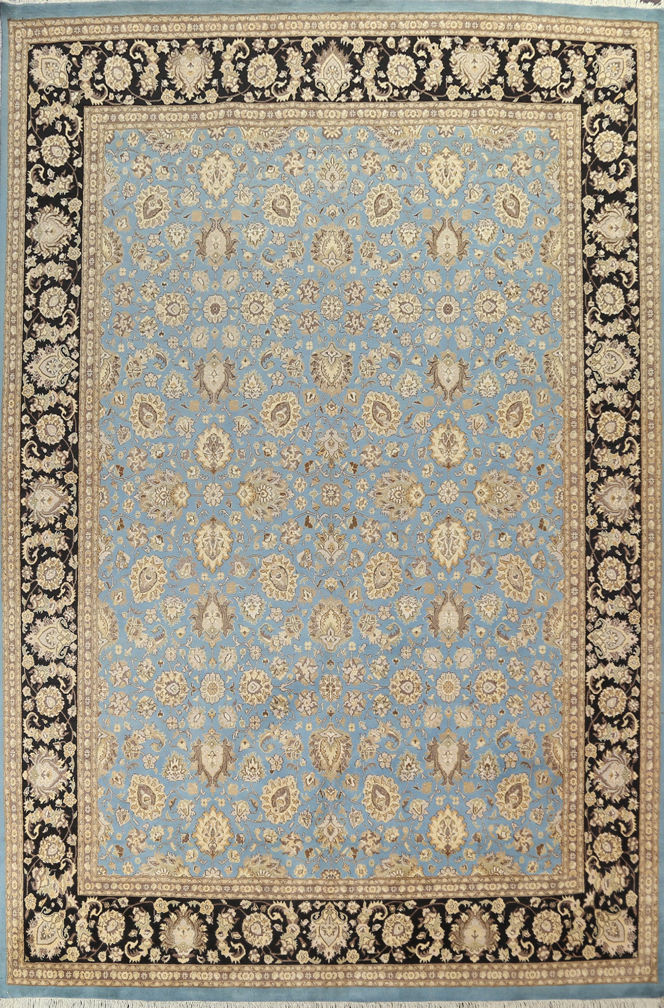 A Beautiful Genuine Pakistan Tabriz rug is Hand Knotted by skillful weavers in Pakistan with Wool & Silk Material. This rug is in New, First Quality condition. dimensions are 12' 1'' X 8' 11'' in foot and 368 X 272 in centimeter. the primary color is Navy Blue & Blues.