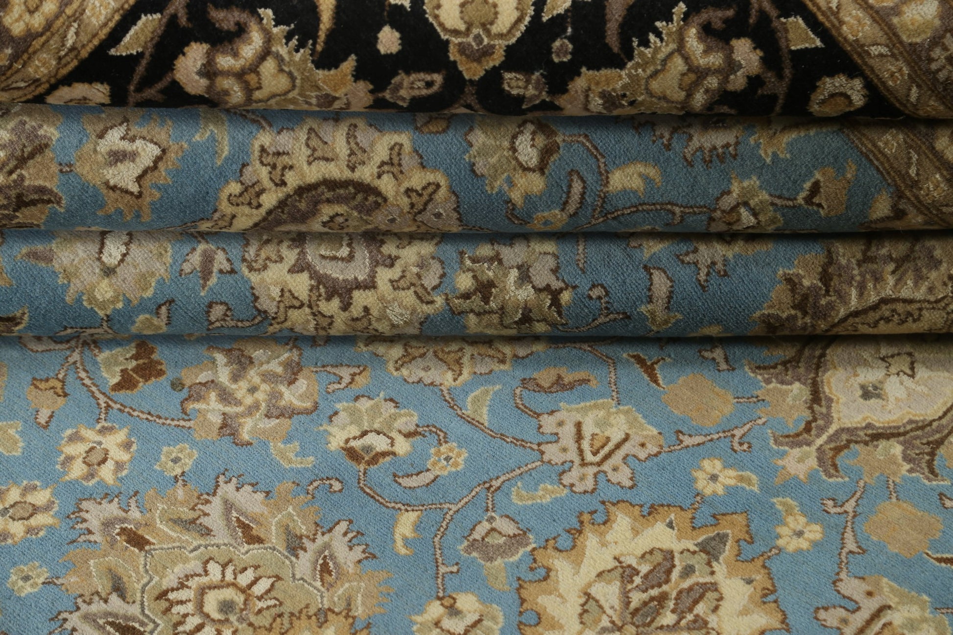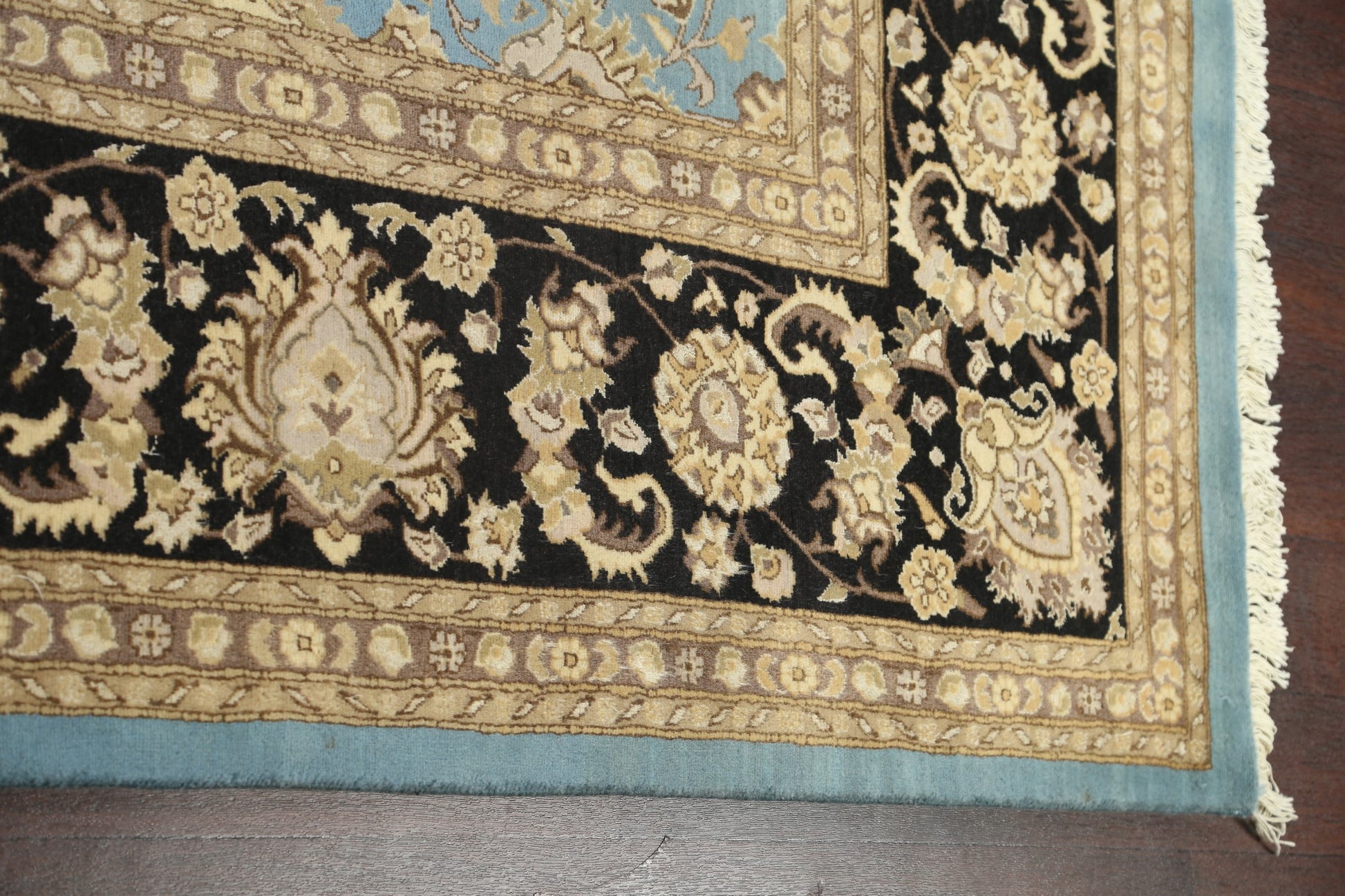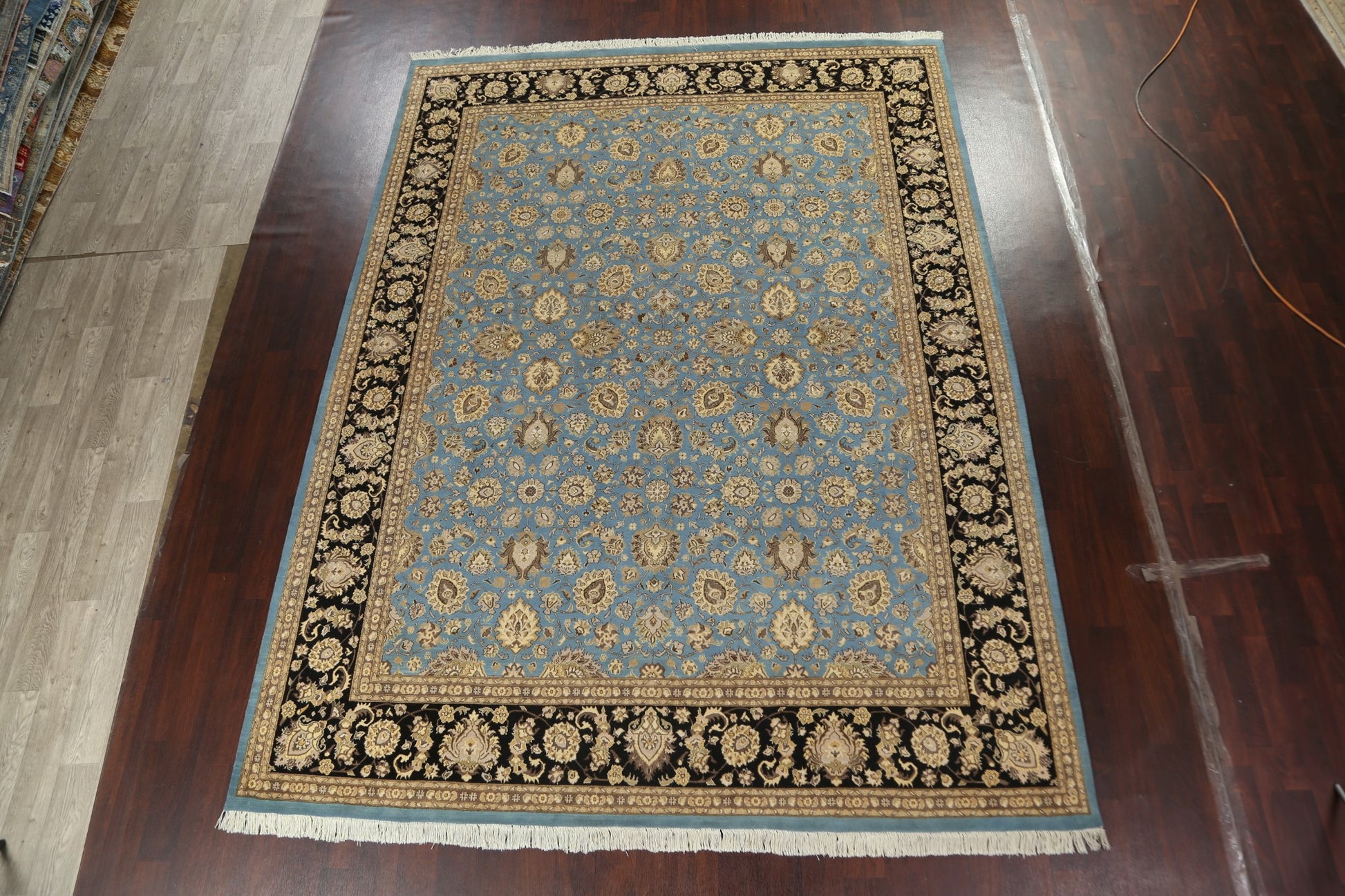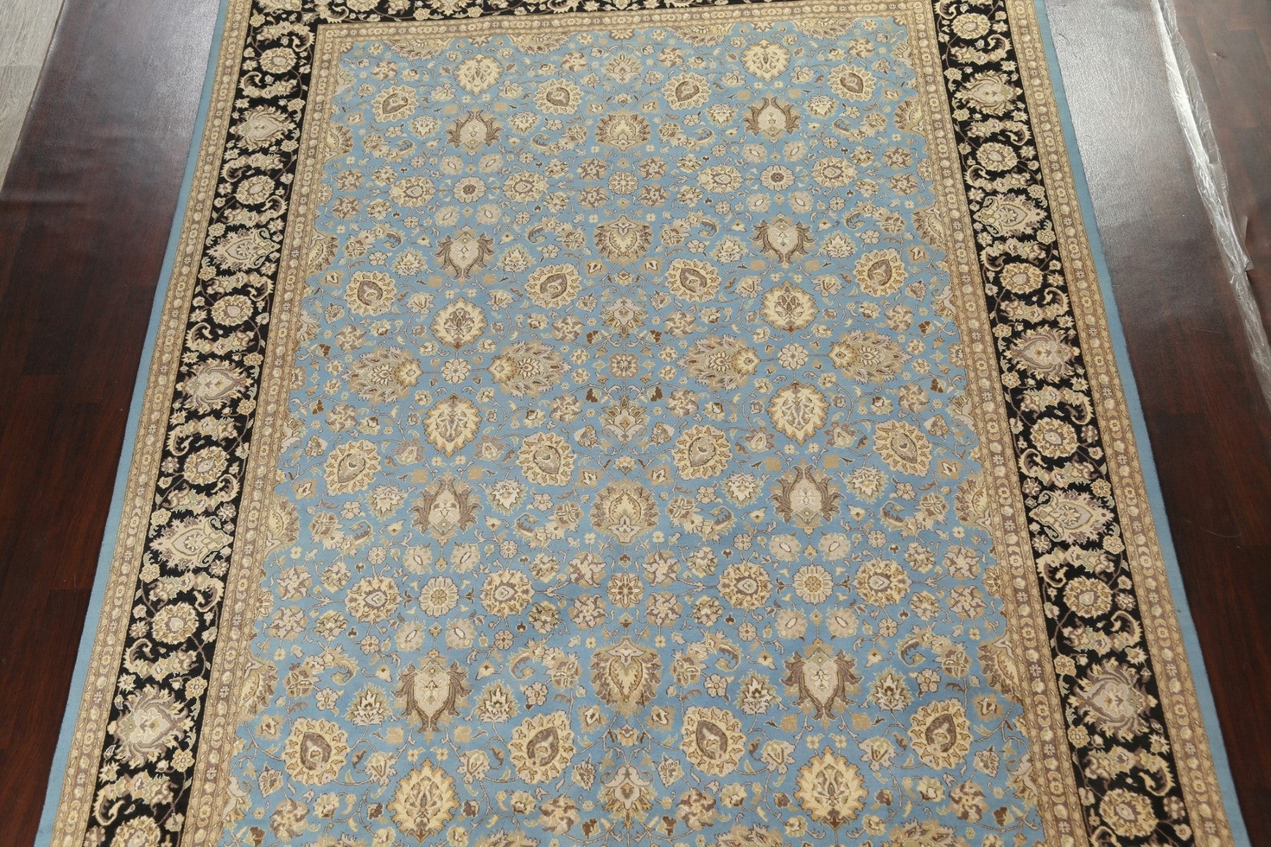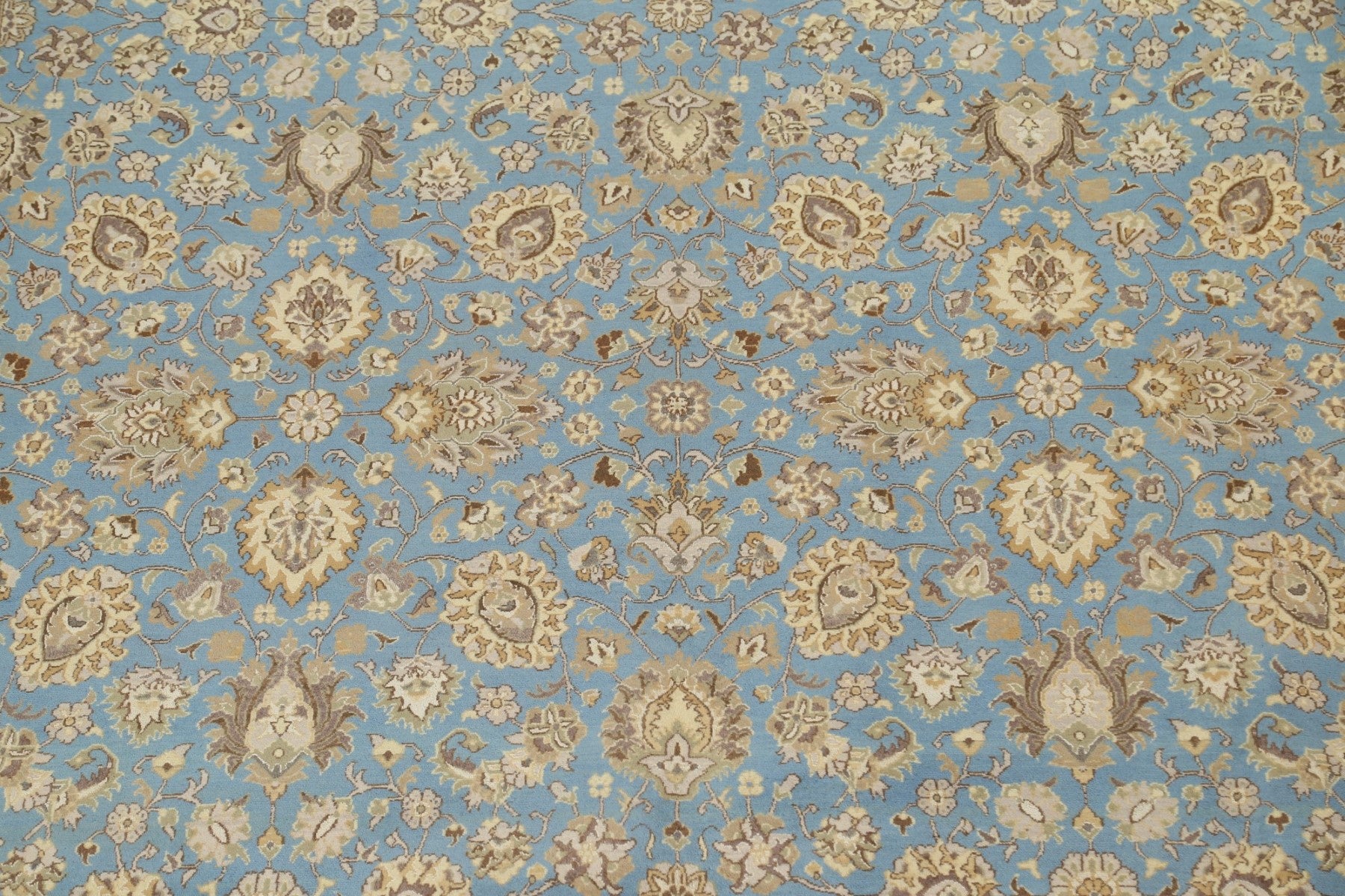 A Beautiful Genuine Pakistan Tabriz rug is Hand Knotted by skillful weavers in Pakistan with Wool & Silk Material. This rug is in New, First Quality condition. dimensions are 12' 1'' X 8' 11'' in foot and 368 X 272 in centimeter. the primary color is Navy Blue & Blues.