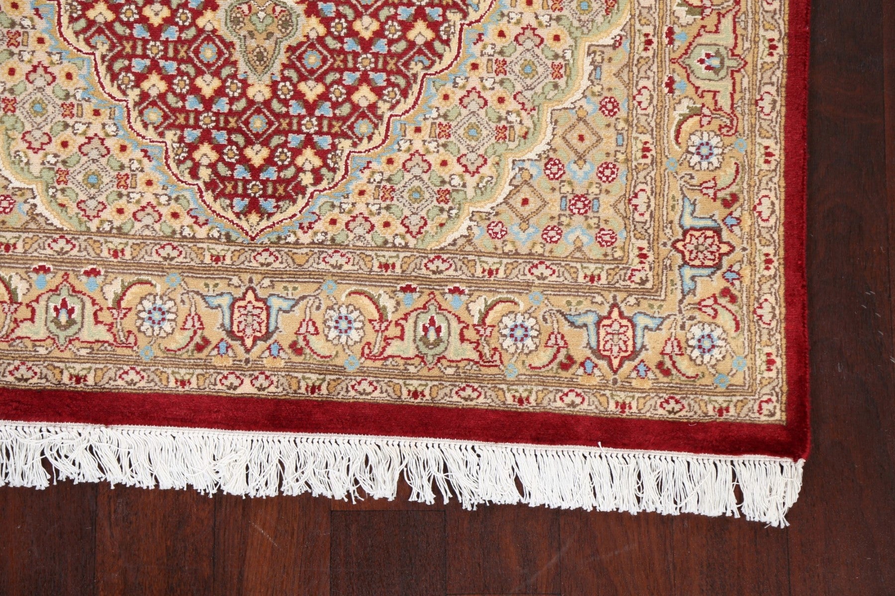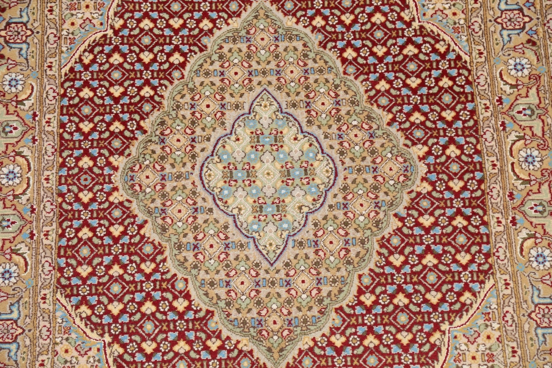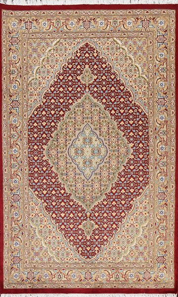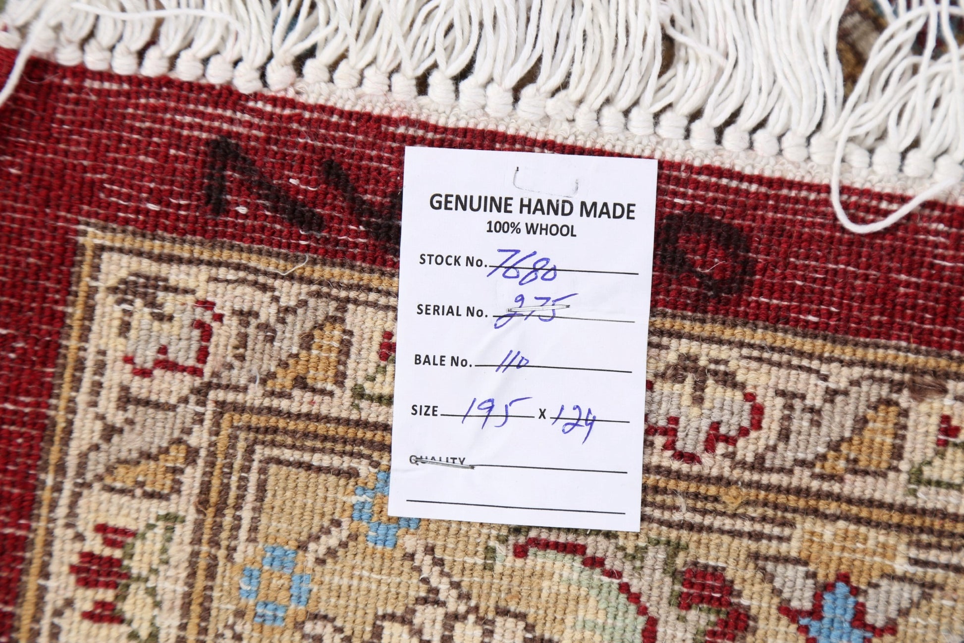 A Beautiful Genuine Pakistan Tabriz rug is Hand Knotted by skillful weavers in Pakistan with Wool & Silk Material. This rug is in New, First Quality condition. dimensions are 6' 5'' X 4' 1'' in foot and 196 X 124 in centimeter. the primary color is Red.