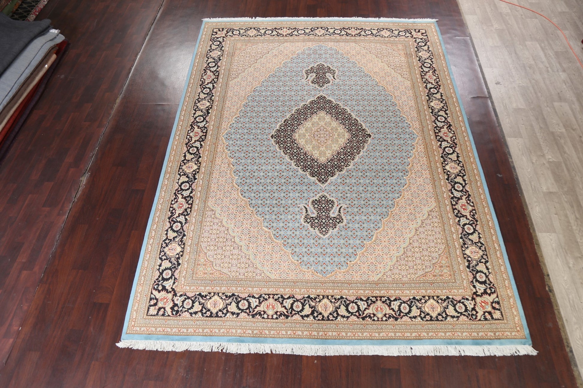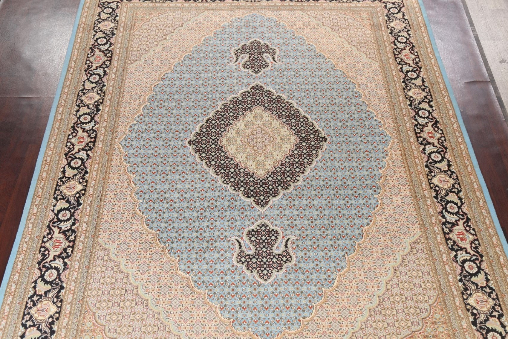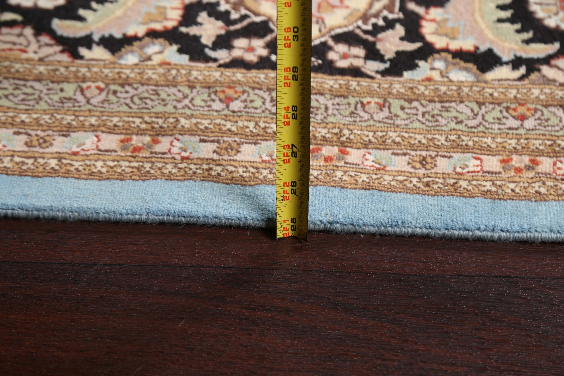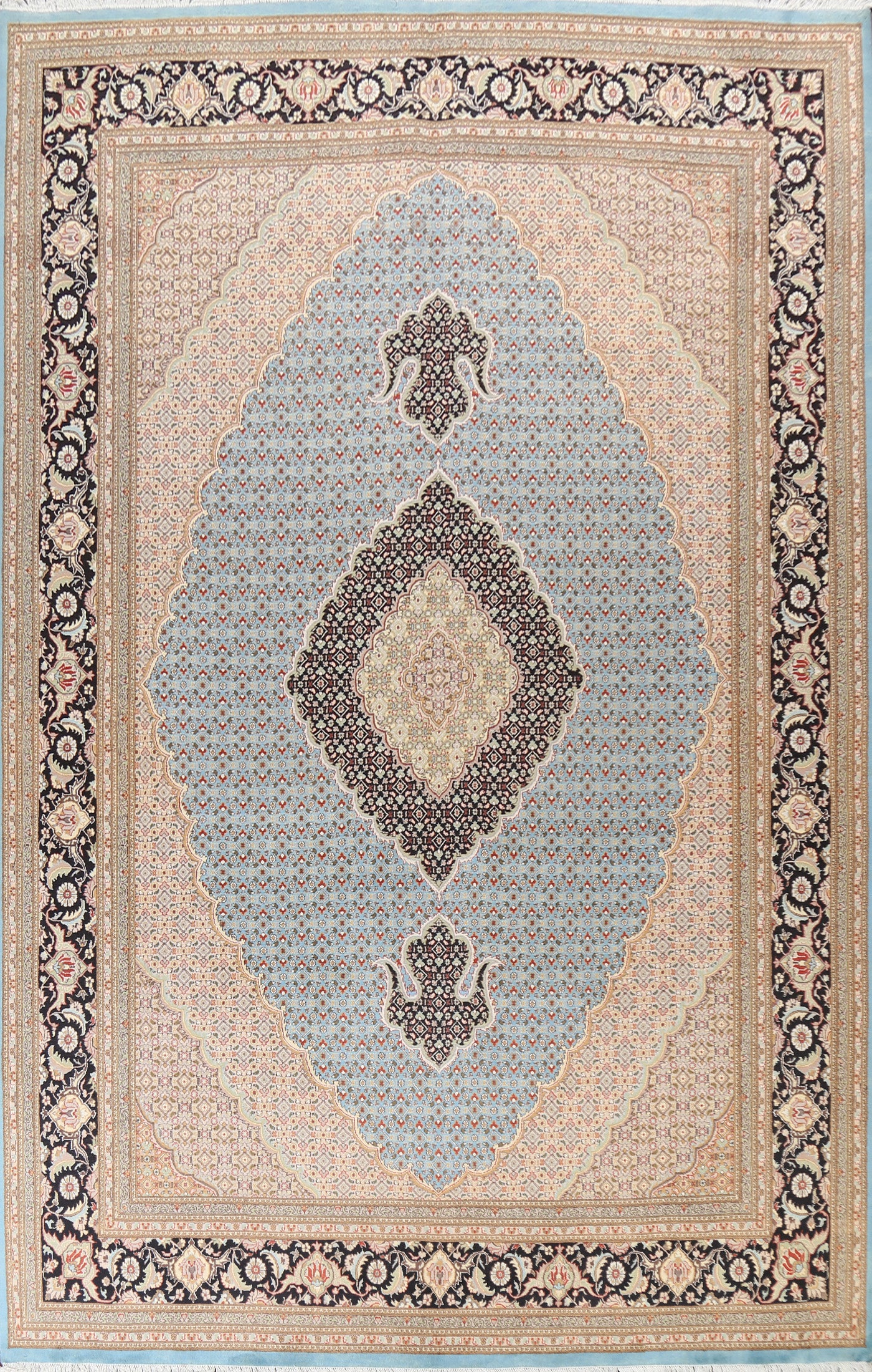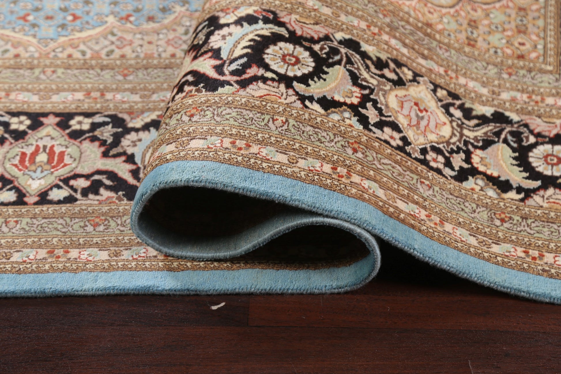 A Beautiful Genuine Pakistan Tabriz rug is Hand Knotted by skillful weavers in Pakistan with Wool & Silk Material. This rug is in New, First Quality condition. dimensions are 12' 3'' X 9' 1'' in foot and 373 X 277 in centimeter. the primary color is Navy Blue & Blues.