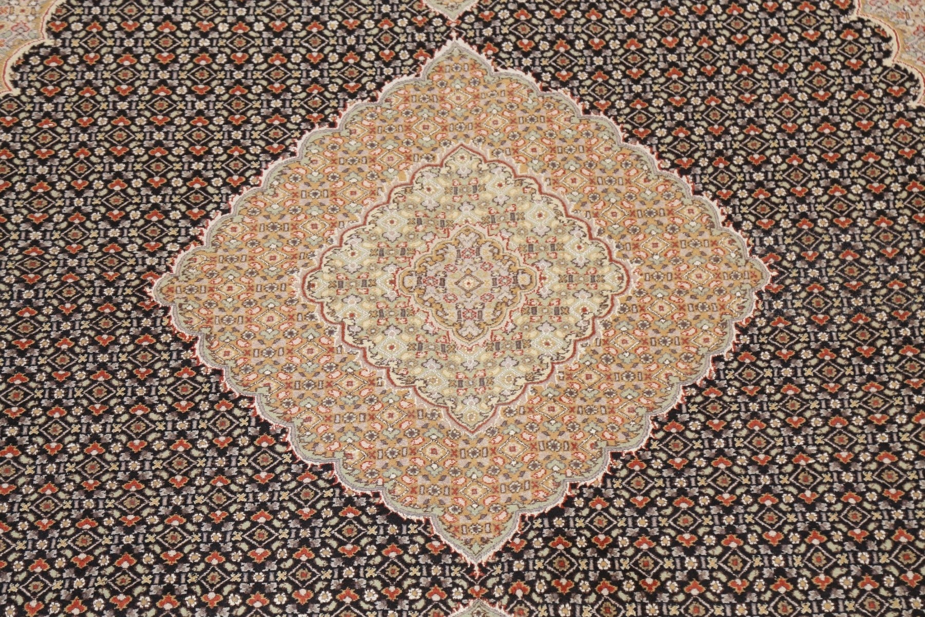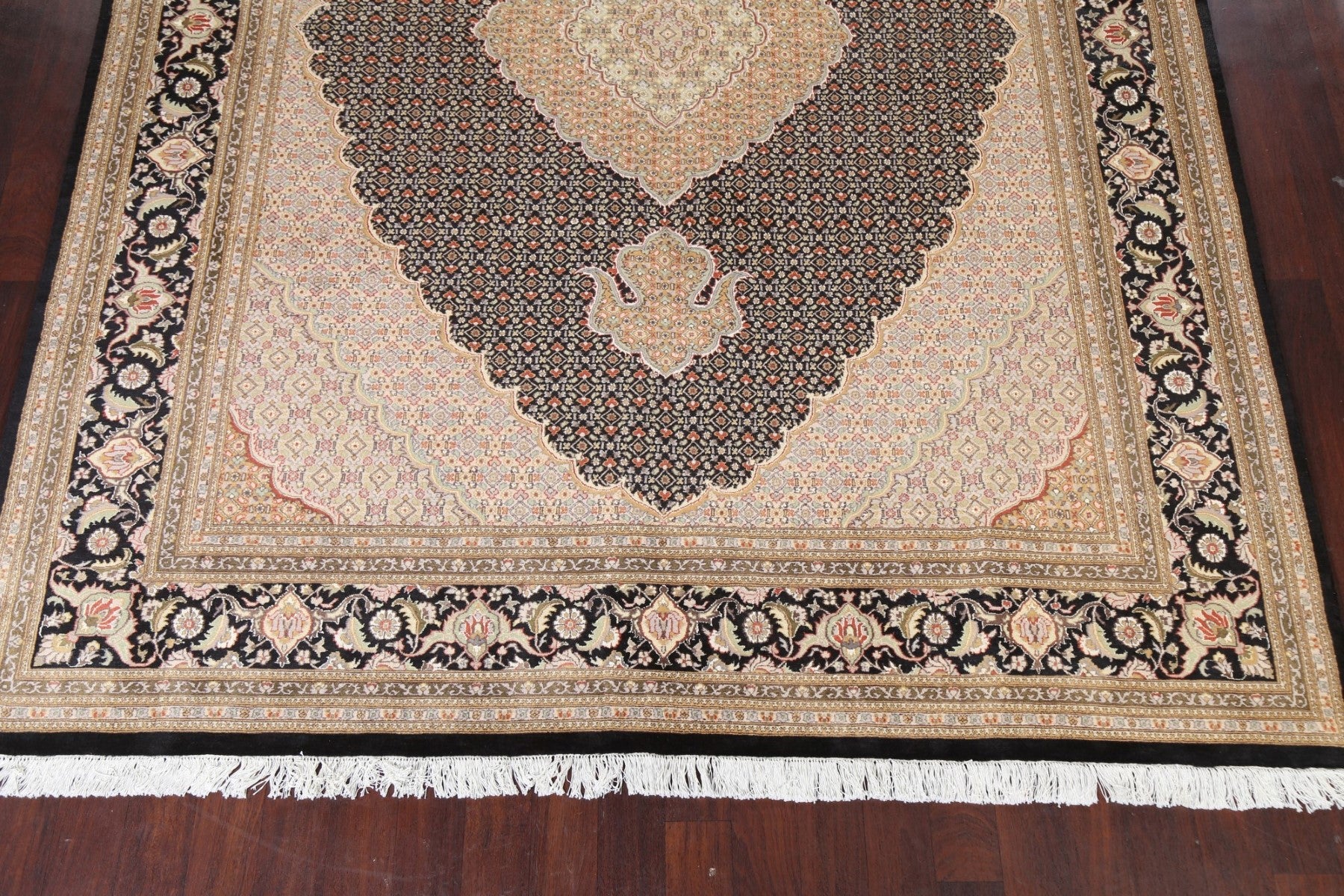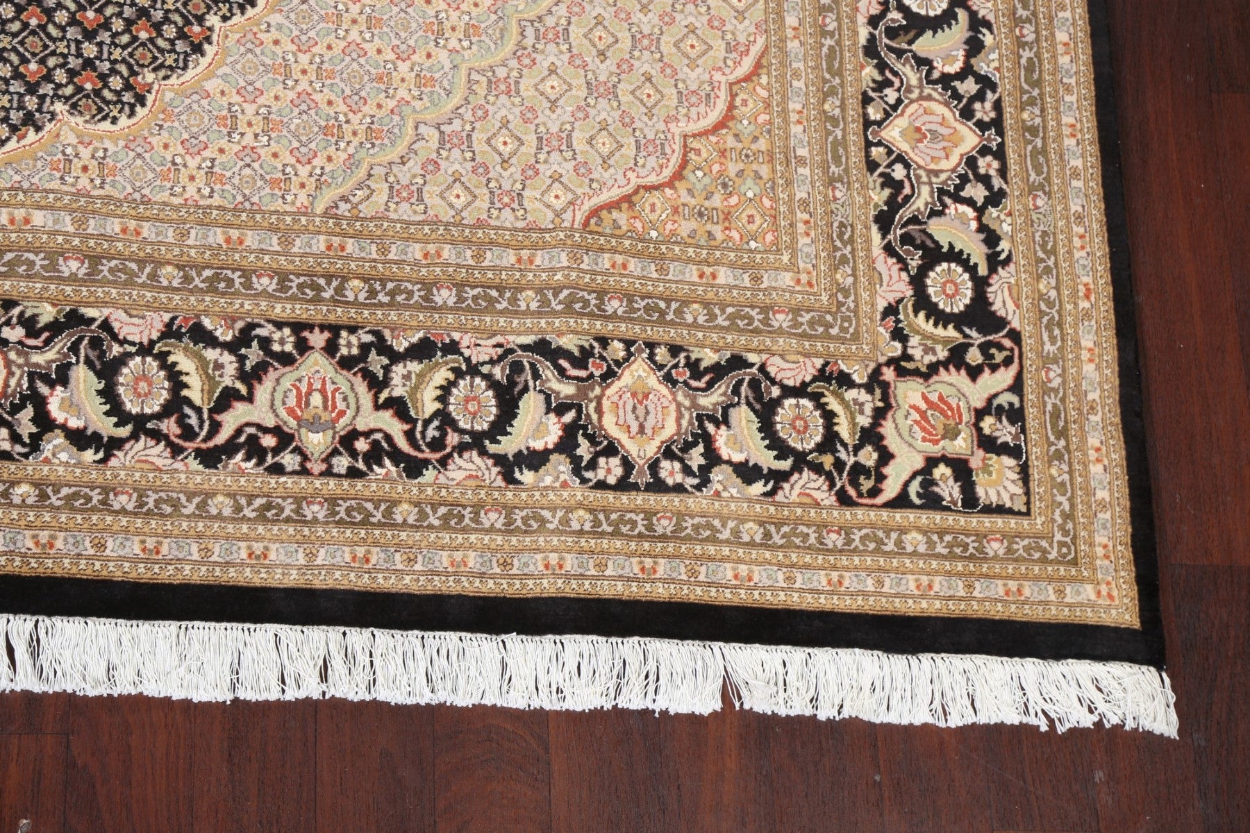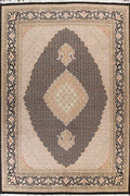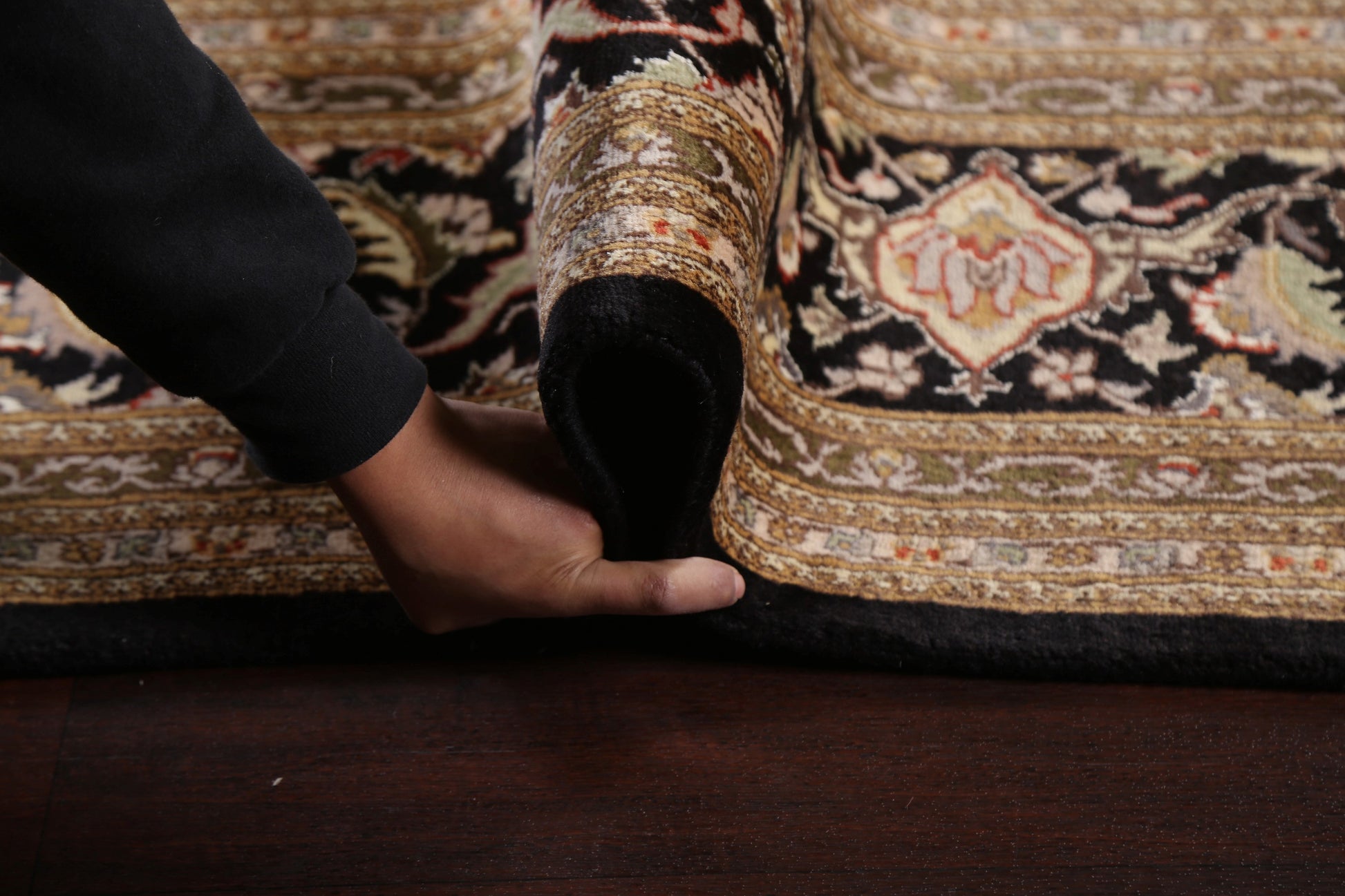 A Beautiful Genuine Pakistan Tabriz rug is Hand Knotted by skillful weavers in Pakistan with Wool & Silk Material. This rug is in New, First Quality condition. dimensions are 12' 1'' X 9' 0'' in foot and 368 X 274 in centimeter. the primary color is Black.