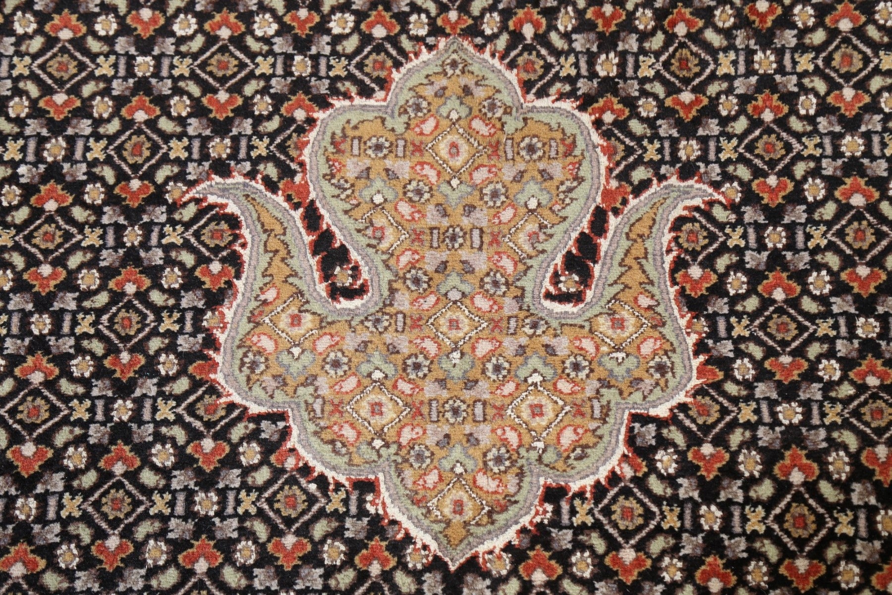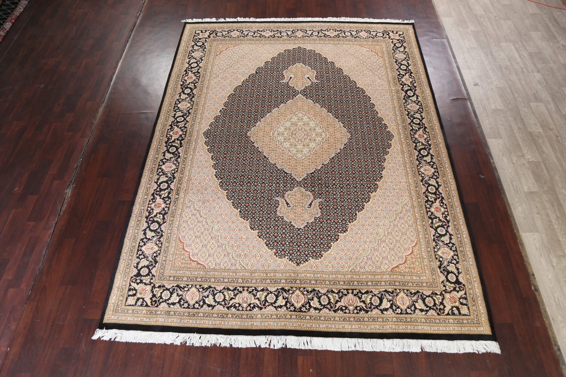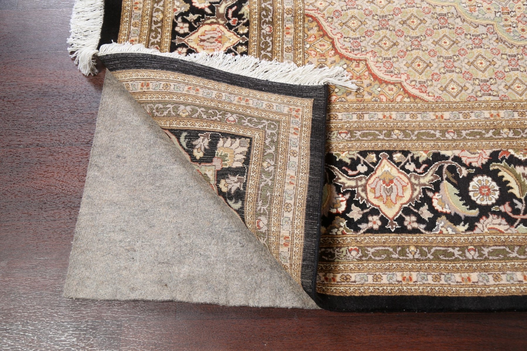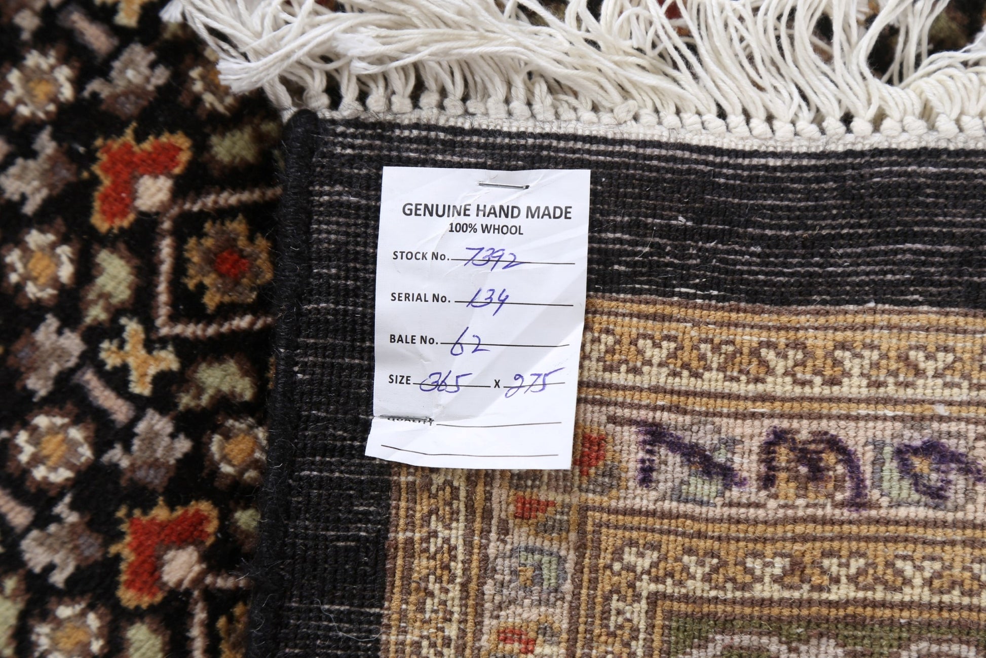 A Beautiful Genuine Pakistan Tabriz rug is Hand Knotted by skillful weavers in Pakistan with Wool & Silk Material. This rug is in New, First Quality condition. dimensions are 12' 1'' X 9' 0'' in foot and 368 X 274 in centimeter. the primary color is Black.