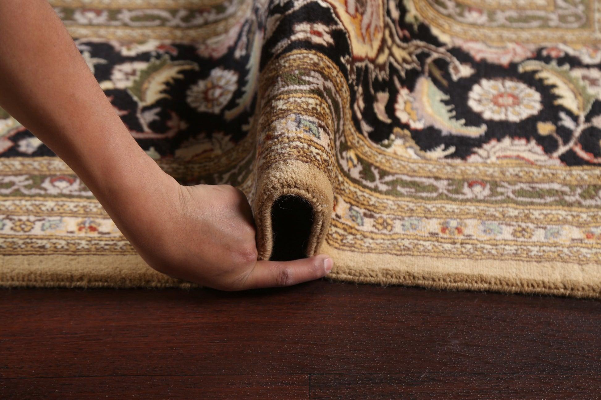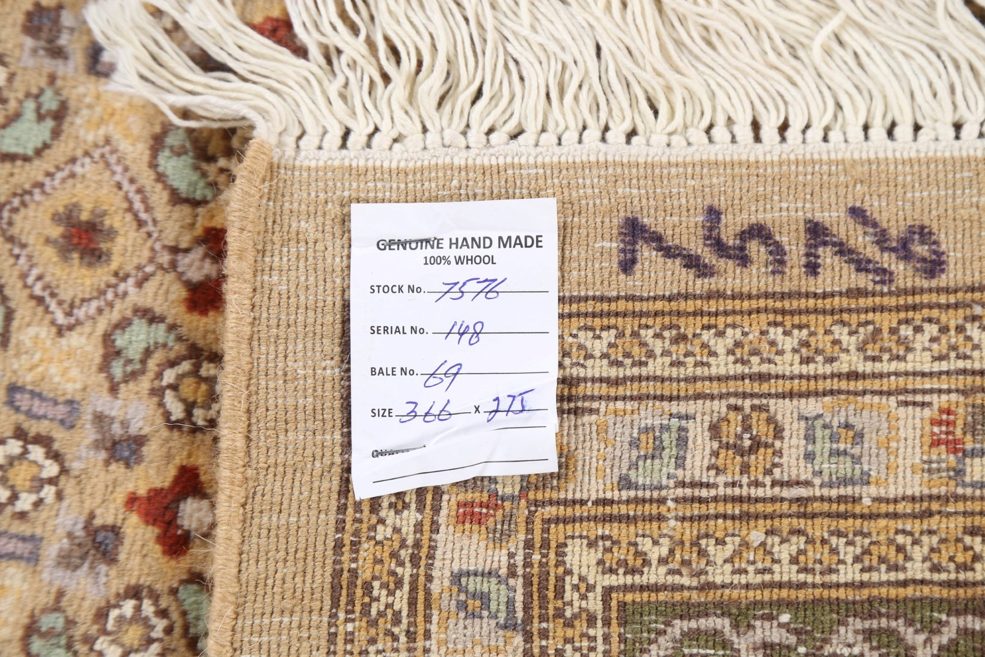 A Beautiful Genuine Pakistan Tabriz rug is Hand Knotted by skillful weavers in Pakistan with Wool & Silk Material. This rug is in New, First Quality condition. dimensions are 12' 1'' X 9' 0'' in foot and 368 X 274 in centimeter. the primary color is Beige & Ivories.
