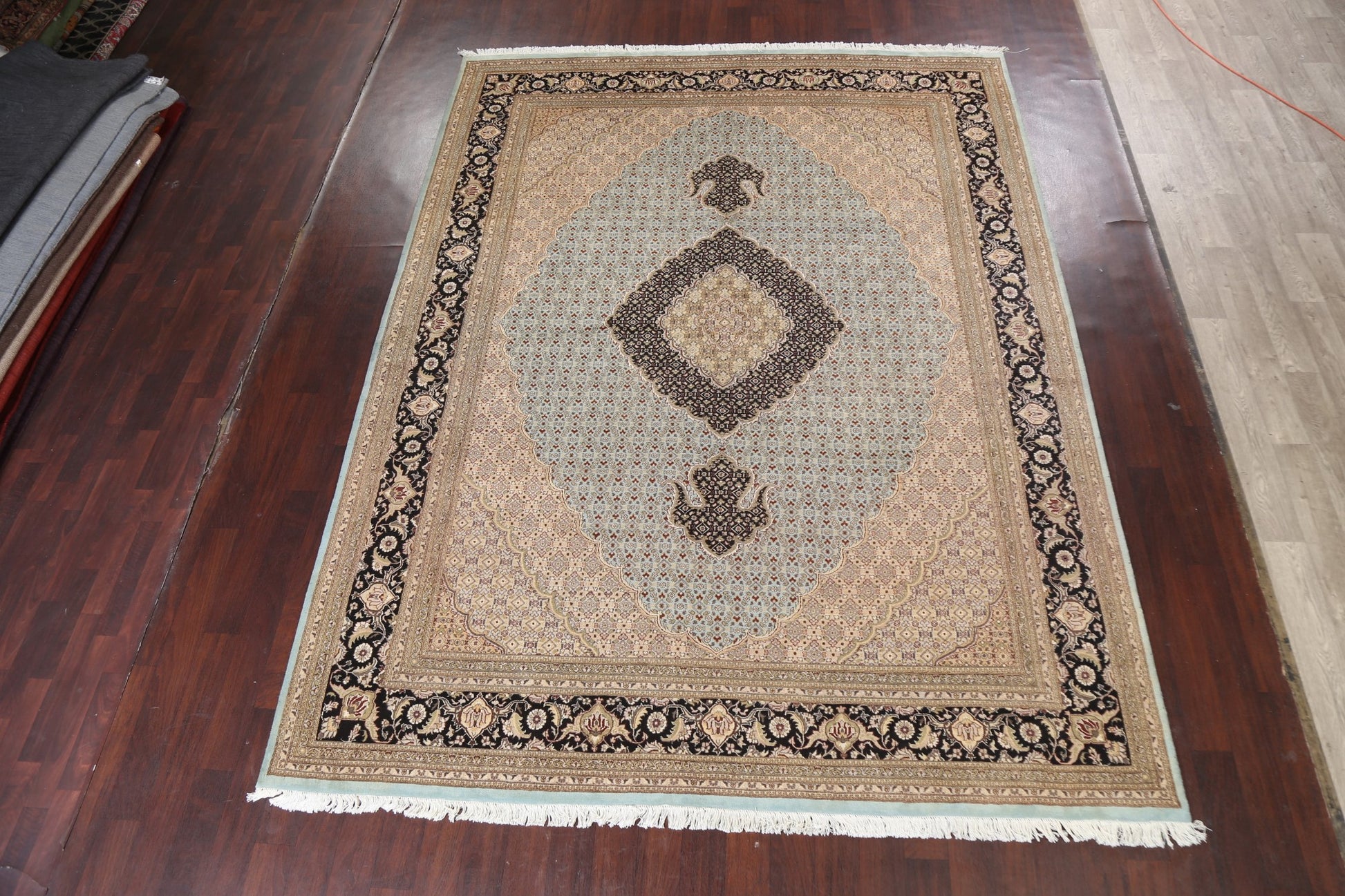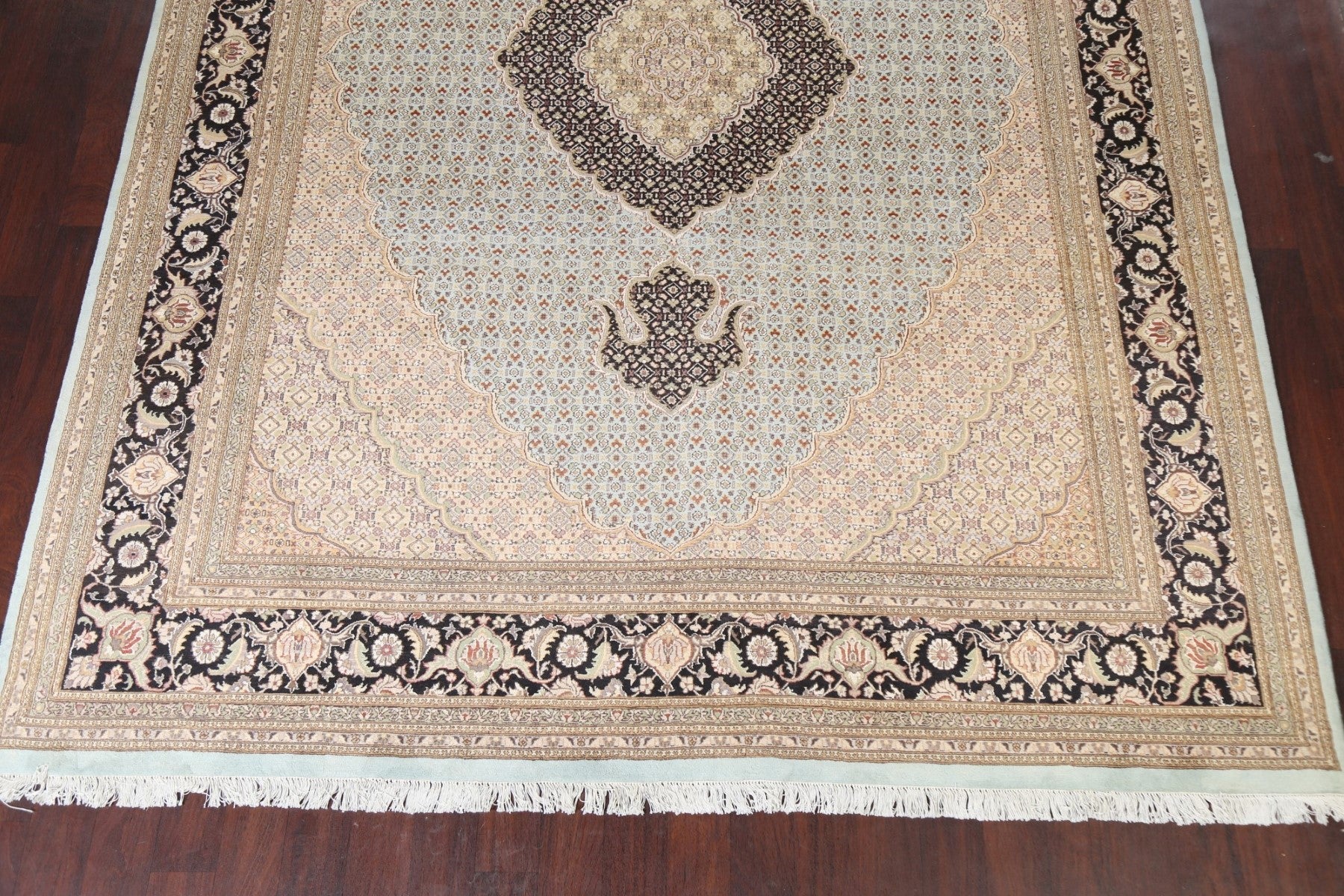 A Beautiful Genuine Pakistan Tabriz rug is Hand Knotted by skillful weavers in Pakistan with Wool & Silk Material. This rug is in New, First Quality condition. dimensions are 12' 0'' X 9' 1'' in foot and 366 X 277 in centimeter. the primary color is Navy Blue & Blues.