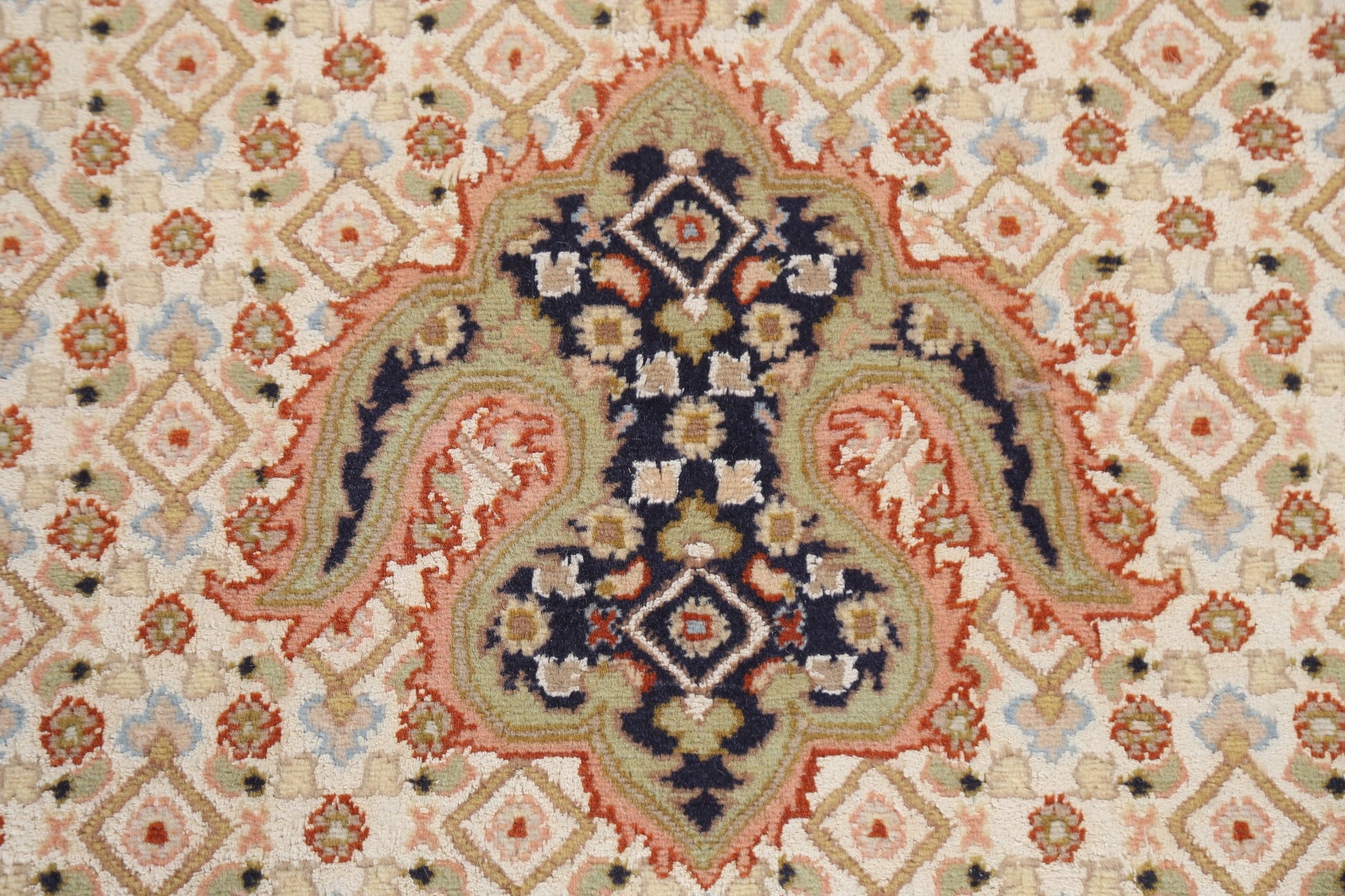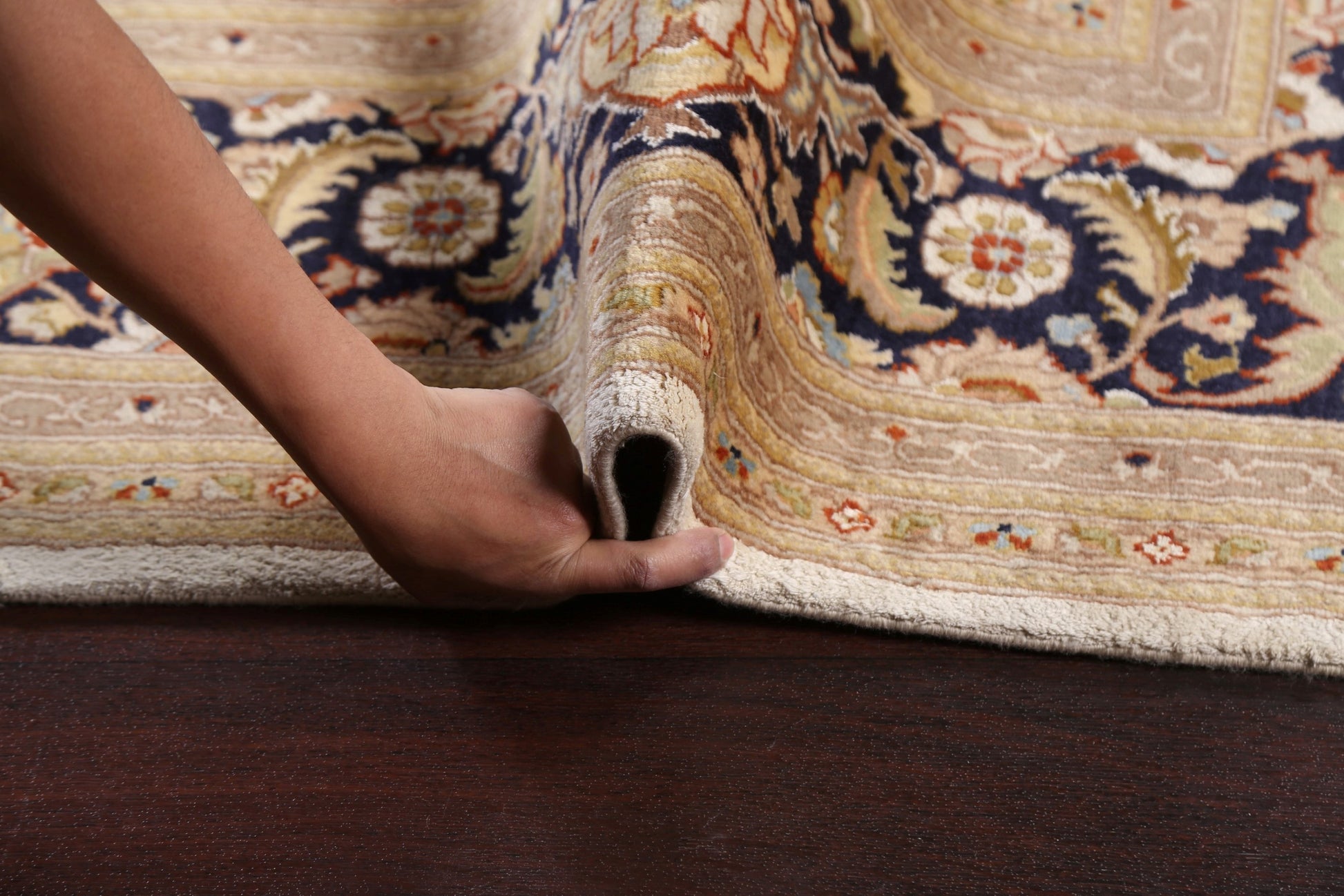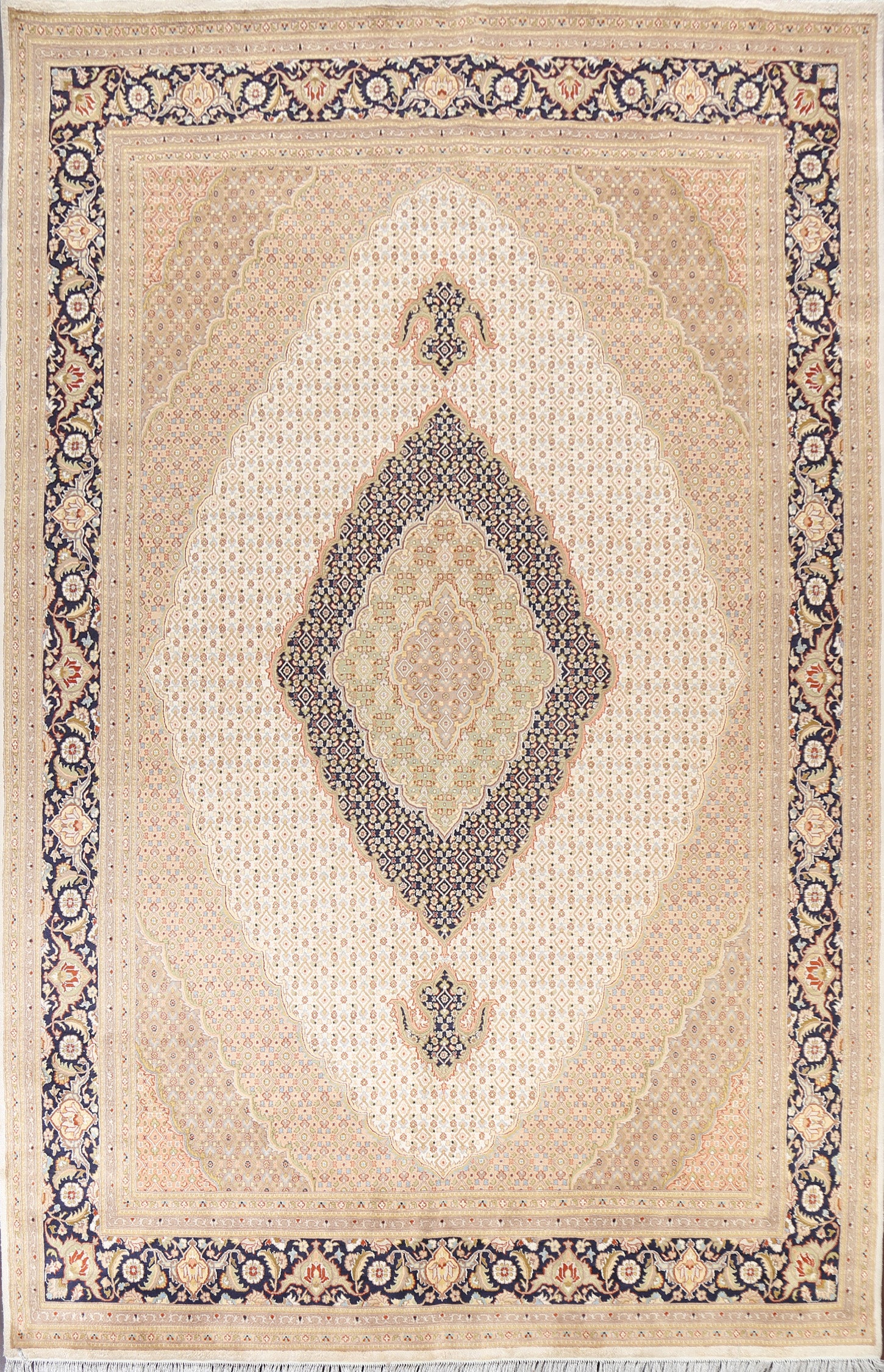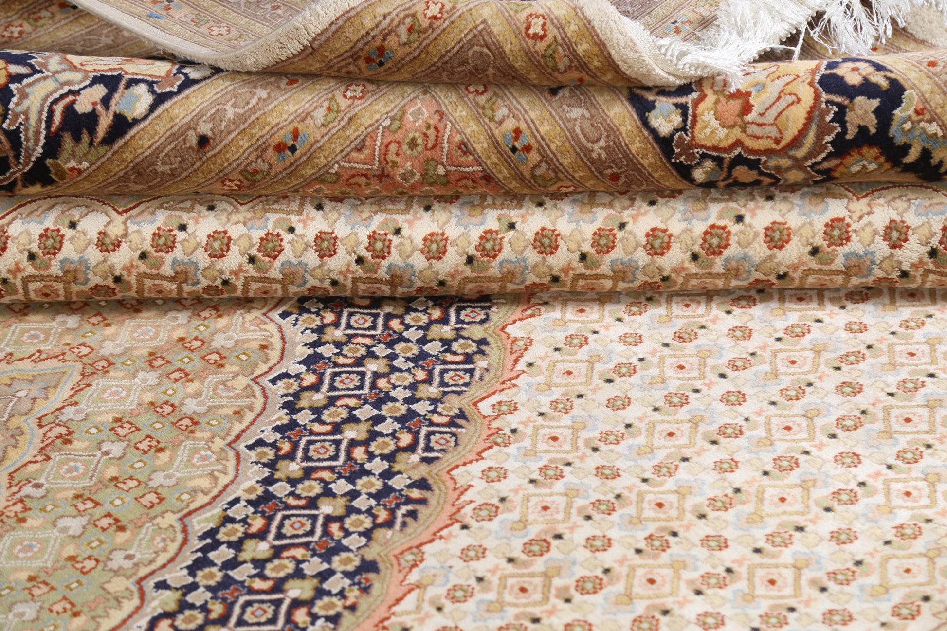 A Beautiful Genuine Pakistan Tabriz rug is Hand Knotted by skillful weavers in Pakistan with Wool & Silk Material. This rug is in New, First Quality condition. dimensions are 12' 1'' X 9' 1'' in foot and 368 X 277 in centimeter. the primary color is Beige & Ivories.