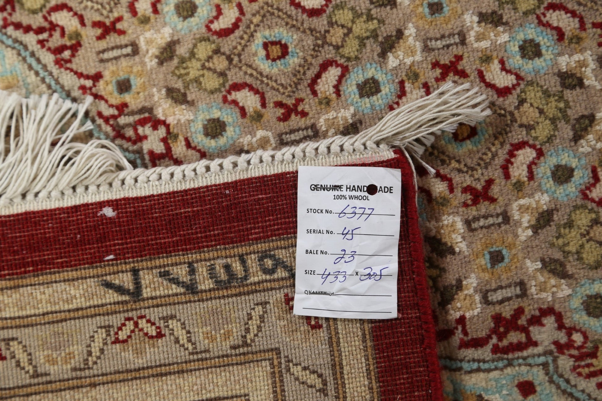 A Beautiful Genuine Persia ( Persia ) Tabriz-Mahi rug is Hand Knotted by skillful weavers in Persia ( Persia ) with 100% Wool Material. This rug is in New, First Quality condition. dimensions are 14' 3'' X 10' 0'' in foot and 434 X 305 in centimeter. the primary color is Red.