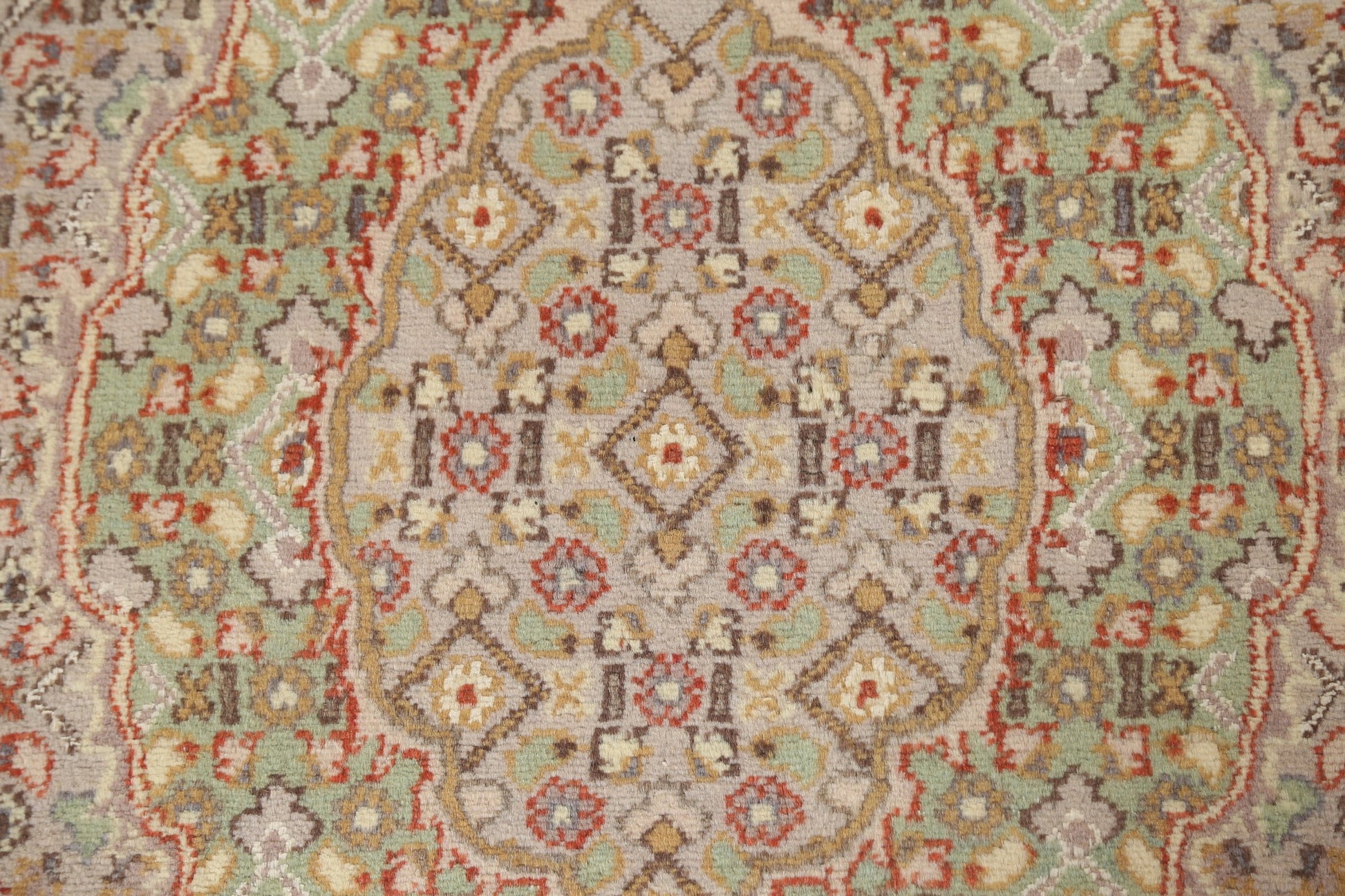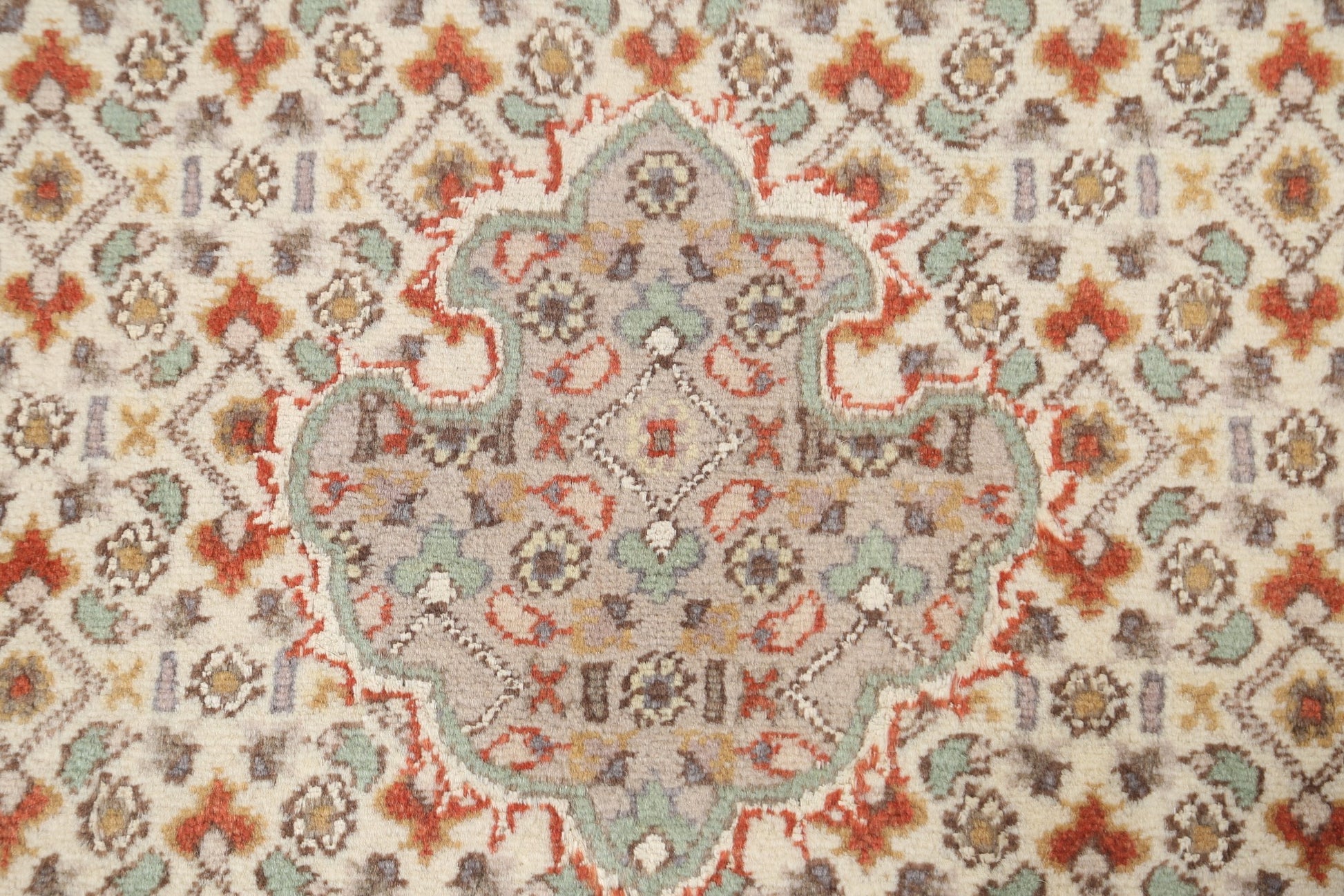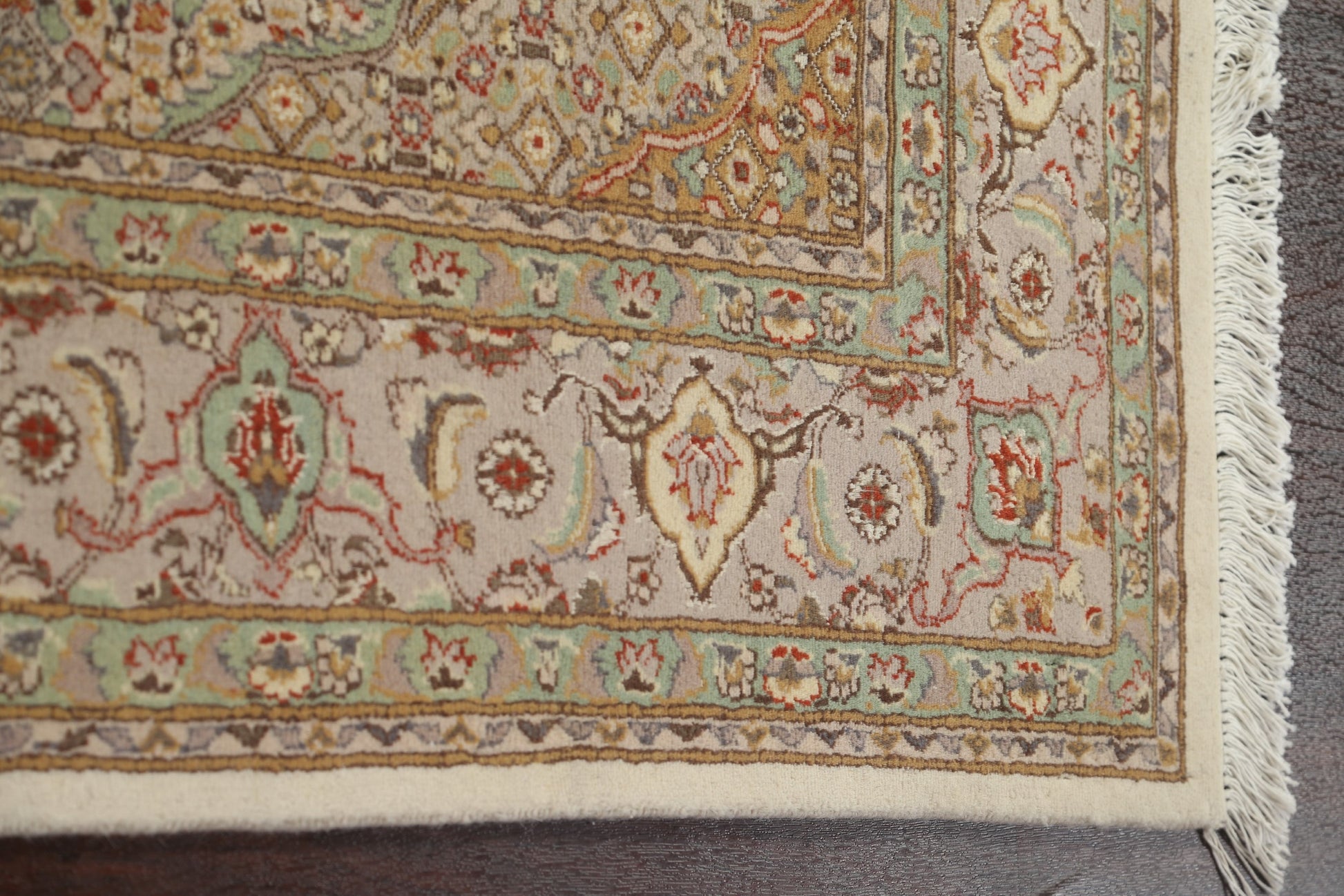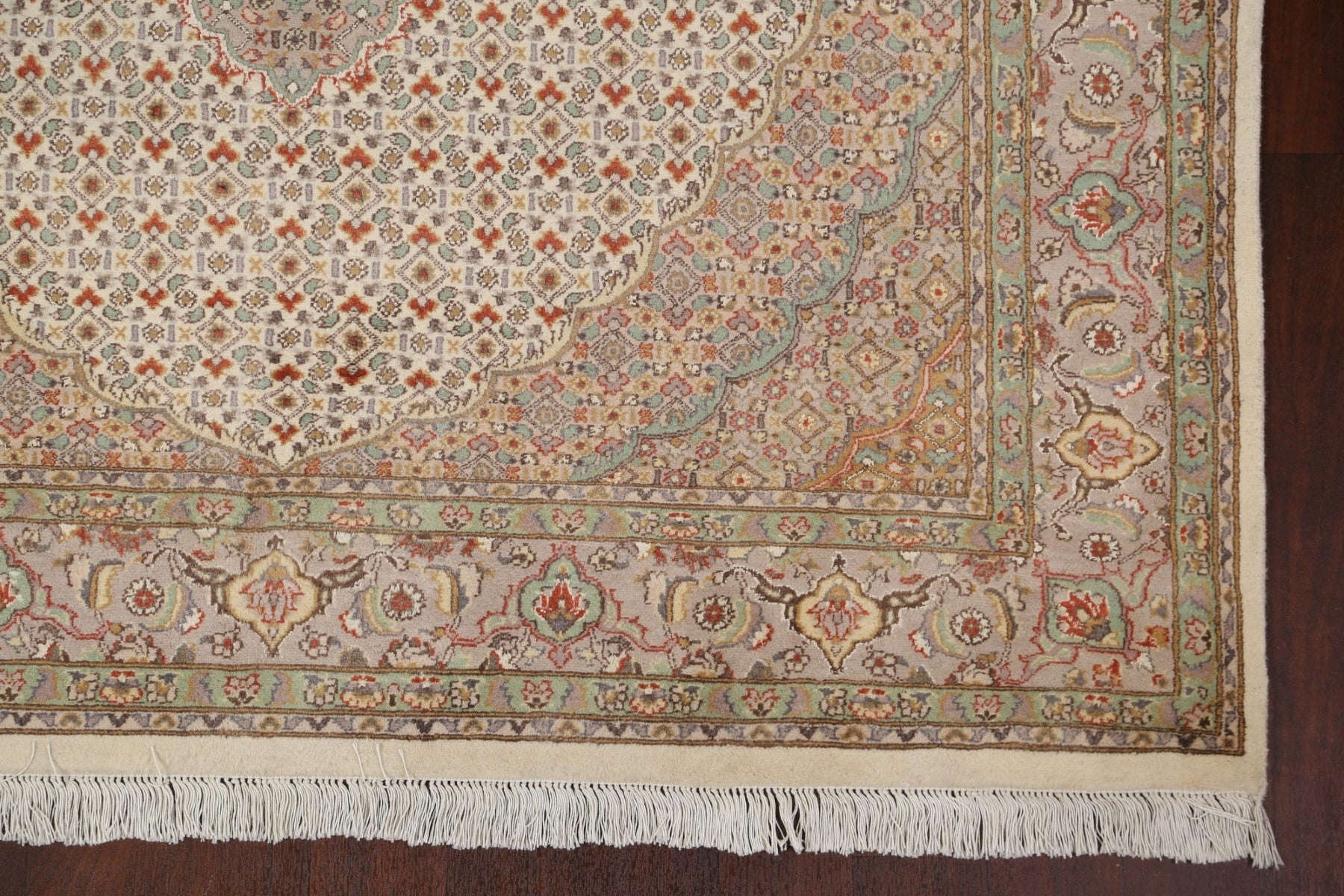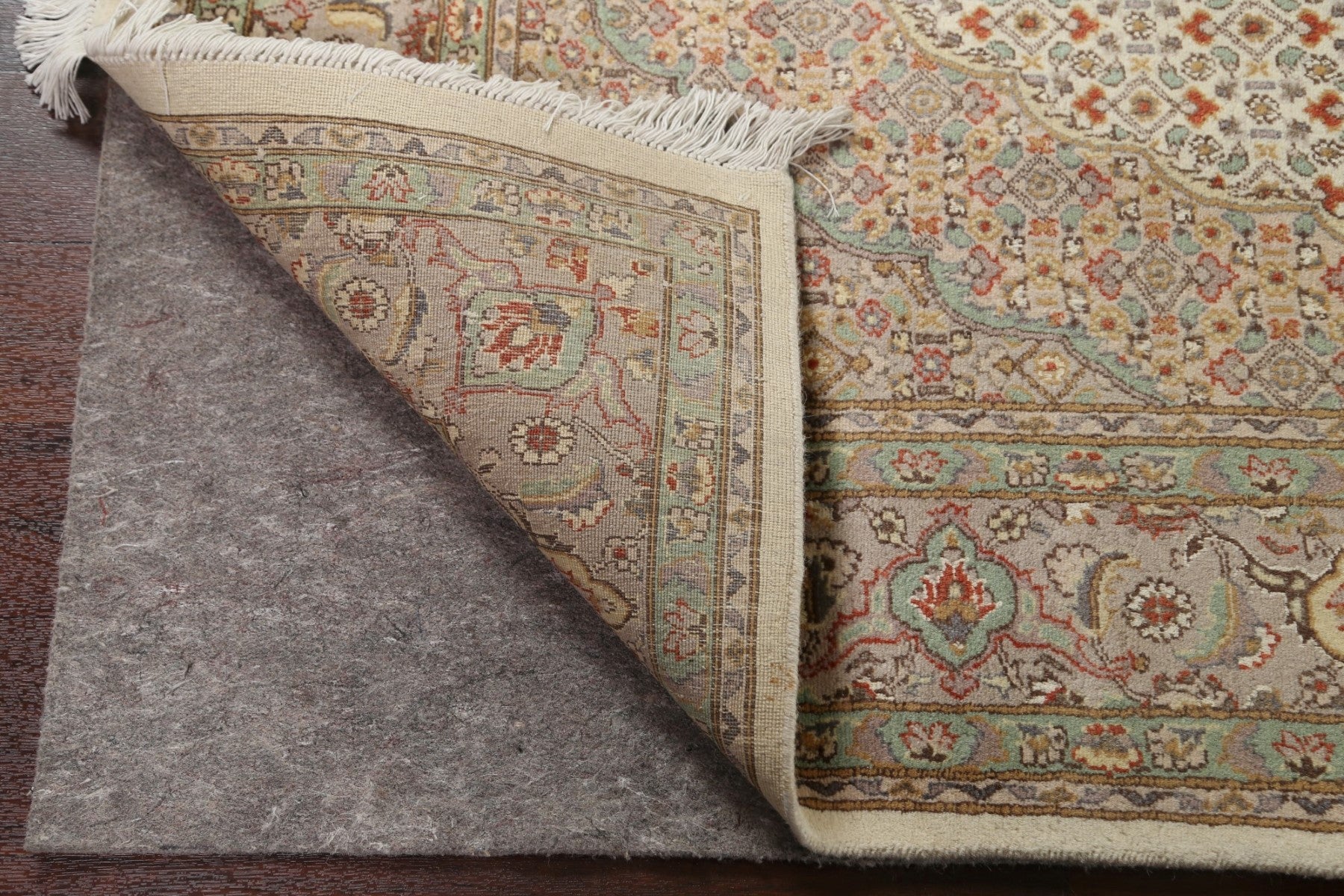 A Beautiful Genuine Persia ( Persia ) Tabriz-Mahi rug is Hand Knotted by skillful weavers in Persia ( Persia ) with 100% Wool Material. This rug is in New, First Quality condition. dimensions are 9' 3'' X 5' 11'' in foot and 282 X 180 in centimeter. the primary color is Beige & Ivories.