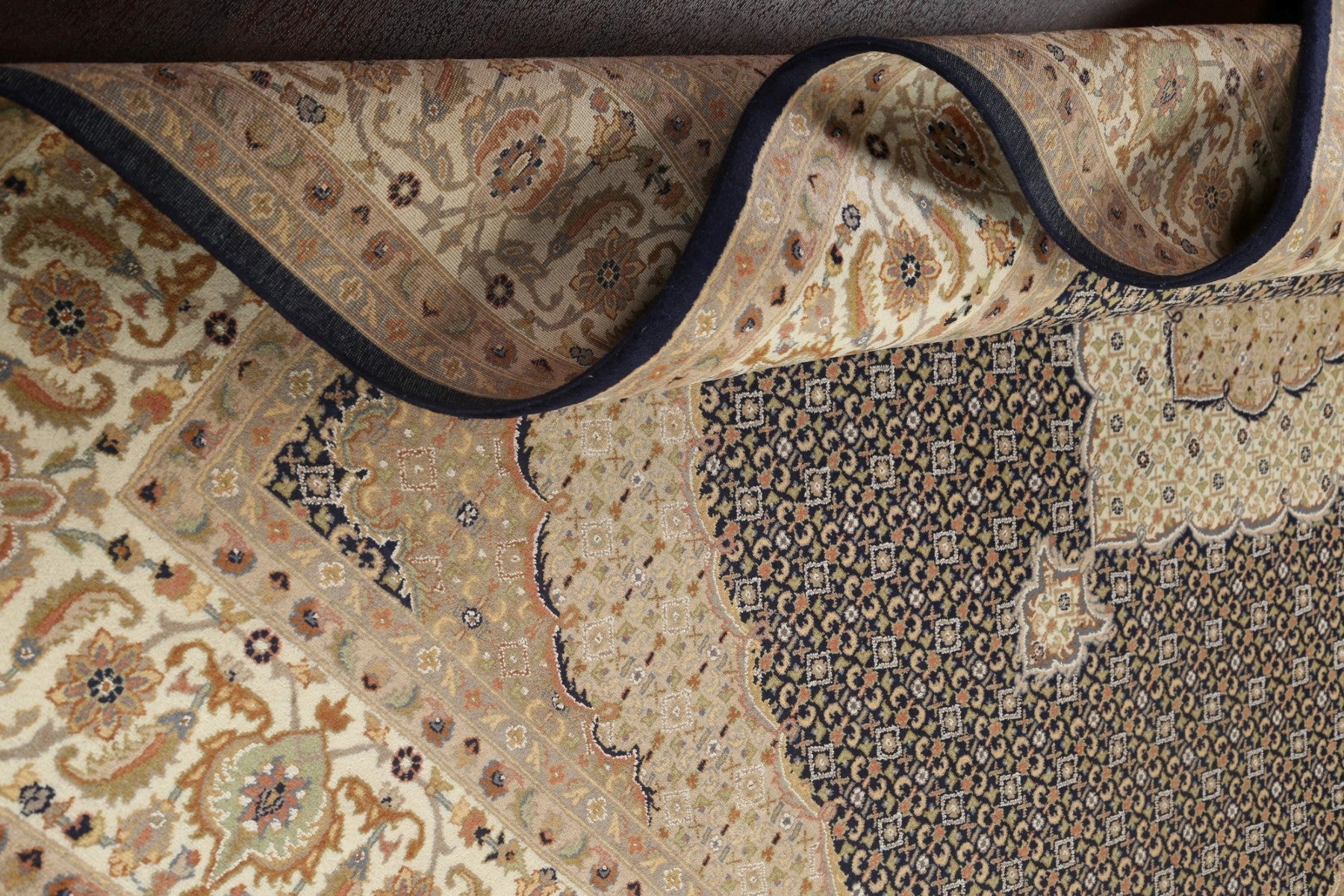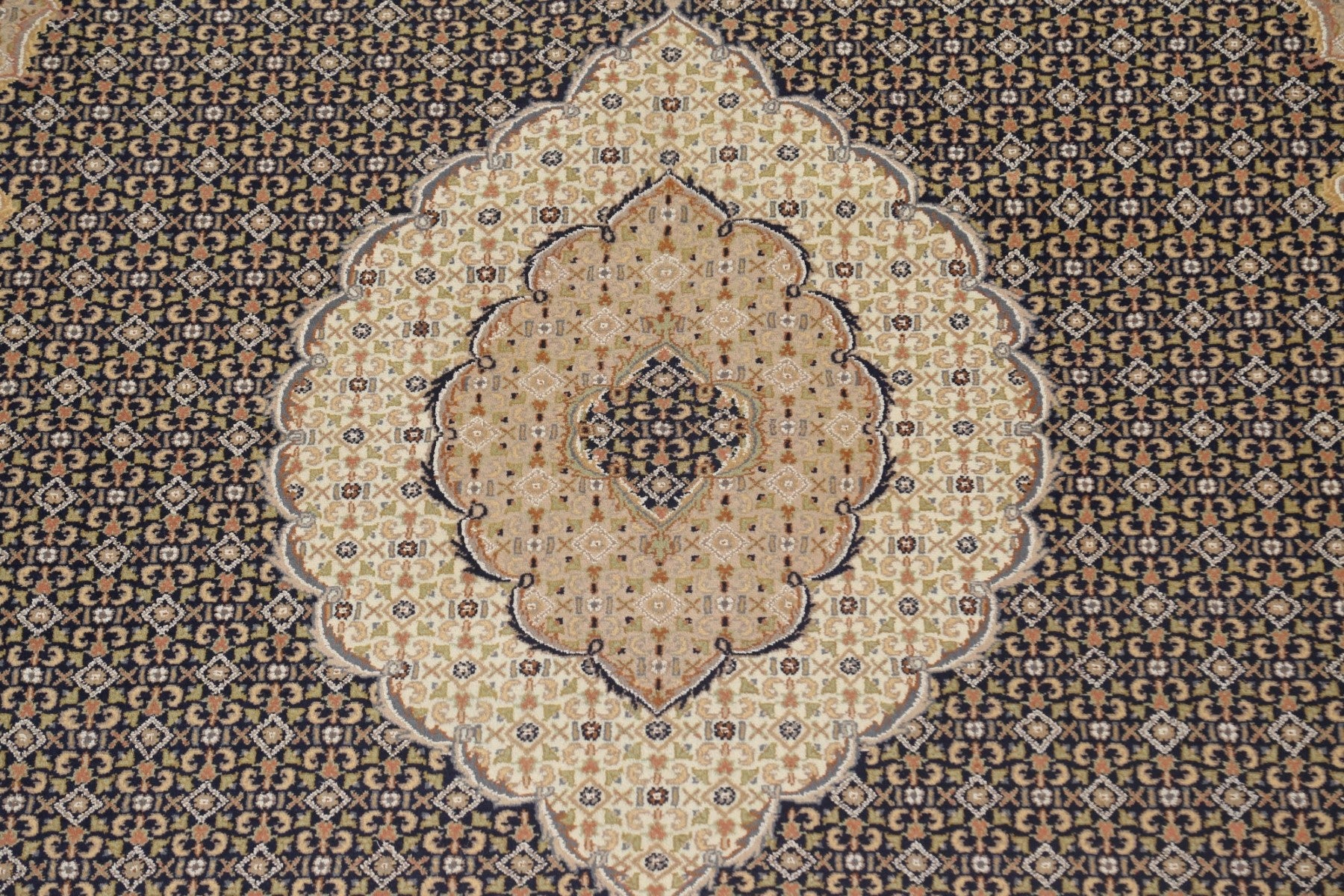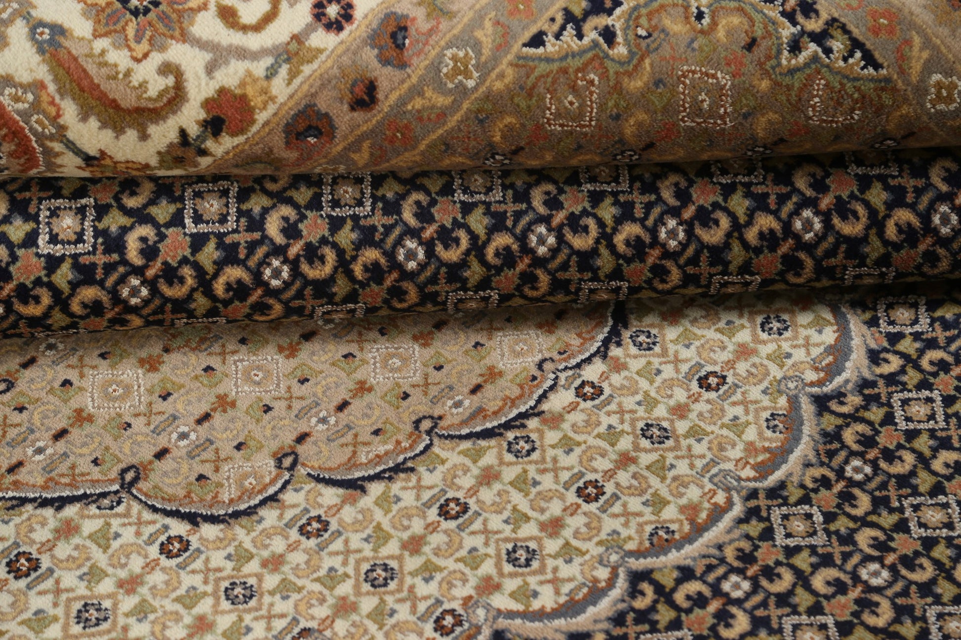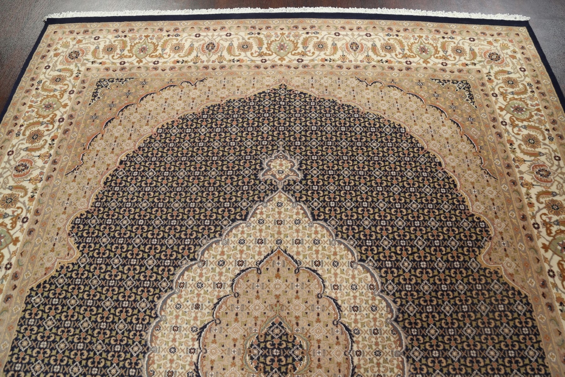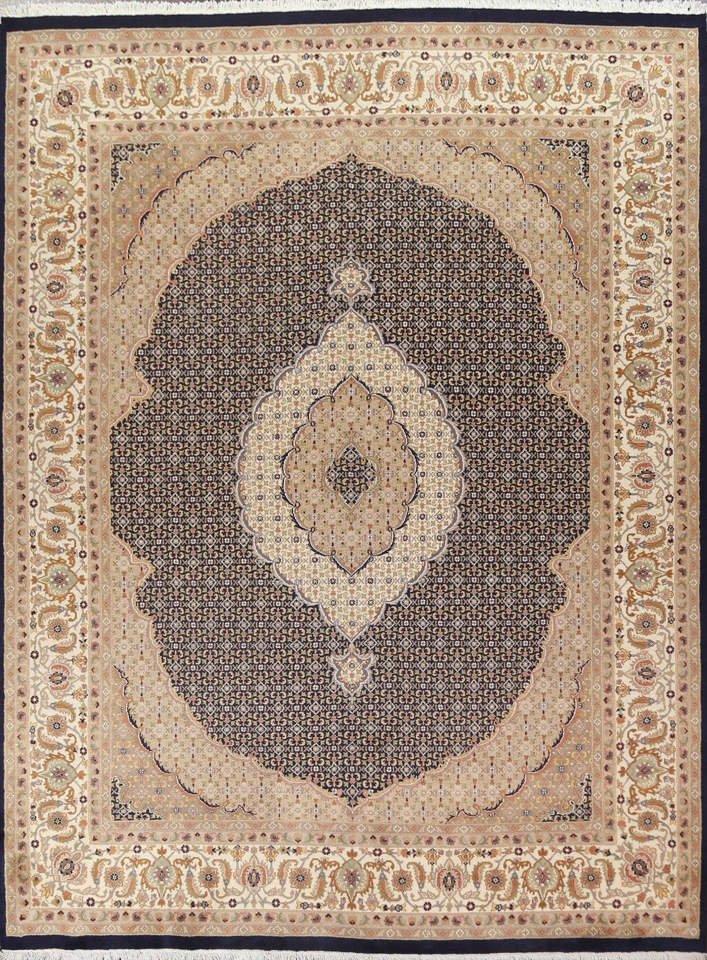 A Beautiful Genuine Persia ( Persia ) Tabriz-Mahi rug is Hand Knotted by skillful weavers in Persia ( Persia ) with Wool & Silk Material. This rug is in New, First Quality condition. dimensions are 10' 3'' X 8' 1'' in foot and 312 X 246 in centimeter. the primary color is Black.