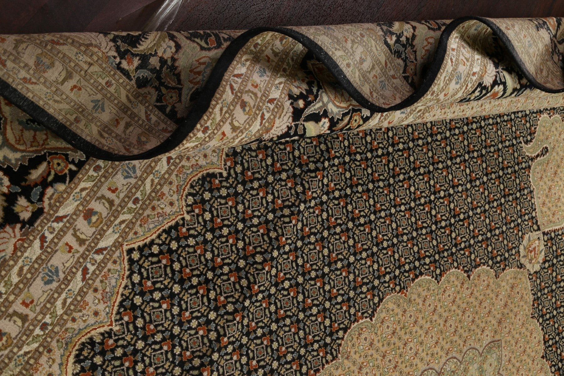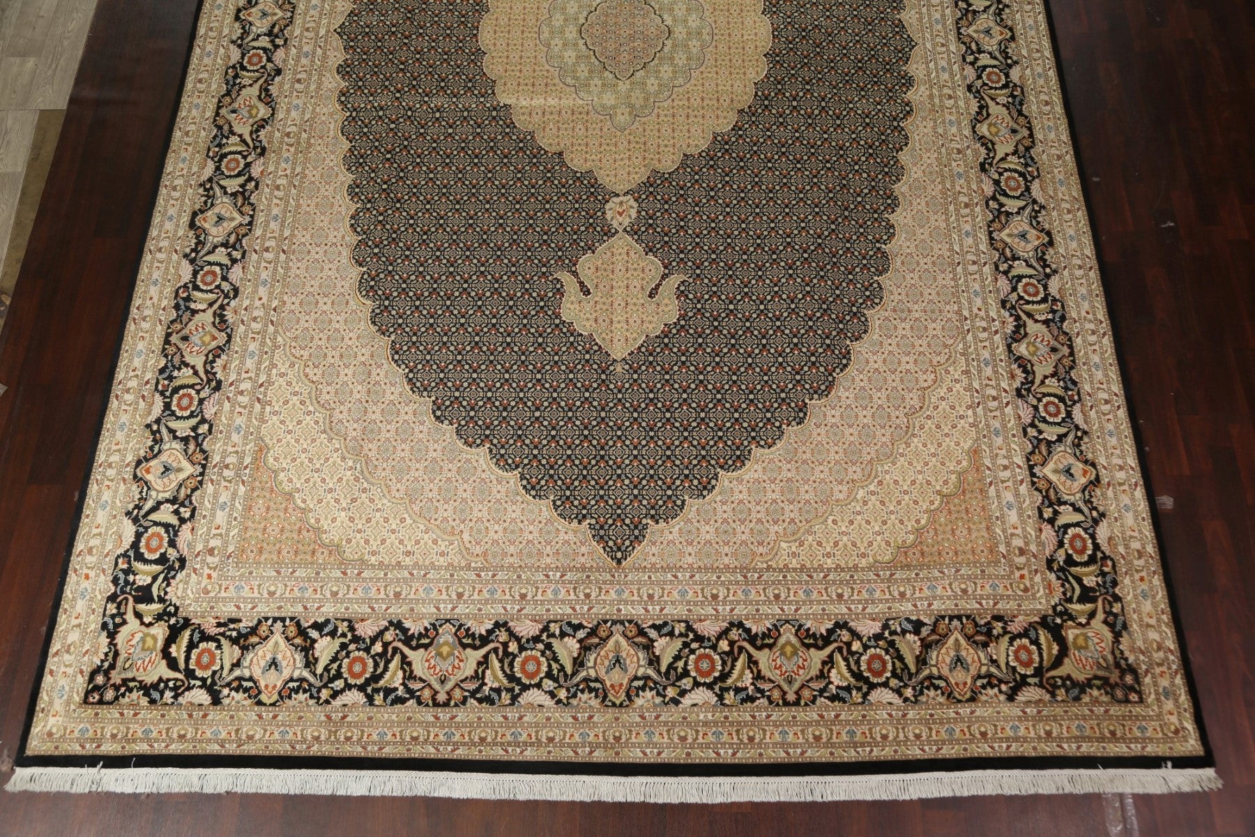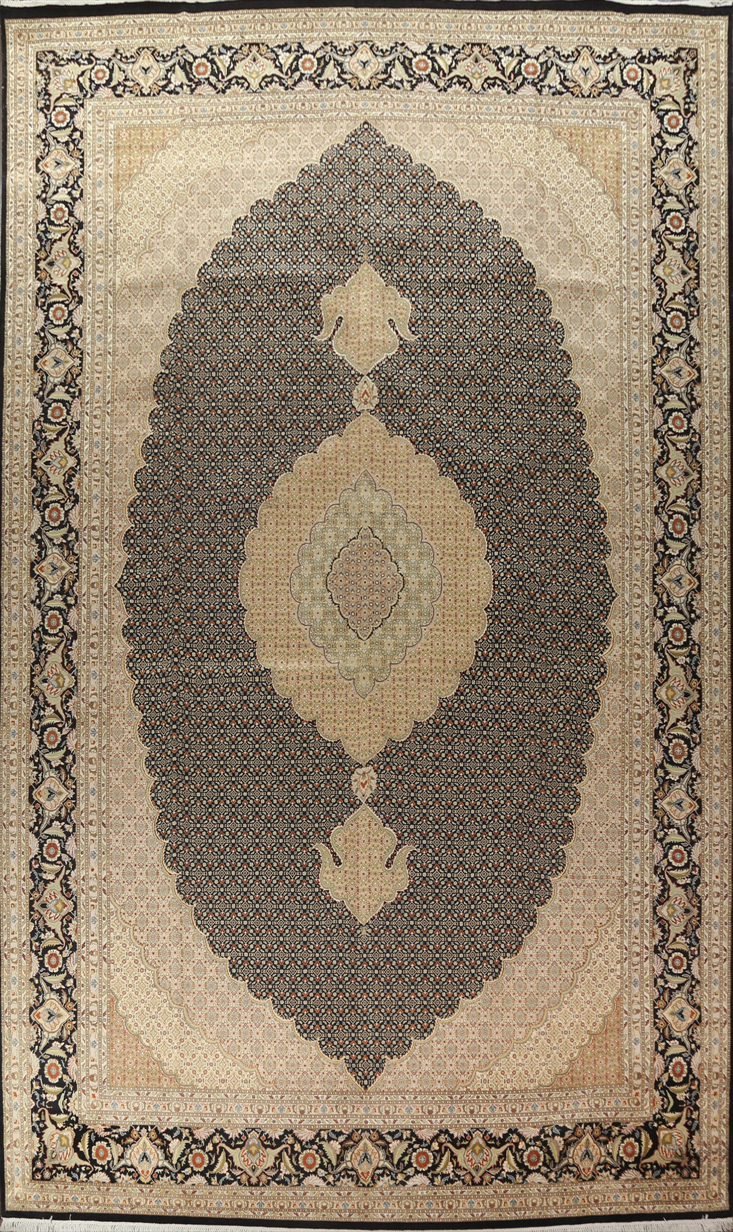 A Beautiful Genuine Persia ( Persia ) Tabriz-Mahi rug is Hand Knotted by skillful weavers in Persia ( Persia ) with 100% Wool Material. This rug is in New, First Quality condition. dimensions are 18' 10'' X 11' 9'' in foot and 574 X 358 in centimeter. the primary color is Black.