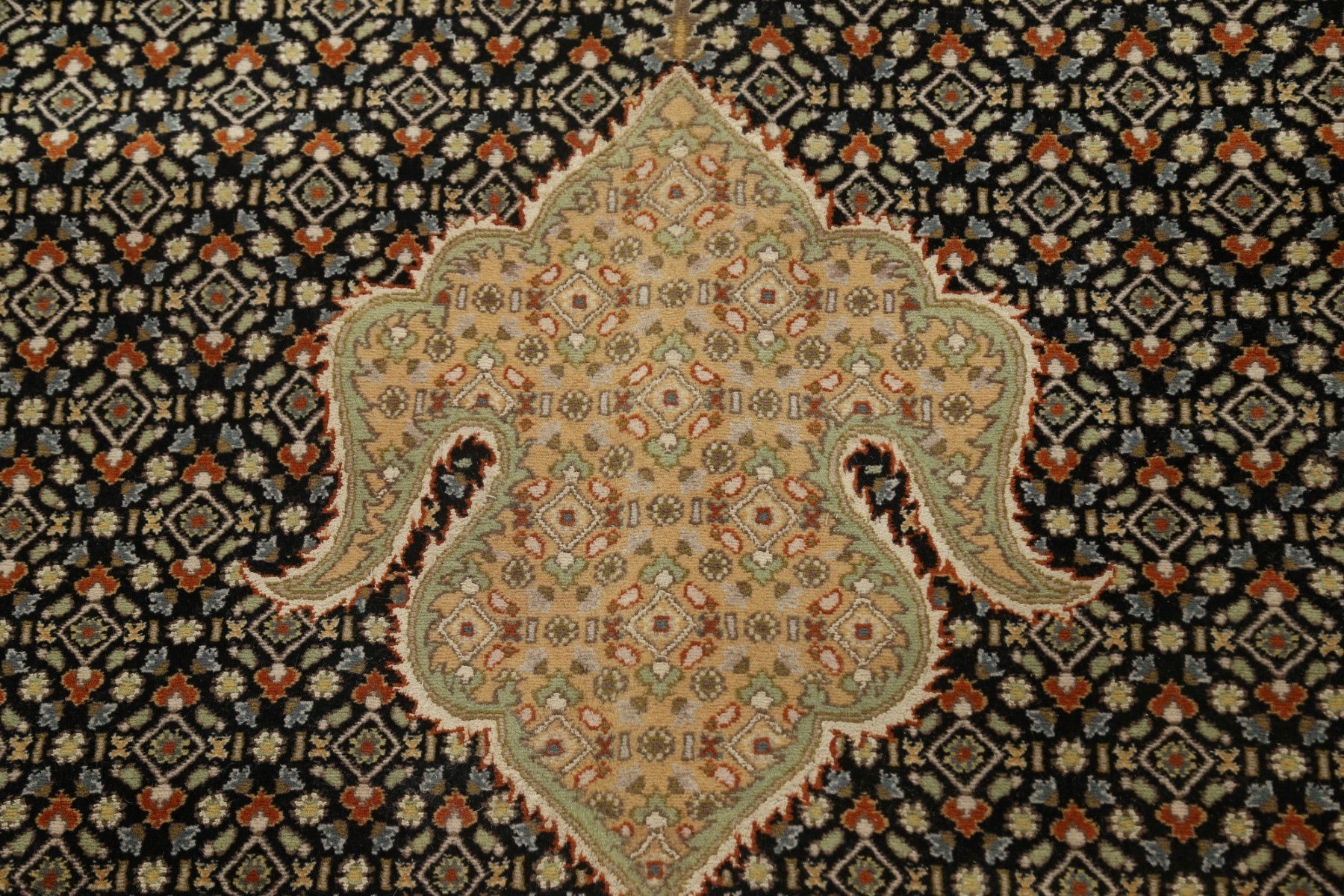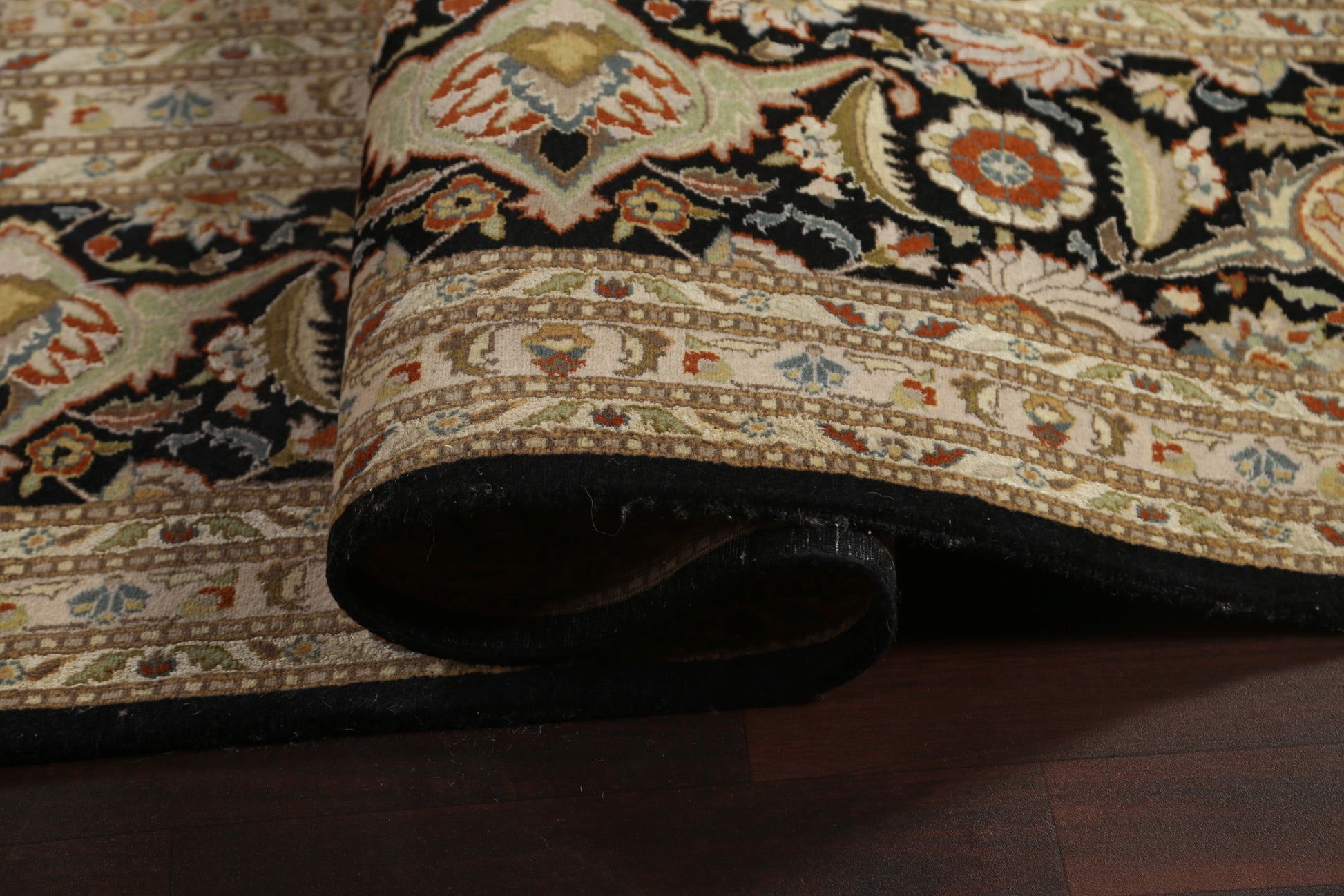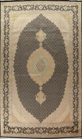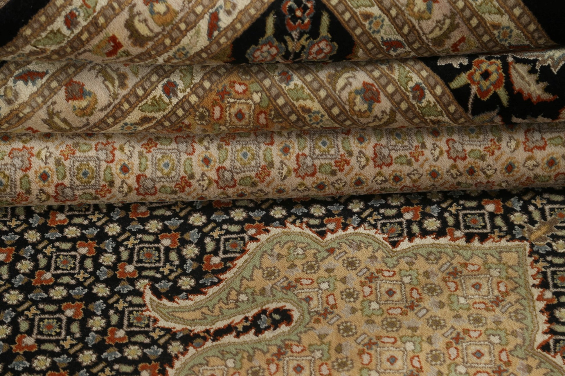 A Beautiful Genuine Persia ( Persia ) Tabriz-Mahi rug is Hand Knotted by skillful weavers in Persia ( Persia ) with 100% Wool Material. This rug is in New, First Quality condition. dimensions are 18' 10'' X 11' 9'' in foot and 574 X 358 in centimeter. the primary color is Black.