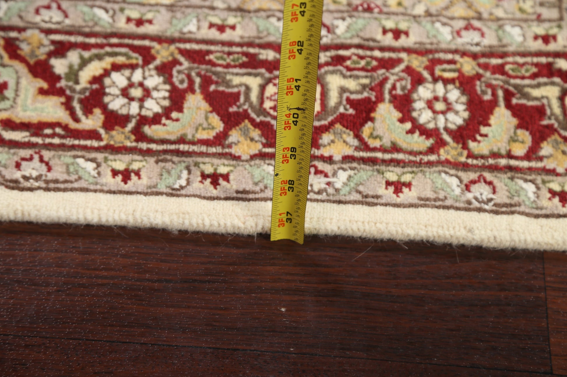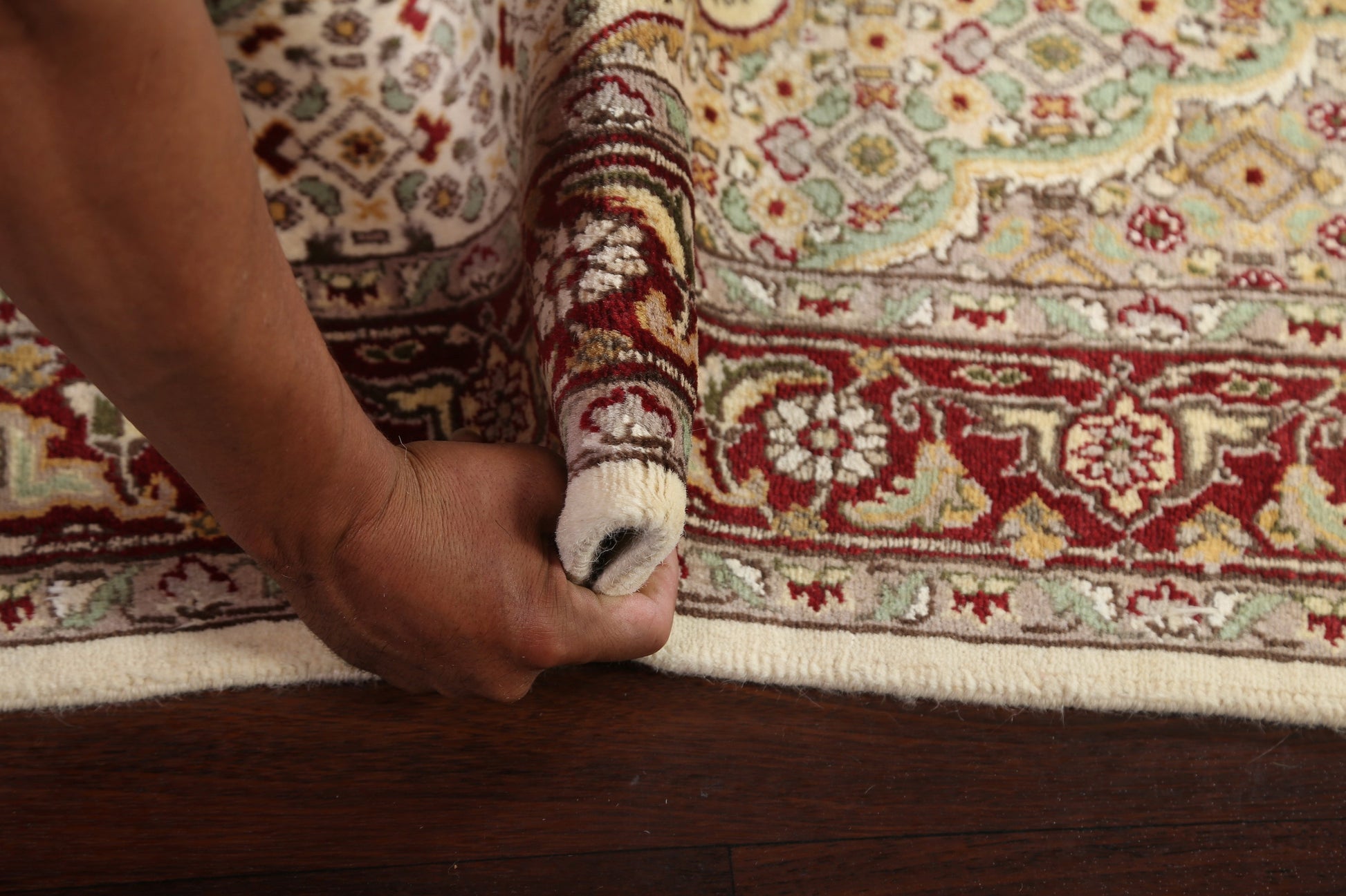 A Beautiful Genuine Pakistan Tabriz-Mahi rug is Hand Knotted by skillful weavers in Pakistan with 100% Wool Material. This rug is in New, First Quality condition. dimensions are 6' 1'' X 3' 11'' in foot and 185 X 119 in centimeter. the primary color is Beige & Ivories.