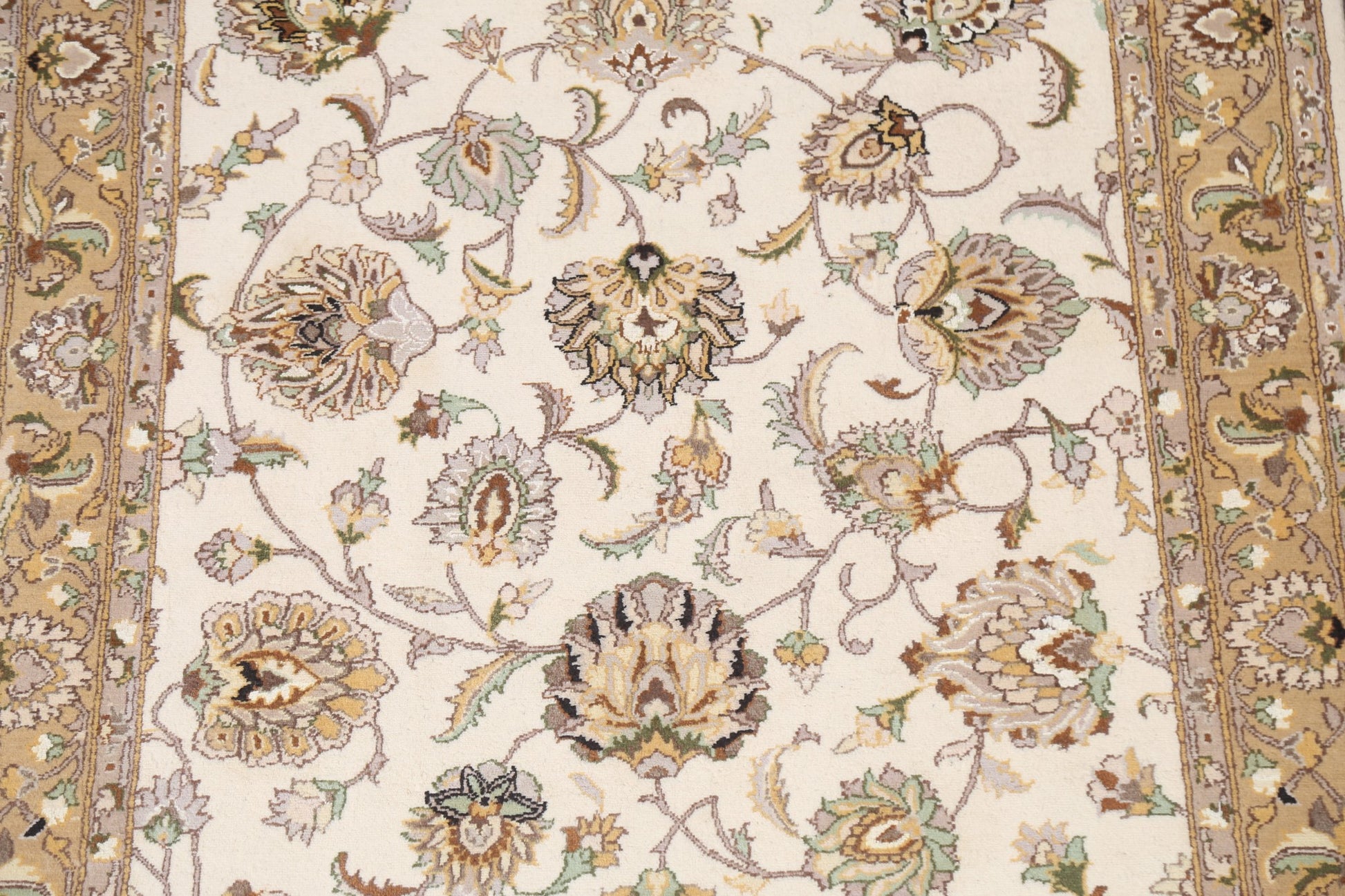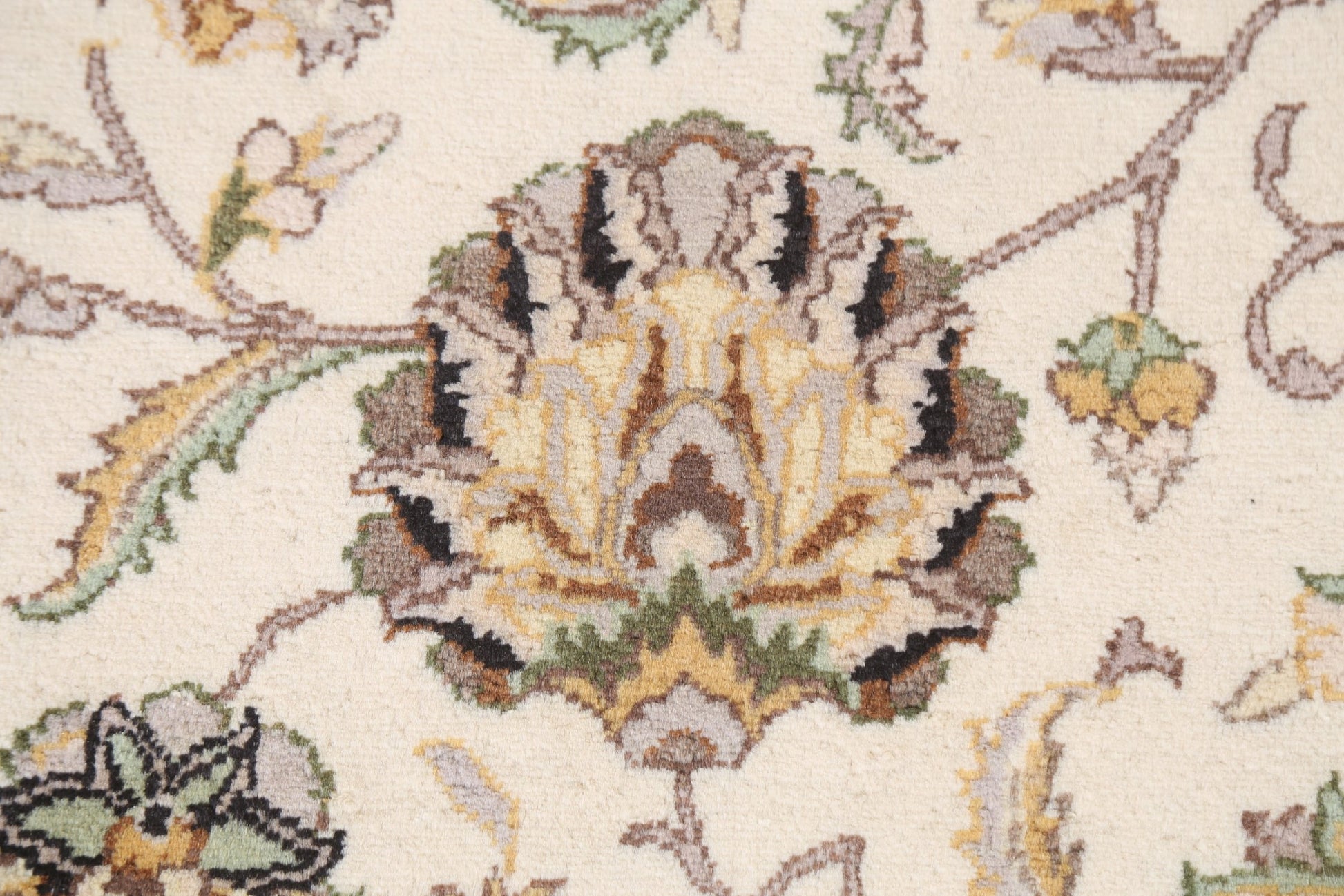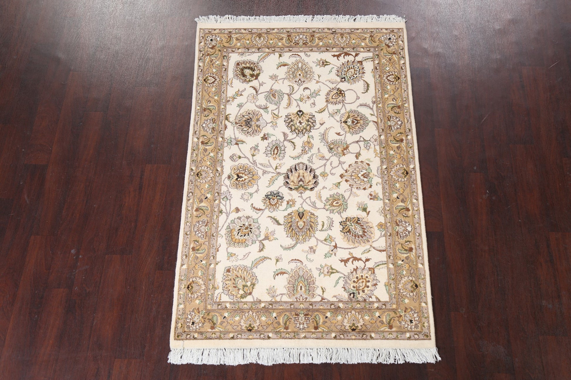 A Beautiful Genuine Pakistan Tabriz rug is Hand Knotted by skillful weavers in Pakistan with Wool & Silk Material. This rug is in New, First Quality condition. dimensions are 6' 2'' X 4' 0'' in foot and 188 X 122 in centimeter. the primary color is Beige & Ivories.