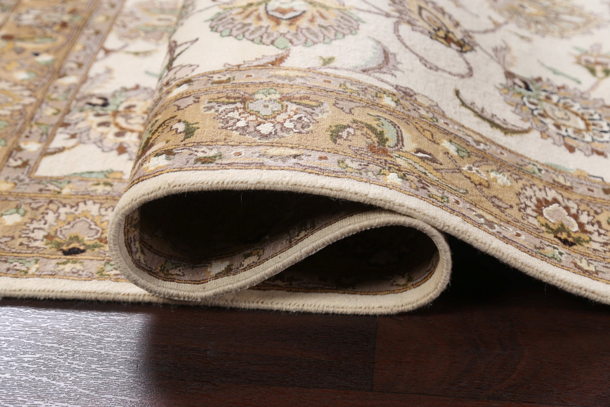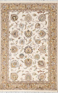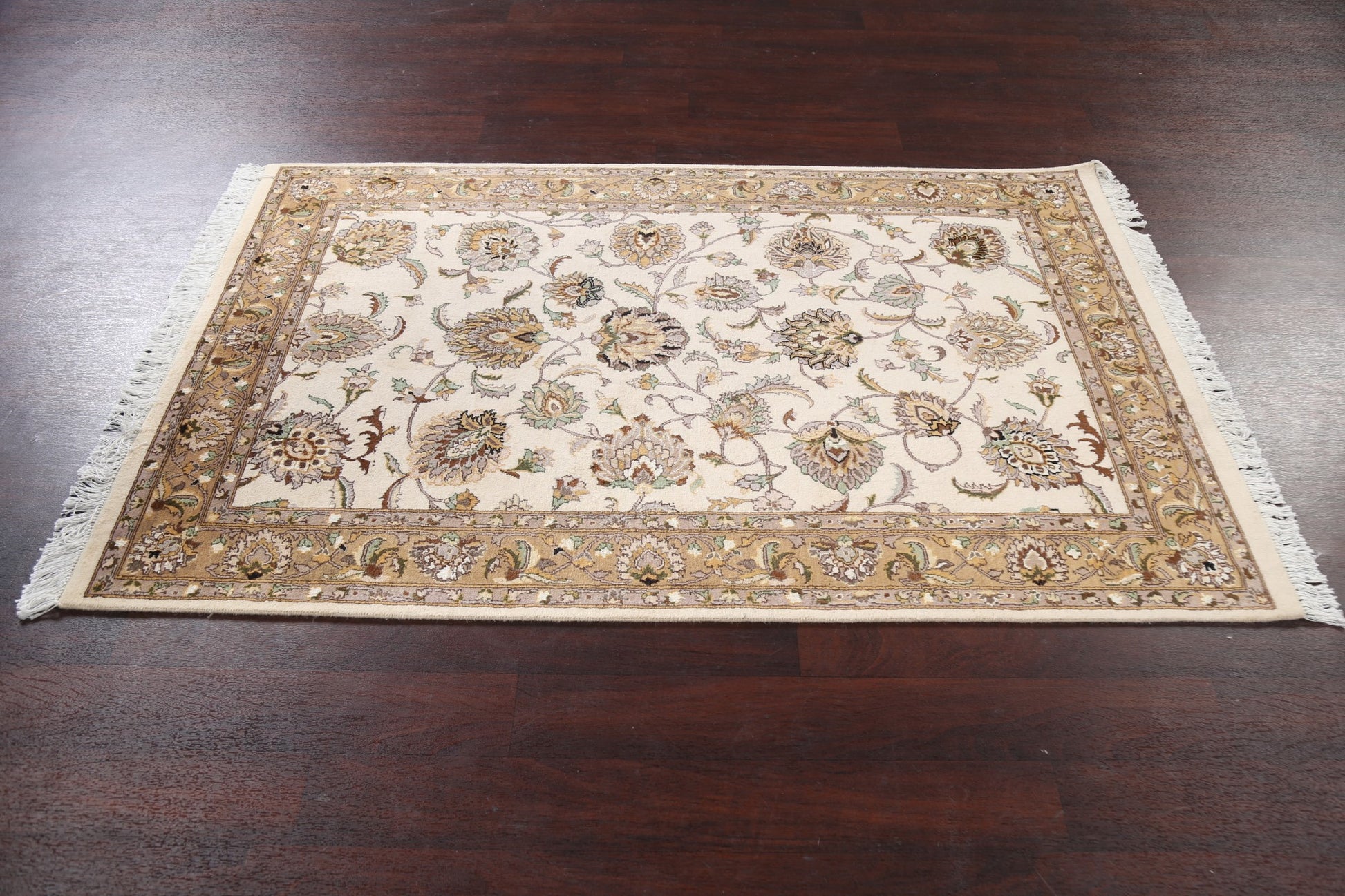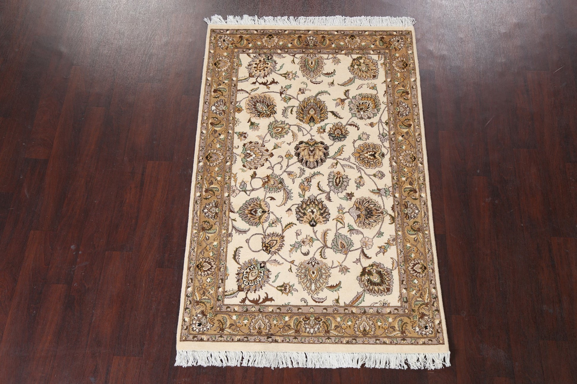 A Beautiful Genuine Pakistan Tabriz rug is Hand Knotted by skillful weavers in Pakistan with Wool & Silk Material. This rug is in New, First Quality condition. dimensions are 6' 2'' X 4' 0'' in foot and 188 X 122 in centimeter. the primary color is Beige & Ivories.