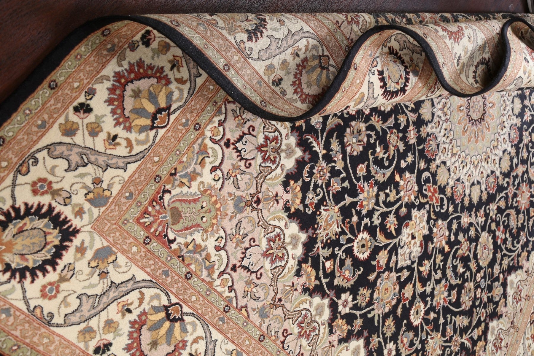 A Beautiful Genuine Pakistan Tabriz rug is Hand Knotted by skillful weavers in Pakistan with 100% Wool Material. This rug is in New, First Quality condition. dimensions are 10' 5'' X 8' 2'' in foot and 318 X 249 in centimeter. the primary color is Black.