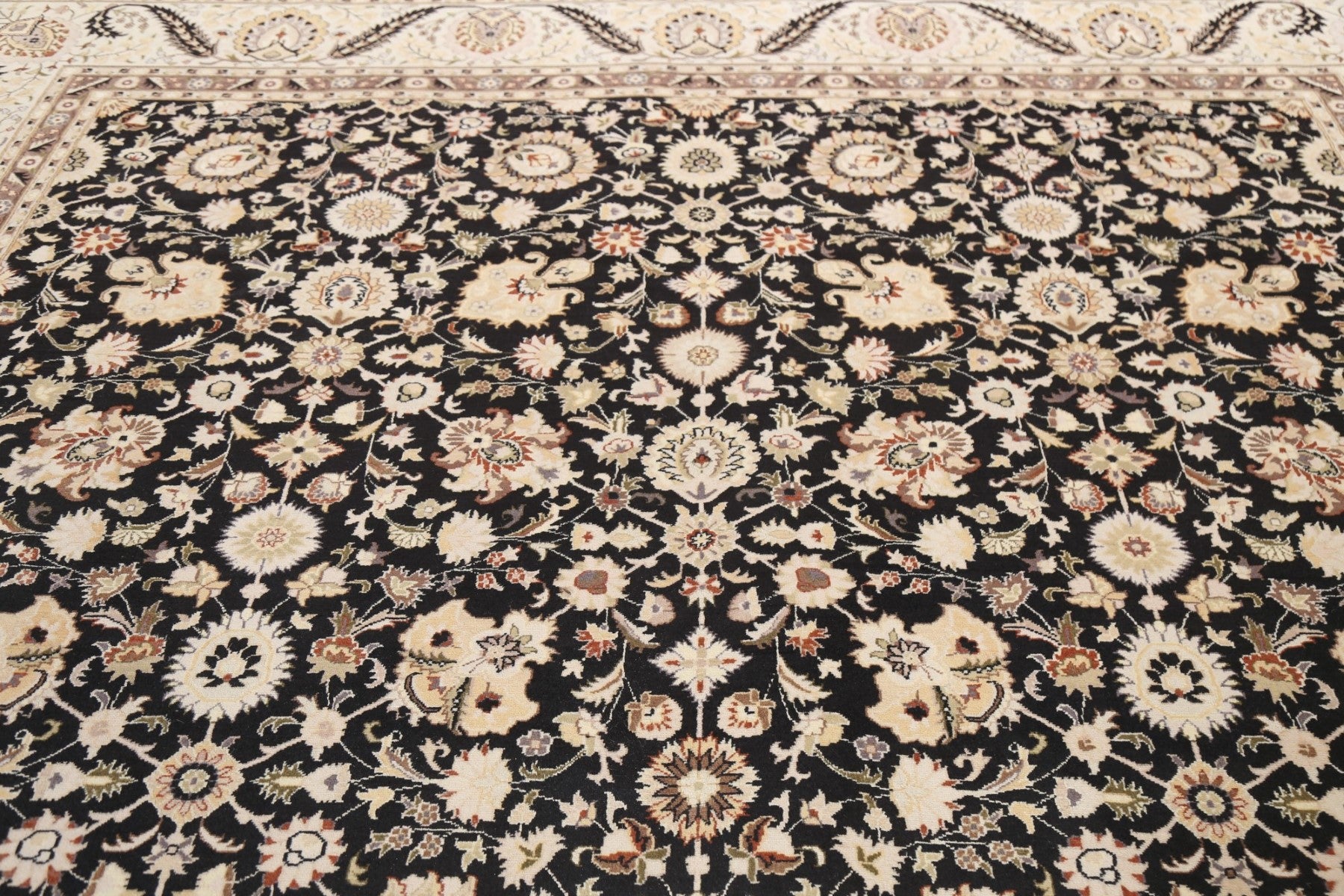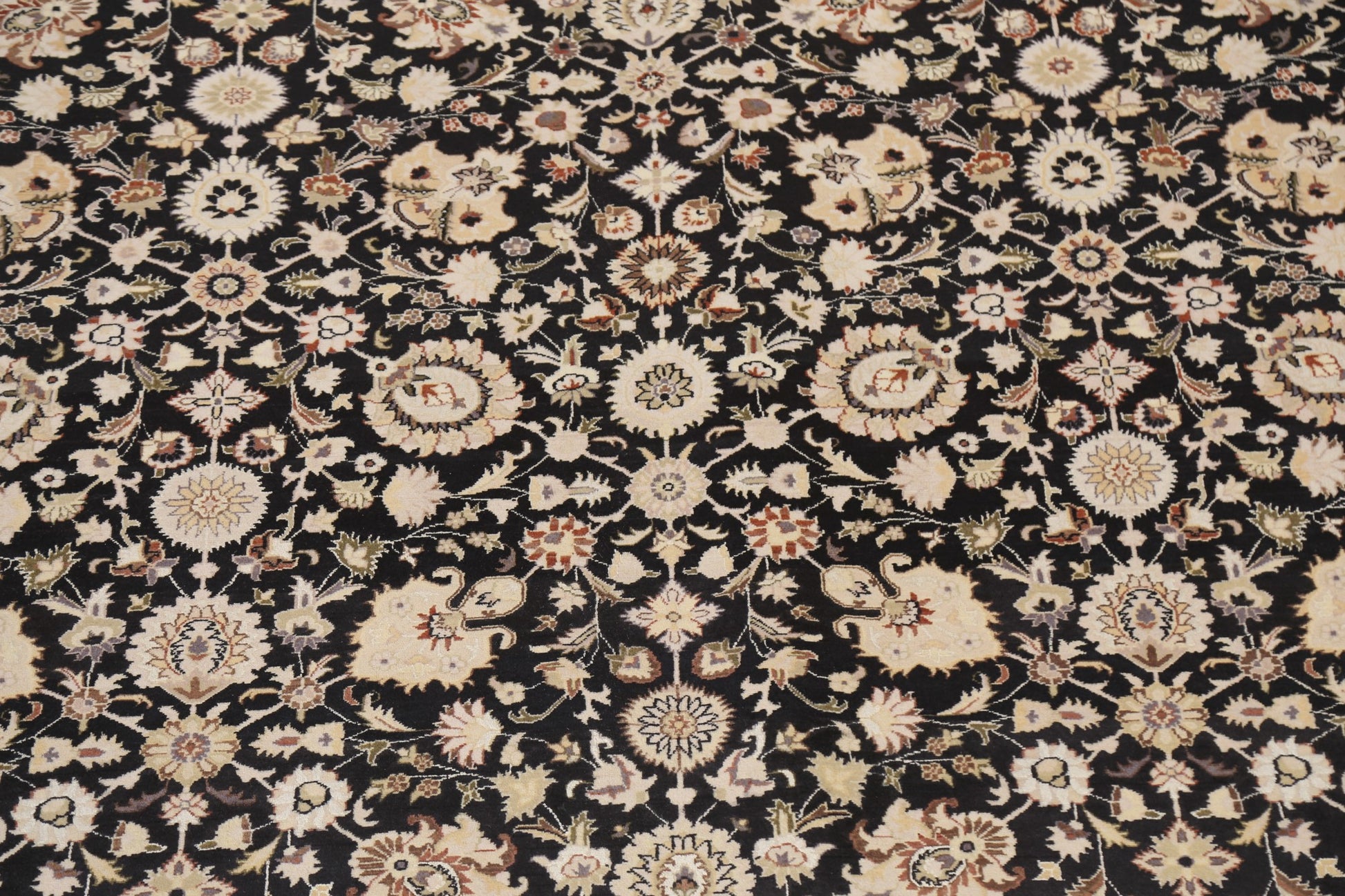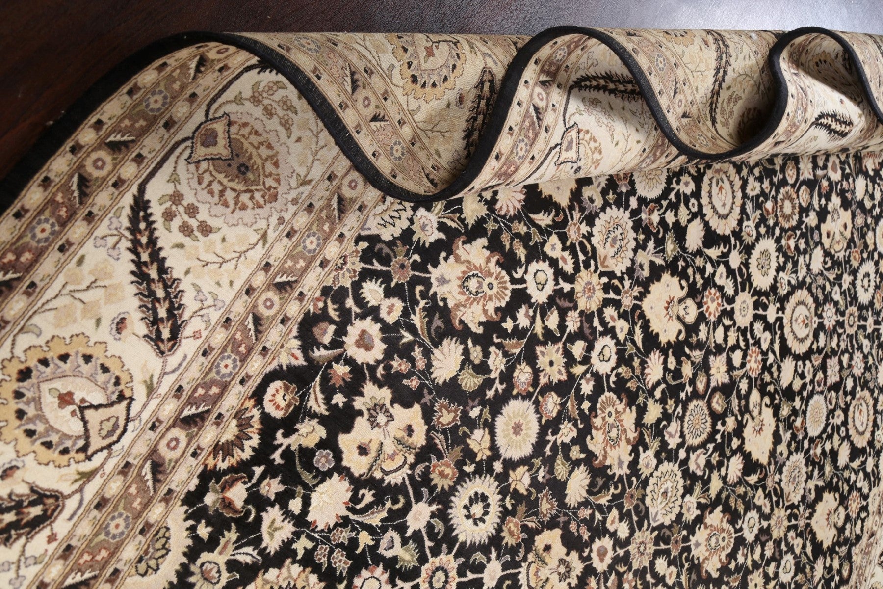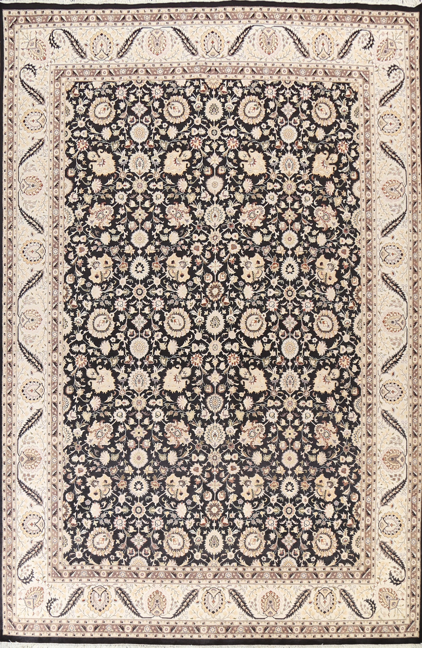 A Beautiful Genuine Pakistan Tabriz rug is Hand Knotted by skillful weavers in Pakistan with Wool & Silk Material. This rug is in New, First Quality condition. dimensions are 12' 4'' X 9' 1'' in foot and 376 X 277 in centimeter. the primary color is Black.