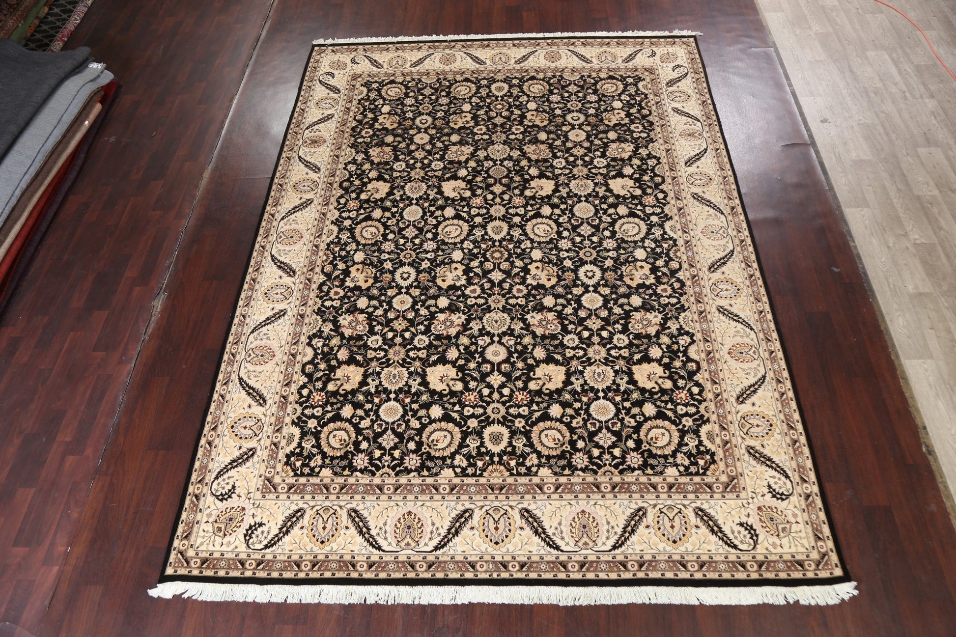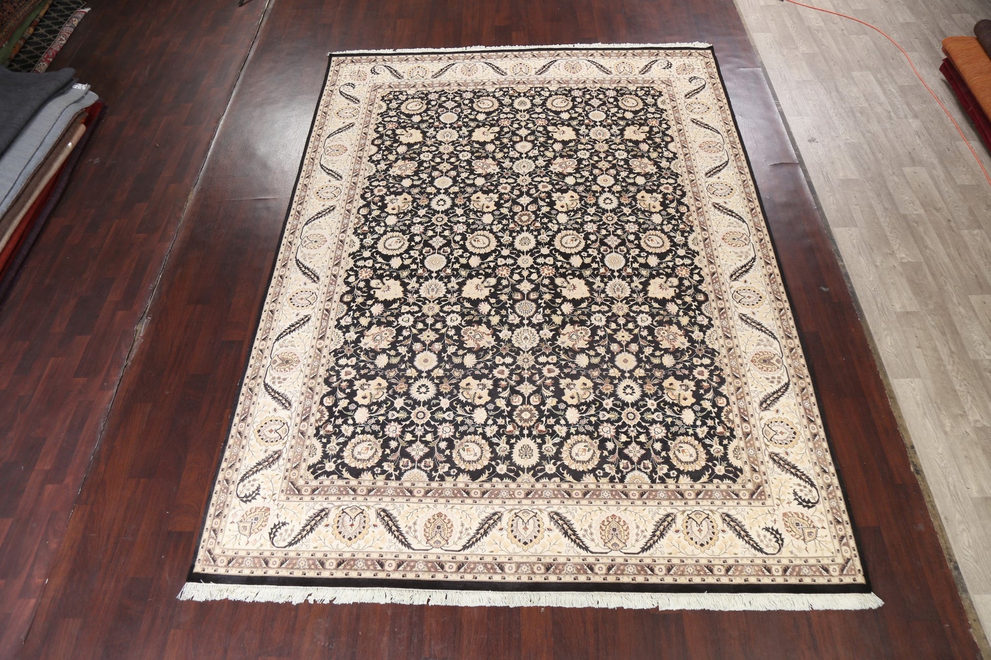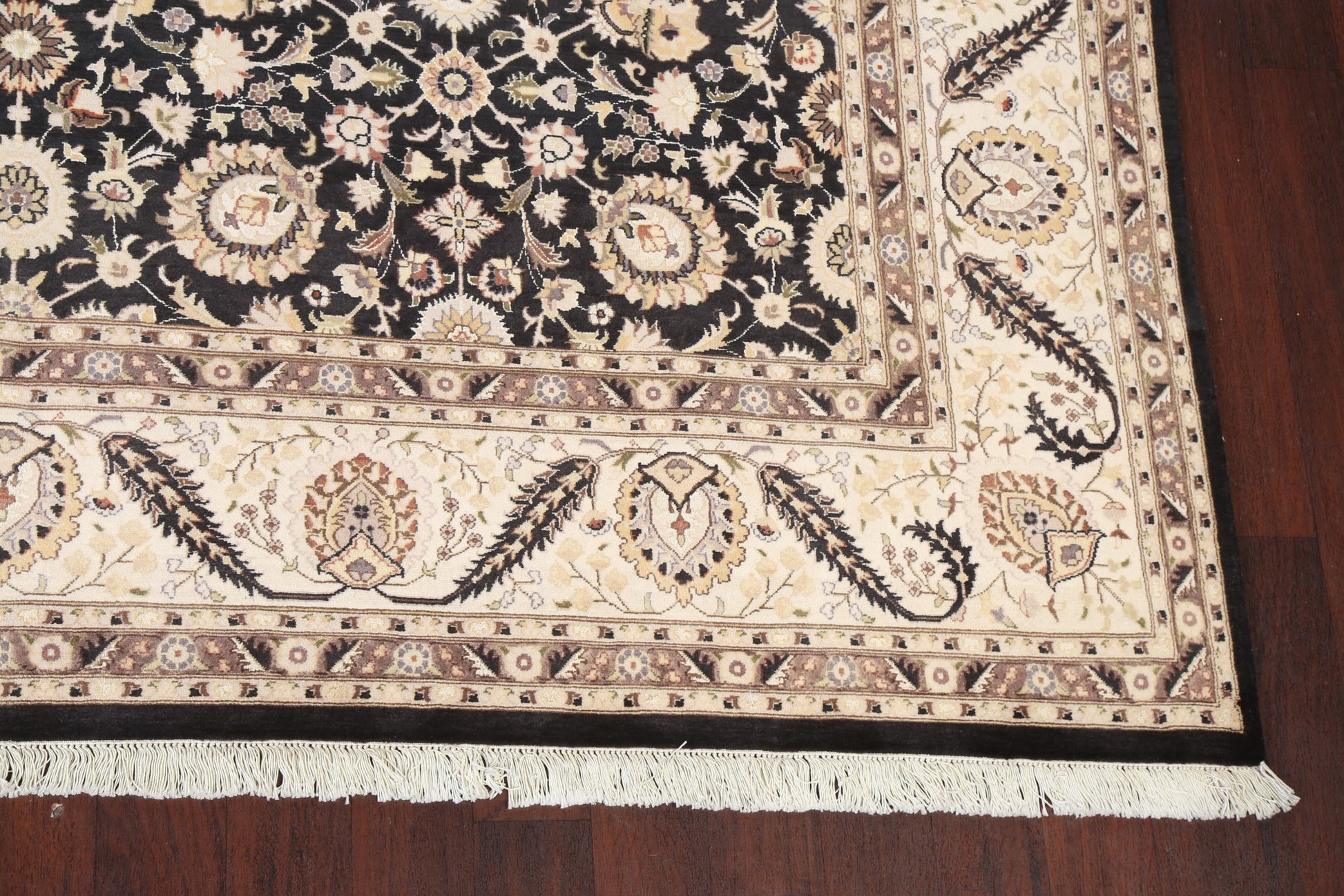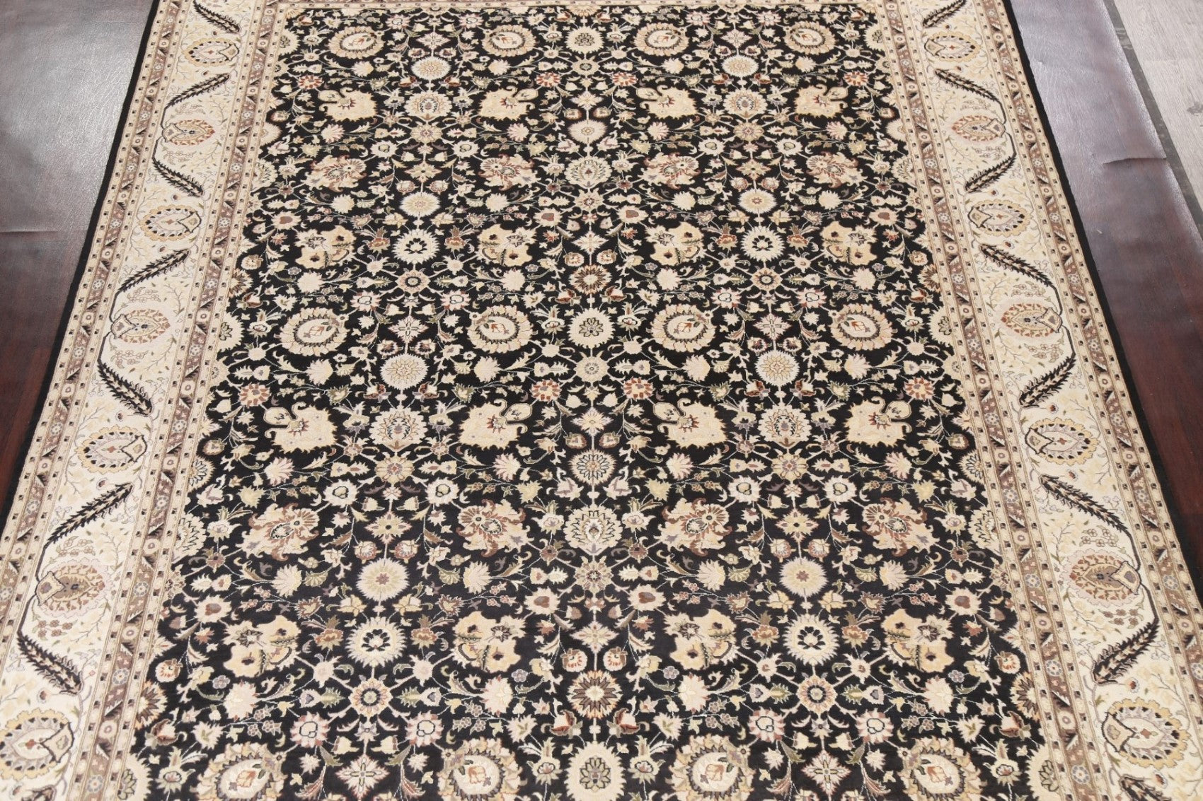 A Beautiful Genuine Pakistan Tabriz rug is Hand Knotted by skillful weavers in Pakistan with Wool & Silk Material. This rug is in New, First Quality condition. dimensions are 12' 4'' X 9' 1'' in foot and 376 X 277 in centimeter. the primary color is Black.