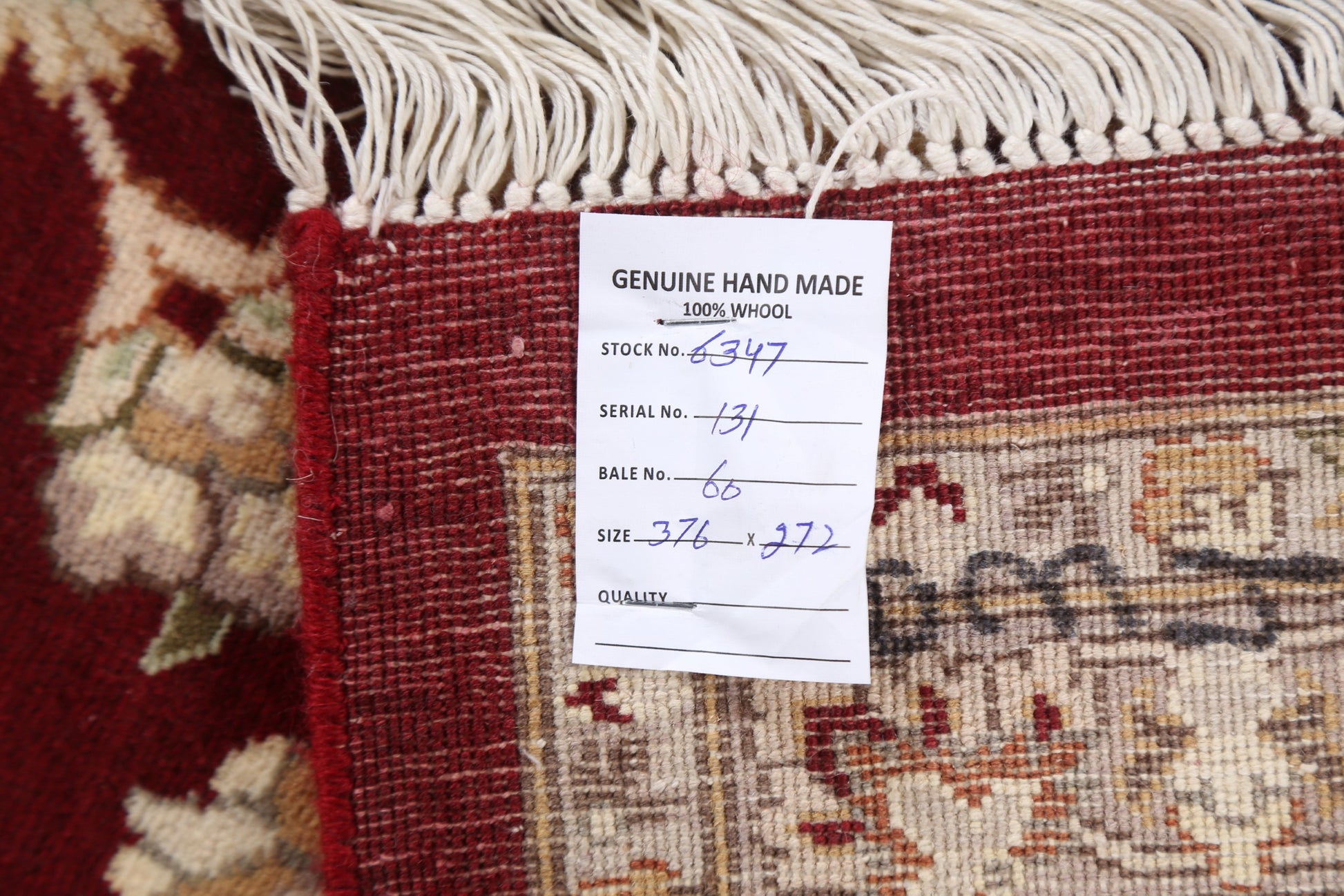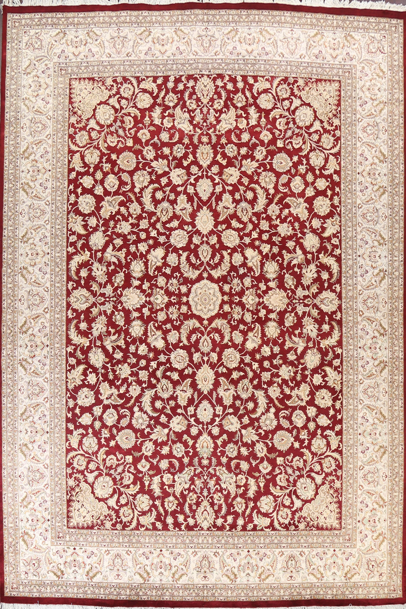 A Beautiful Genuine Pakistan Tabriz rug is Hand Knotted by skillful weavers in Pakistan with 100% Wool Material. This rug is in New, First Quality condition. dimensions are 12' 5'' X 9' 0'' in foot and 378 X 274 in centimeter. the primary color is Red.