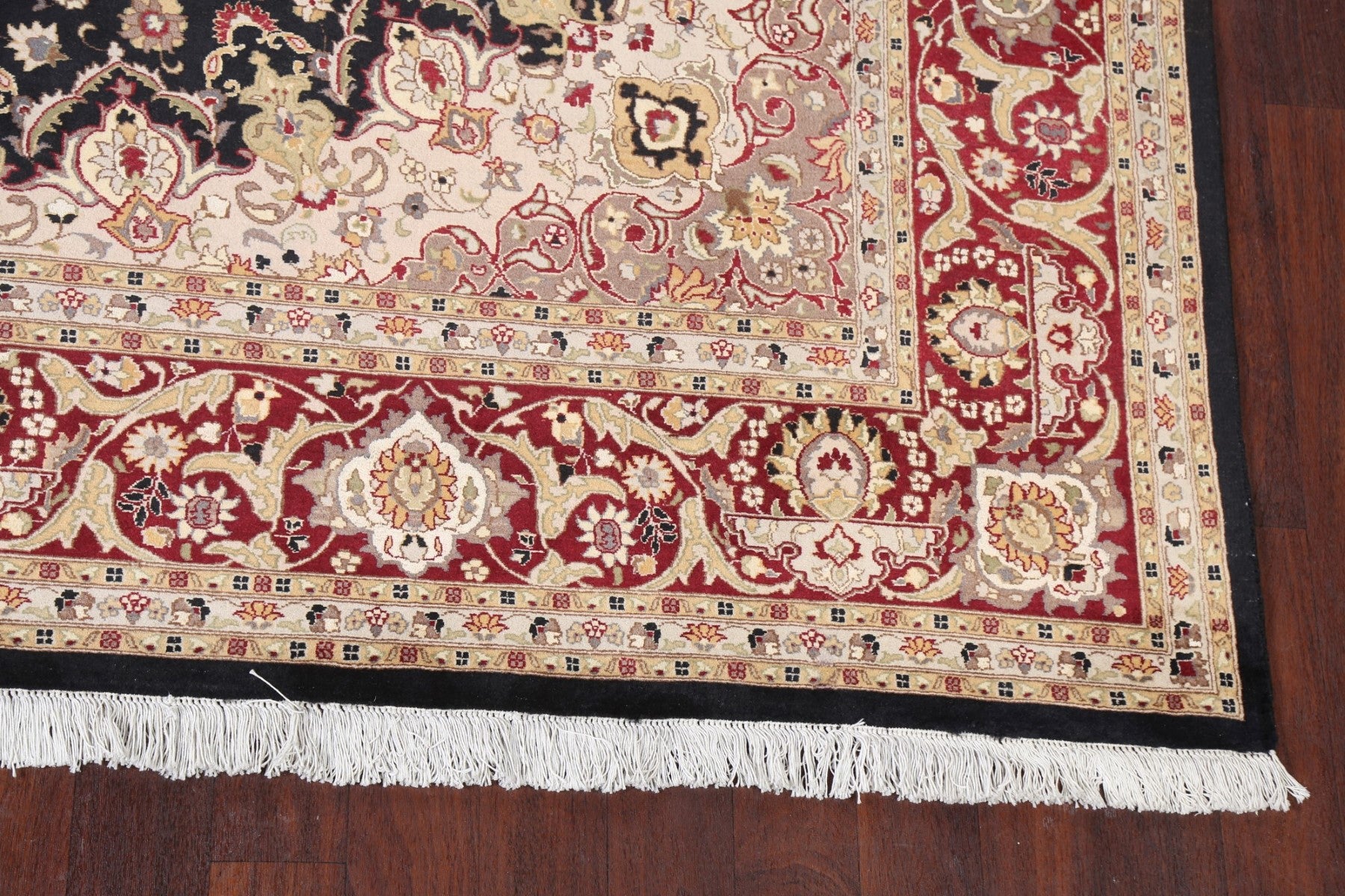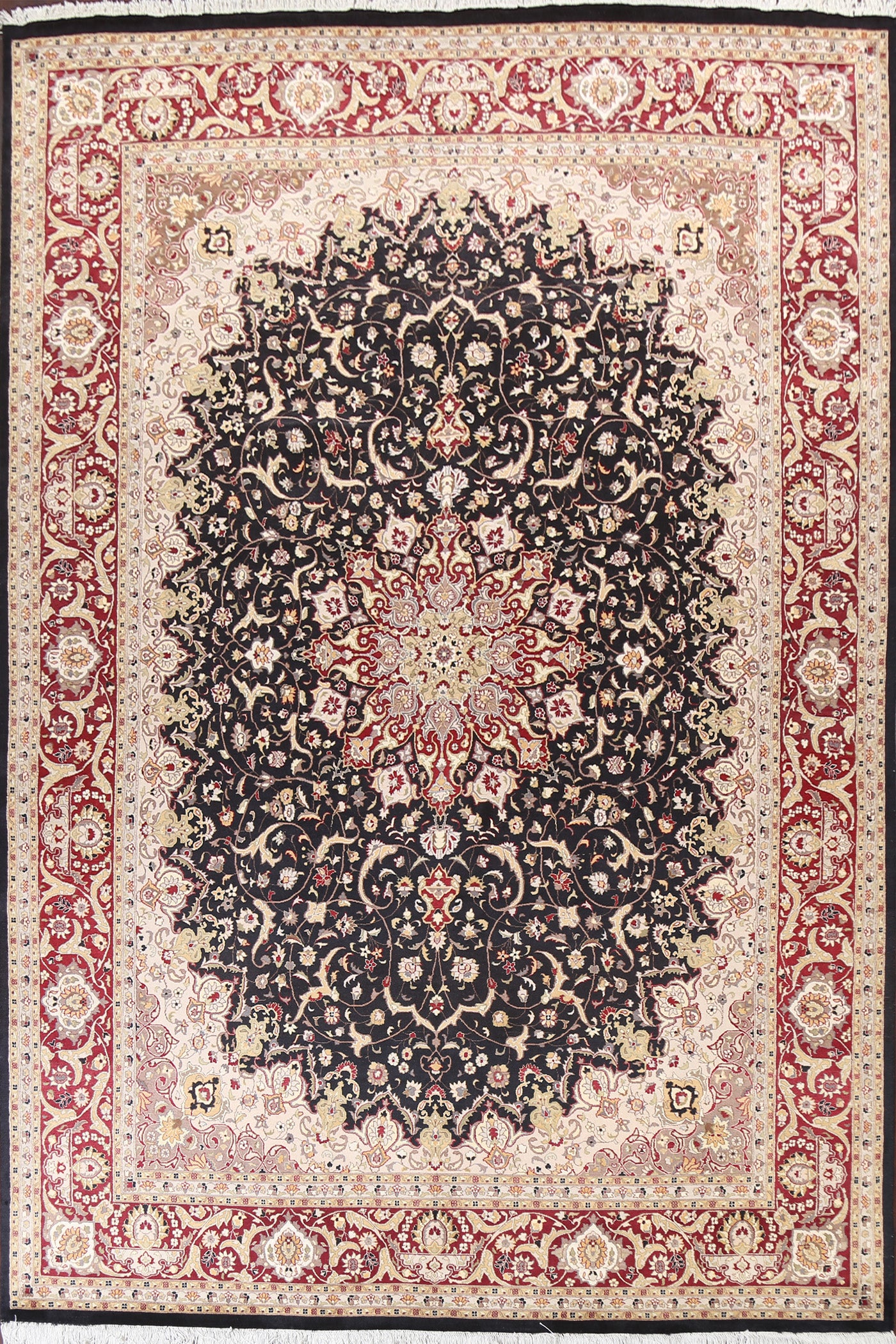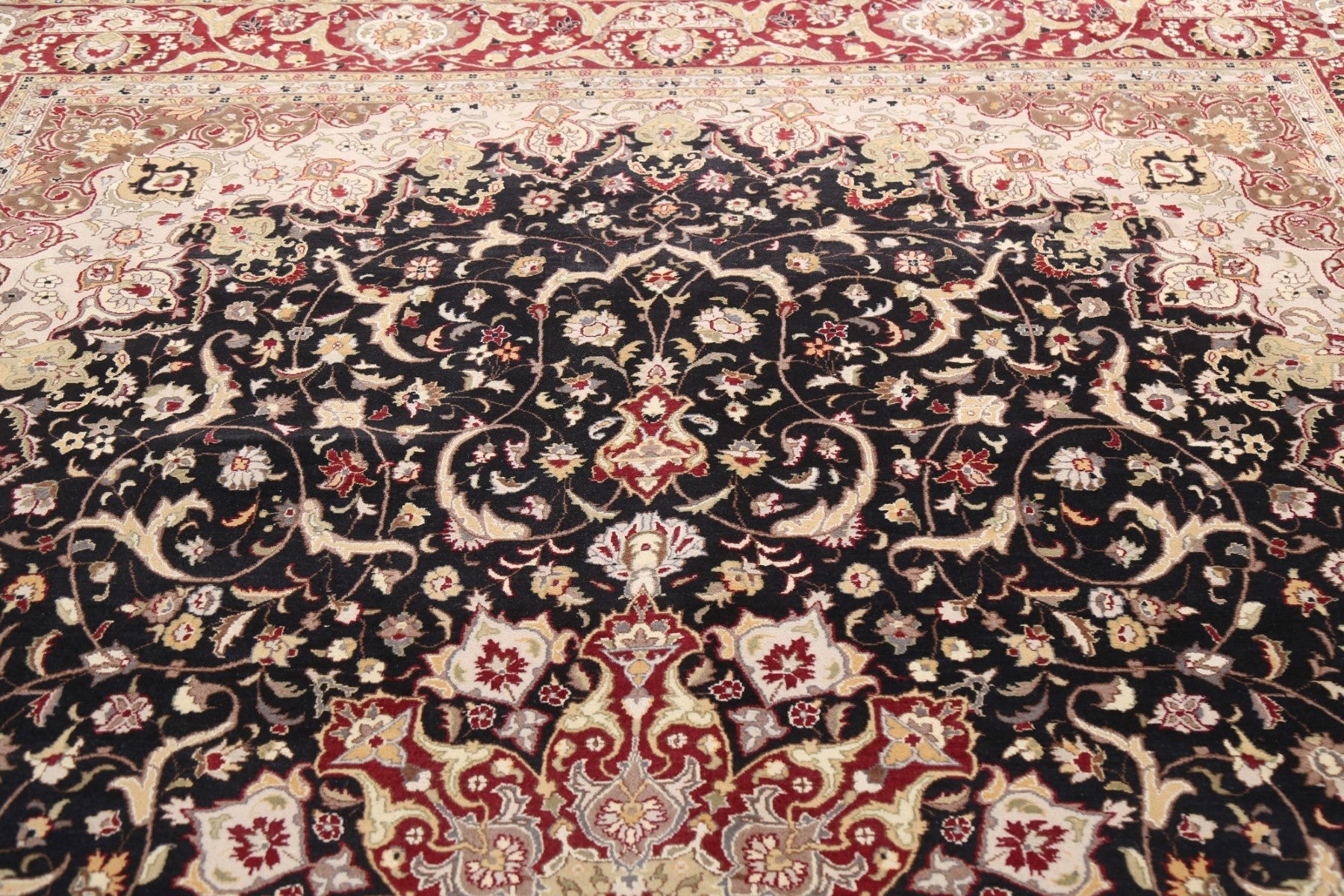 A Beautiful Genuine Pakistan Tabriz rug is Hand Knotted by skillful weavers in Pakistan with 100% Wool Material. This rug is in New, First Quality condition. dimensions are 12' 8'' X 8' 9'' in foot and 386 X 267 in centimeter. the primary color is Black.