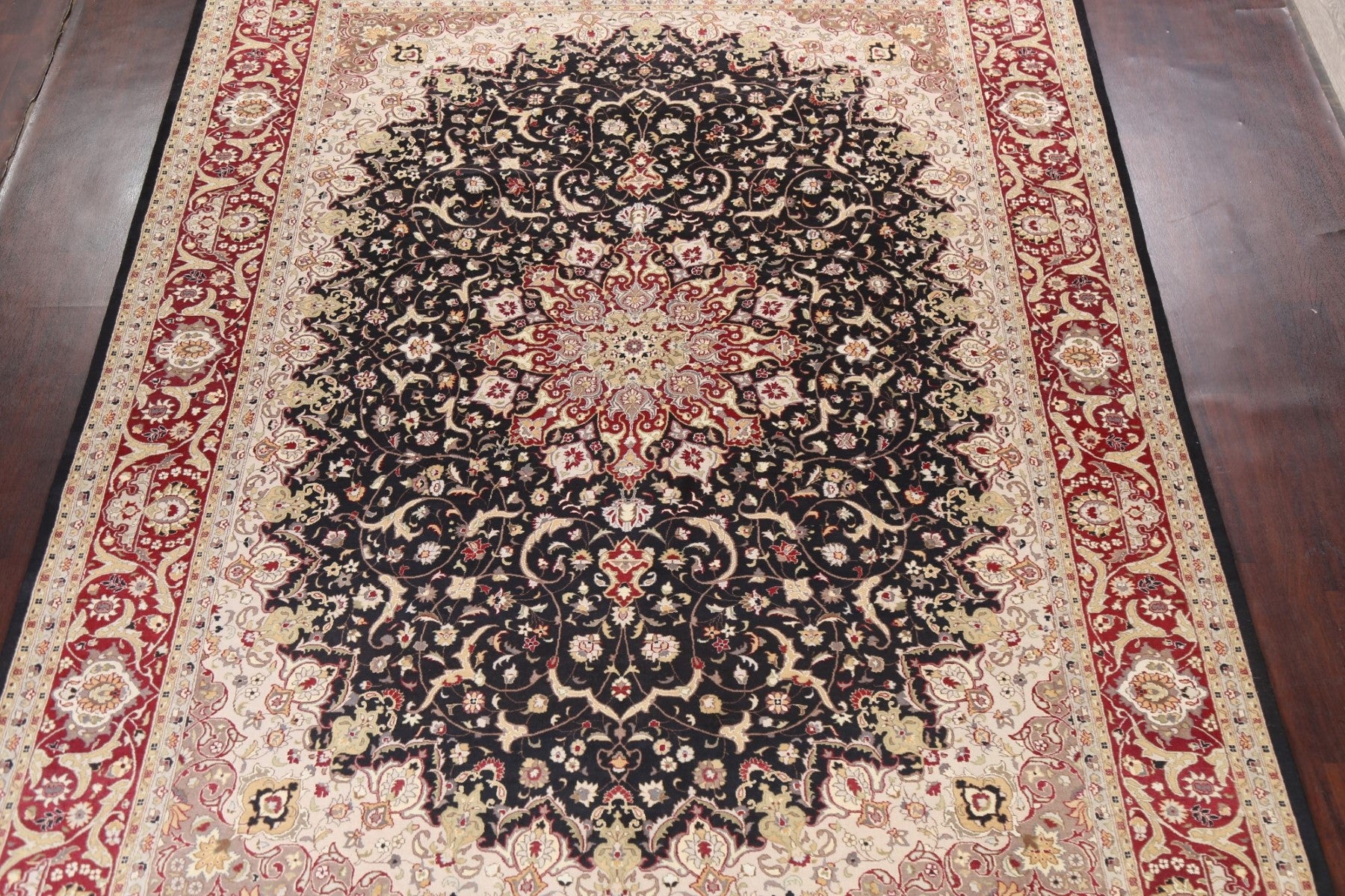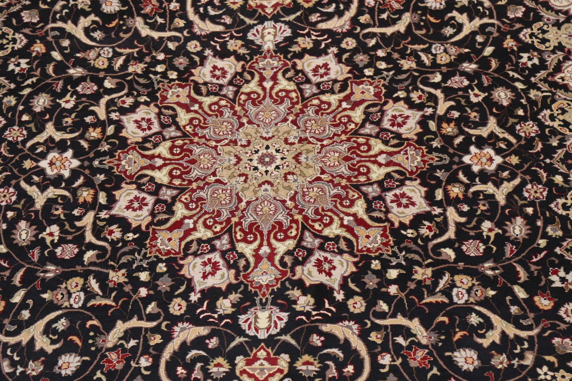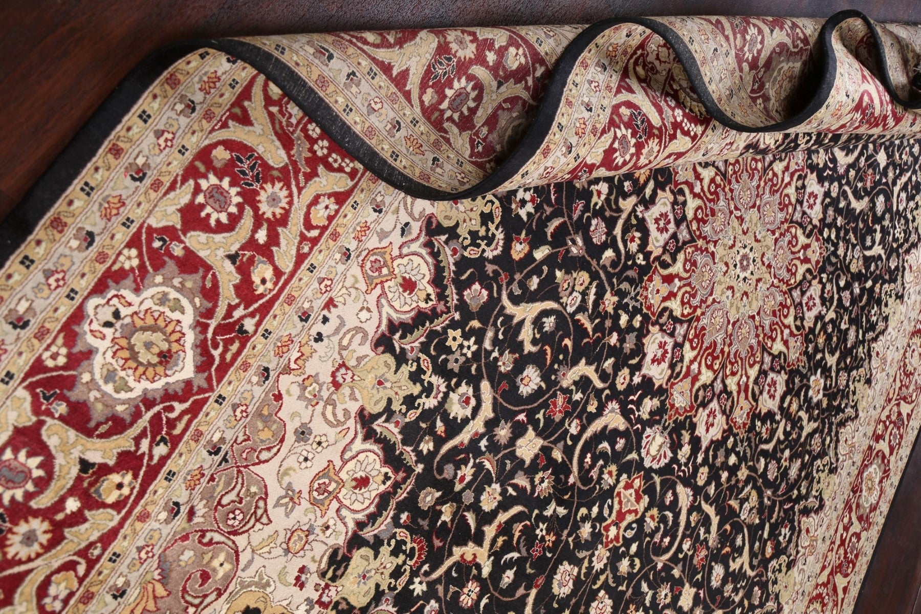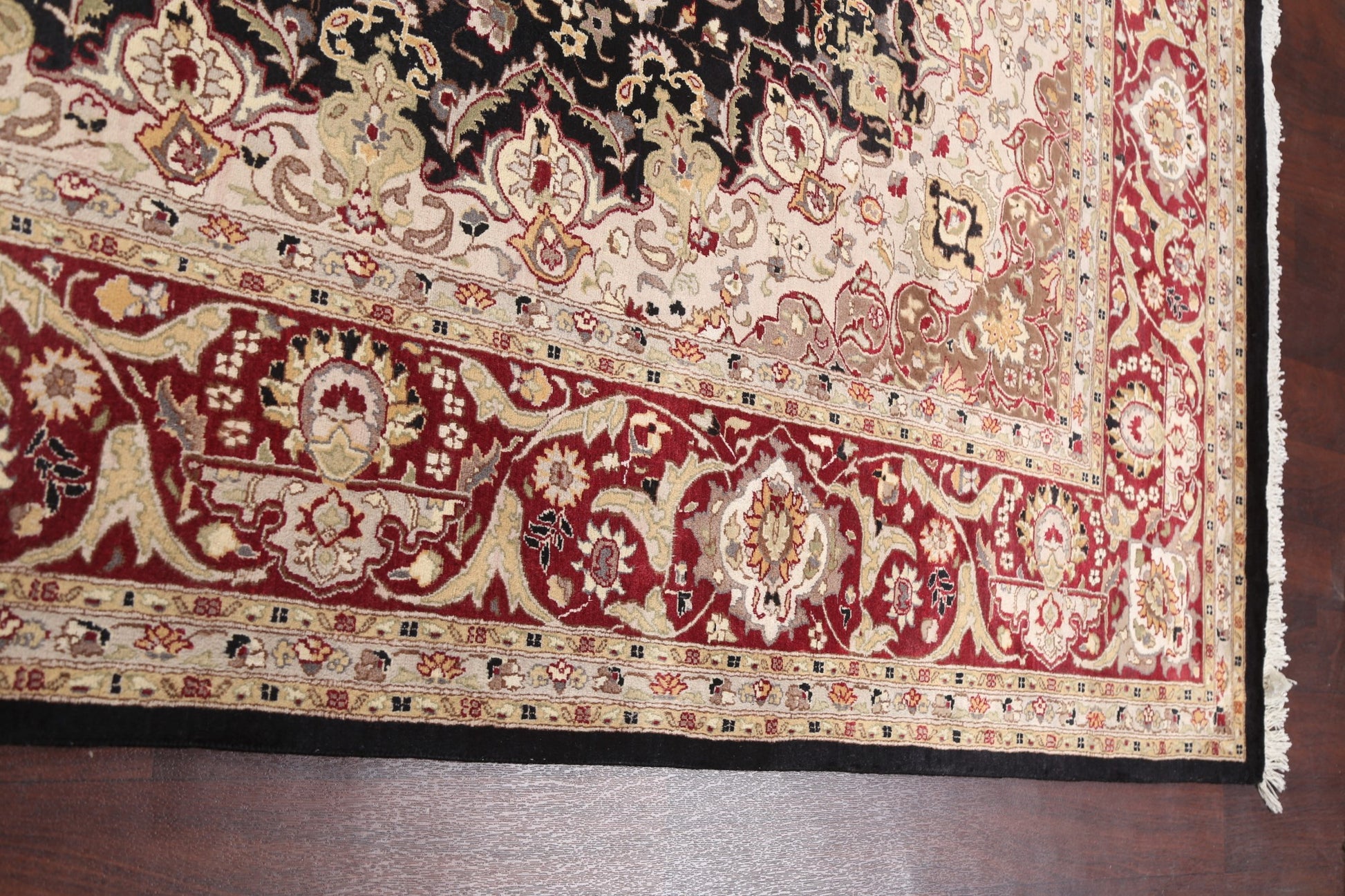 A Beautiful Genuine Pakistan Tabriz rug is Hand Knotted by skillful weavers in Pakistan with 100% Wool Material. This rug is in New, First Quality condition. dimensions are 12' 8'' X 8' 9'' in foot and 386 X 267 in centimeter. the primary color is Black.