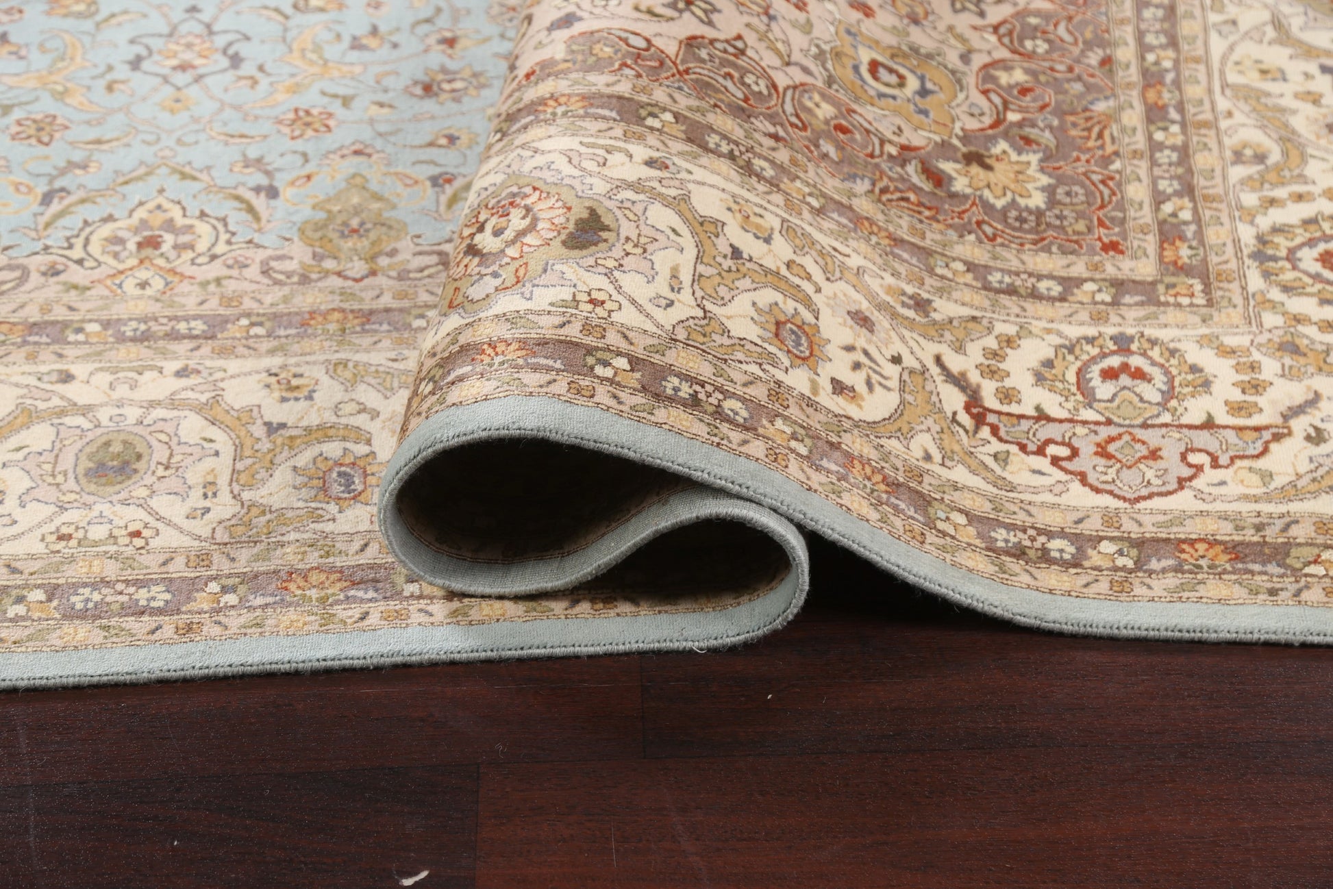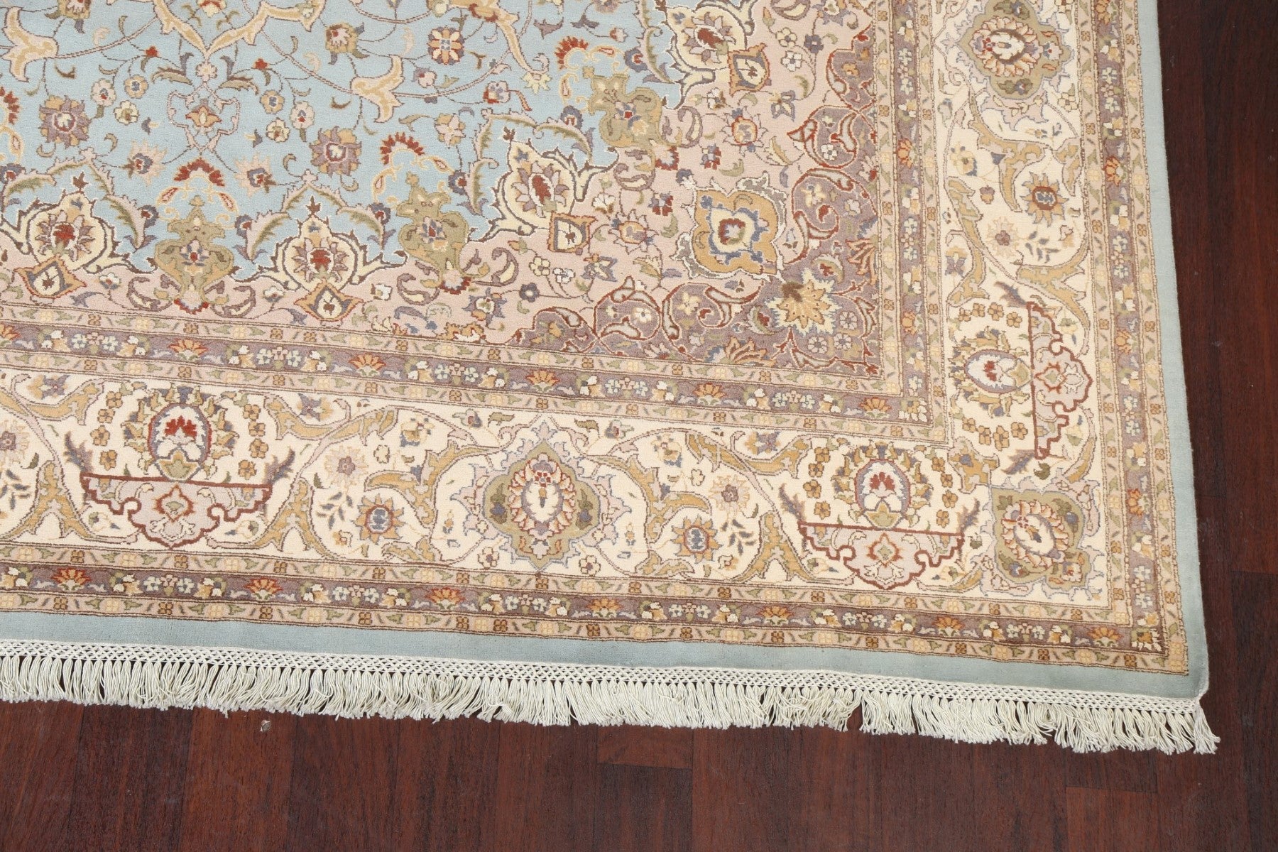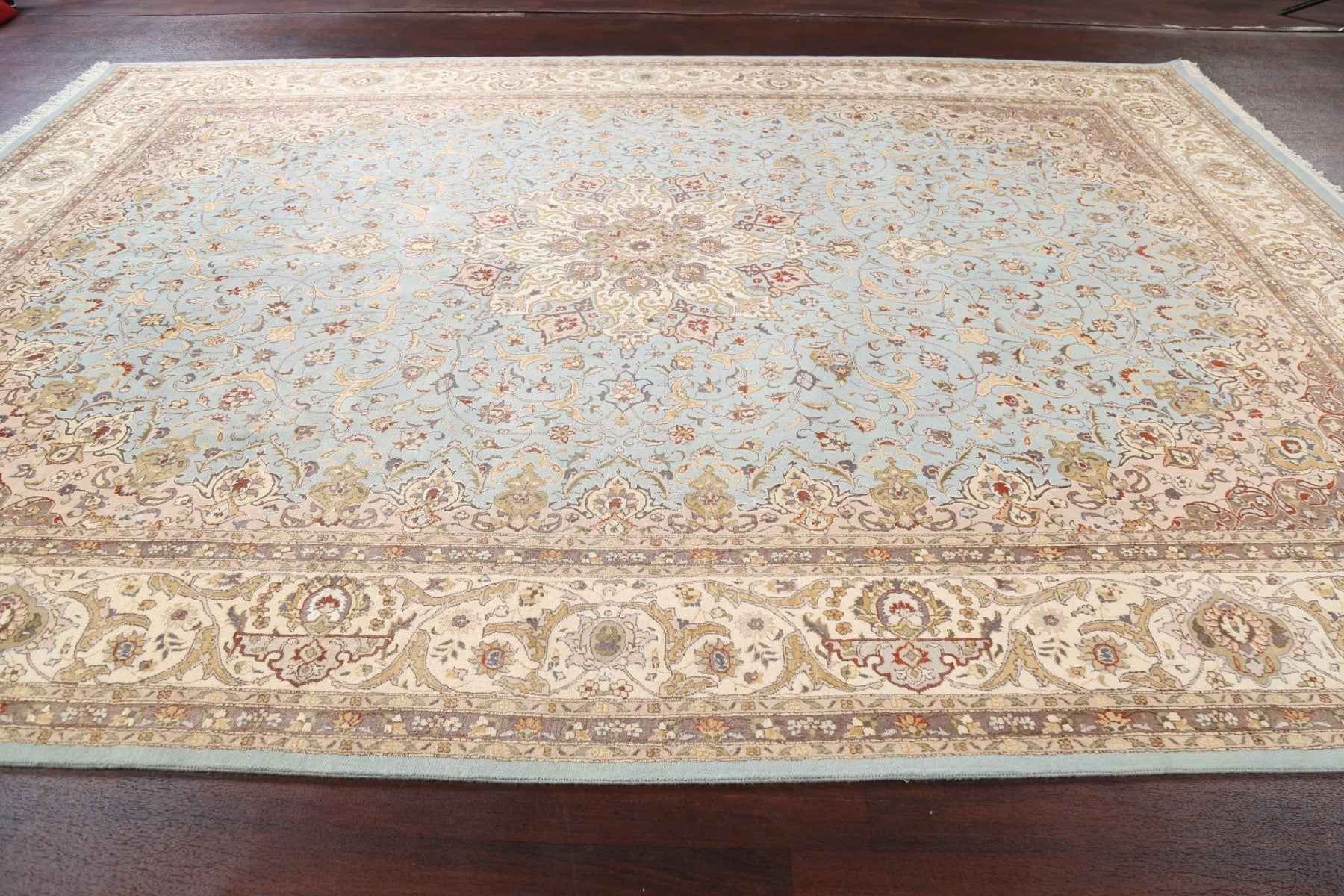 A Beautiful Genuine Pakistan Tabriz rug is Hand Knotted by skillful weavers in Pakistan with 100% Wool Material. This rug is in New, First Quality condition. dimensions are 12' 8'' X 9' 0'' in foot and 386 X 274 in centimeter. the primary color is Navy Blue & Blues.