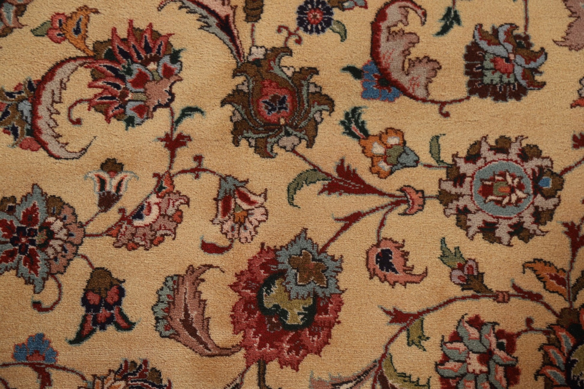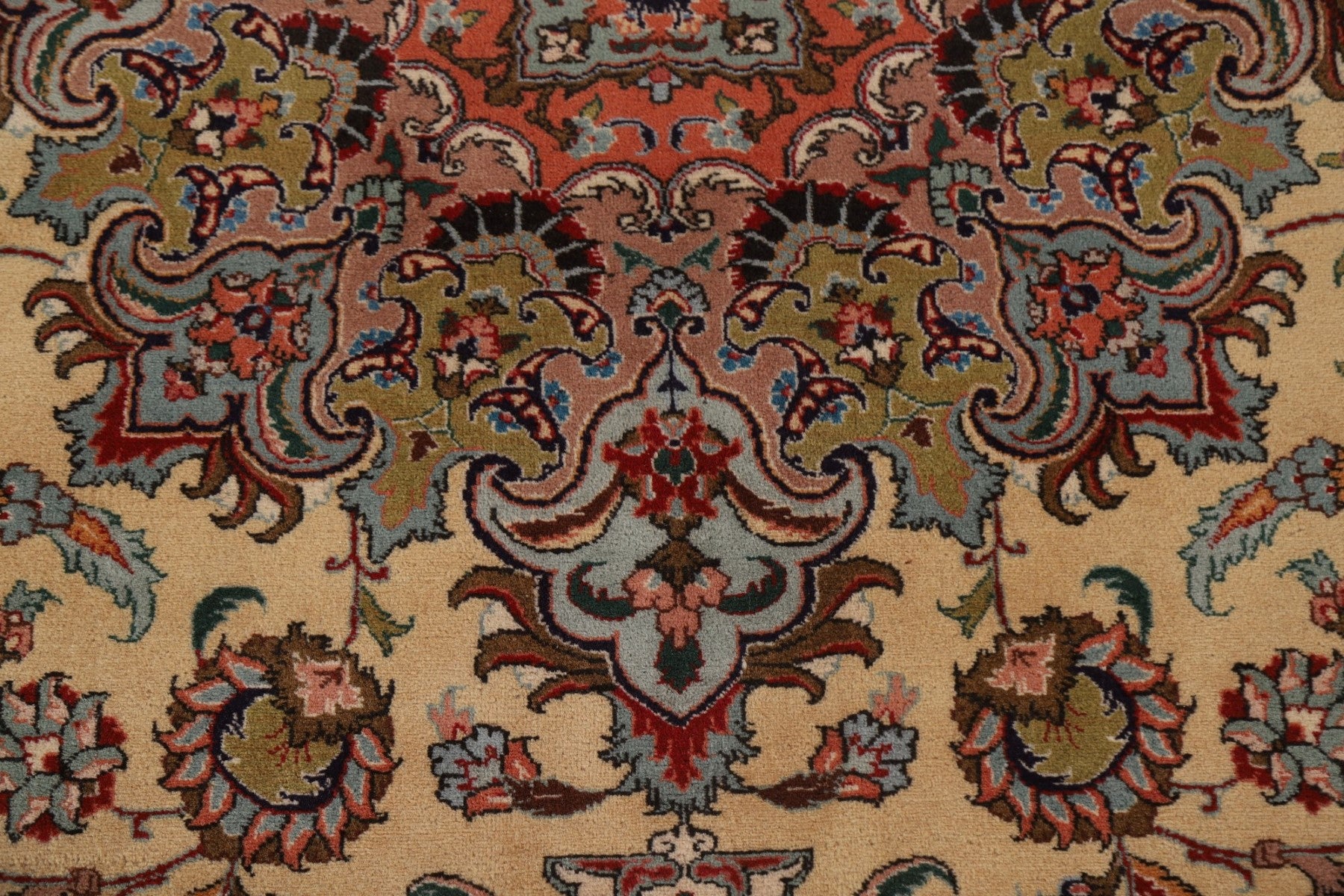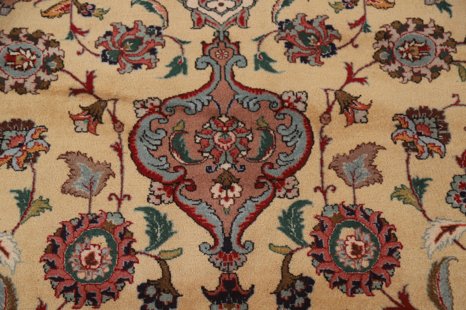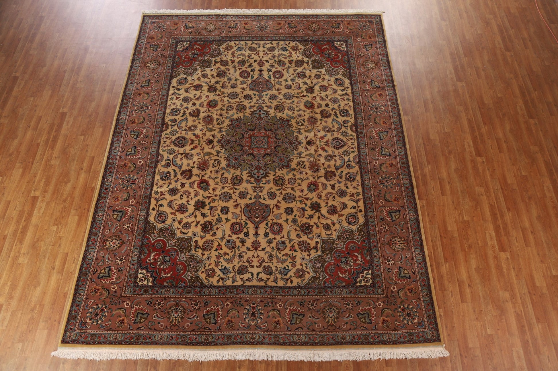 A Beautiful Genuine Persia ( Persia ) Tabriz rug is Hand Knotted by skillful weavers in Persia ( Persia ) with 100% Wool Material. This rug is in Excellent condition. dimensions are 12' 9'' X 9' 9'' in foot and 389 X 297 in centimeter. the primary color is Beige & Ivories.