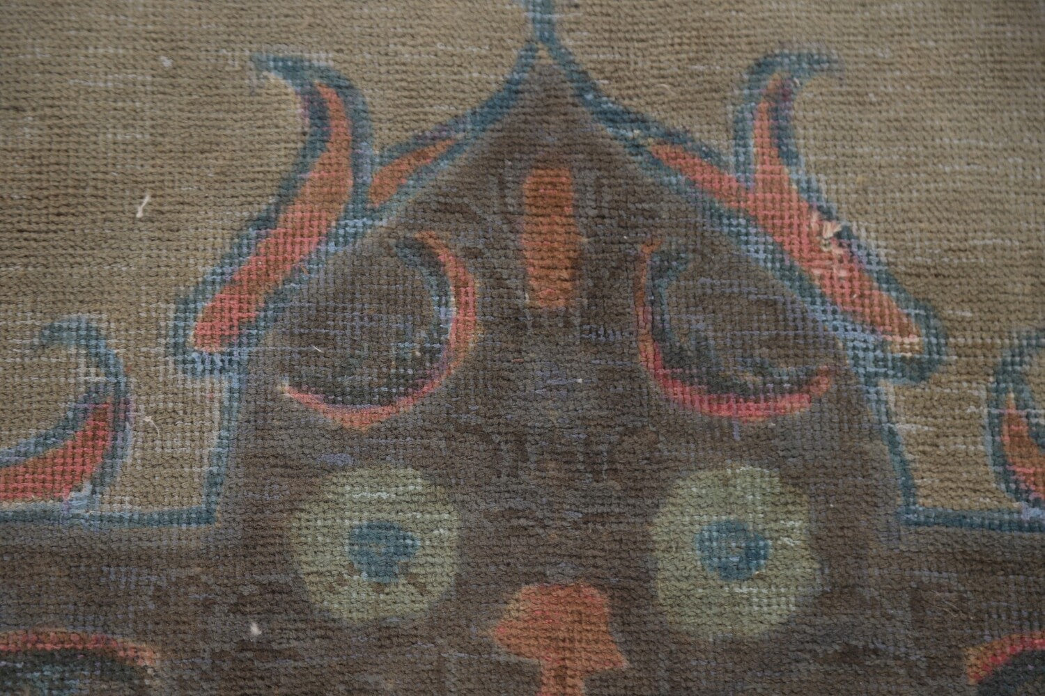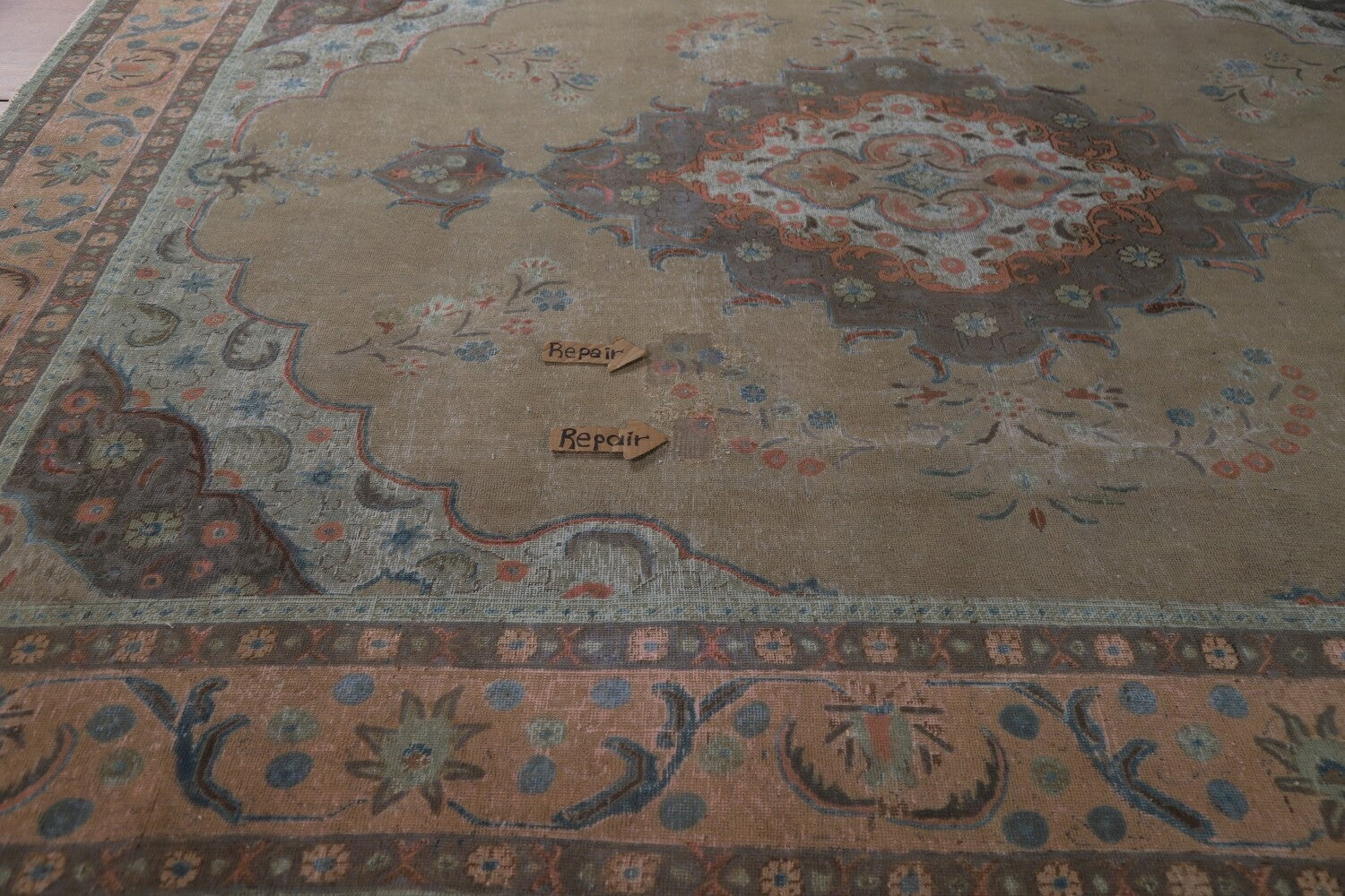 A Beautiful Genuine Persia ( Persia ) Tabriz rug is Hand Knotted by skillful weavers in Persia ( Persia ) with 100% Wool Material. This rug is in Very Good ( Evenly Low Pile-Repair) condition. dimensions are 12' 9'' X 10' 0'' in foot and 389 X 305 in centimeter. the primary color is Green.