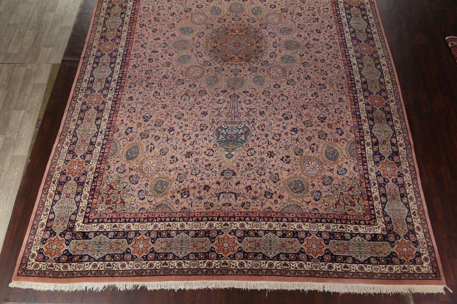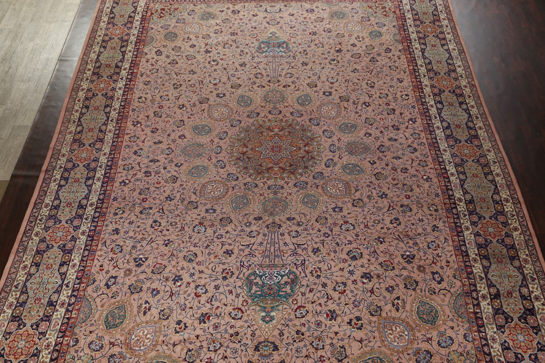 A Beautiful Genuine Persia ( Persia ) Tabriz rug is Hand Knotted by skillful weavers in Persia ( Persia ) with 100% Wool Material. This rug is in Excellent condition. dimensions are 19' 2'' X 12' 8'' in foot and 584 X 386 in centimeter. the primary color is Pink.