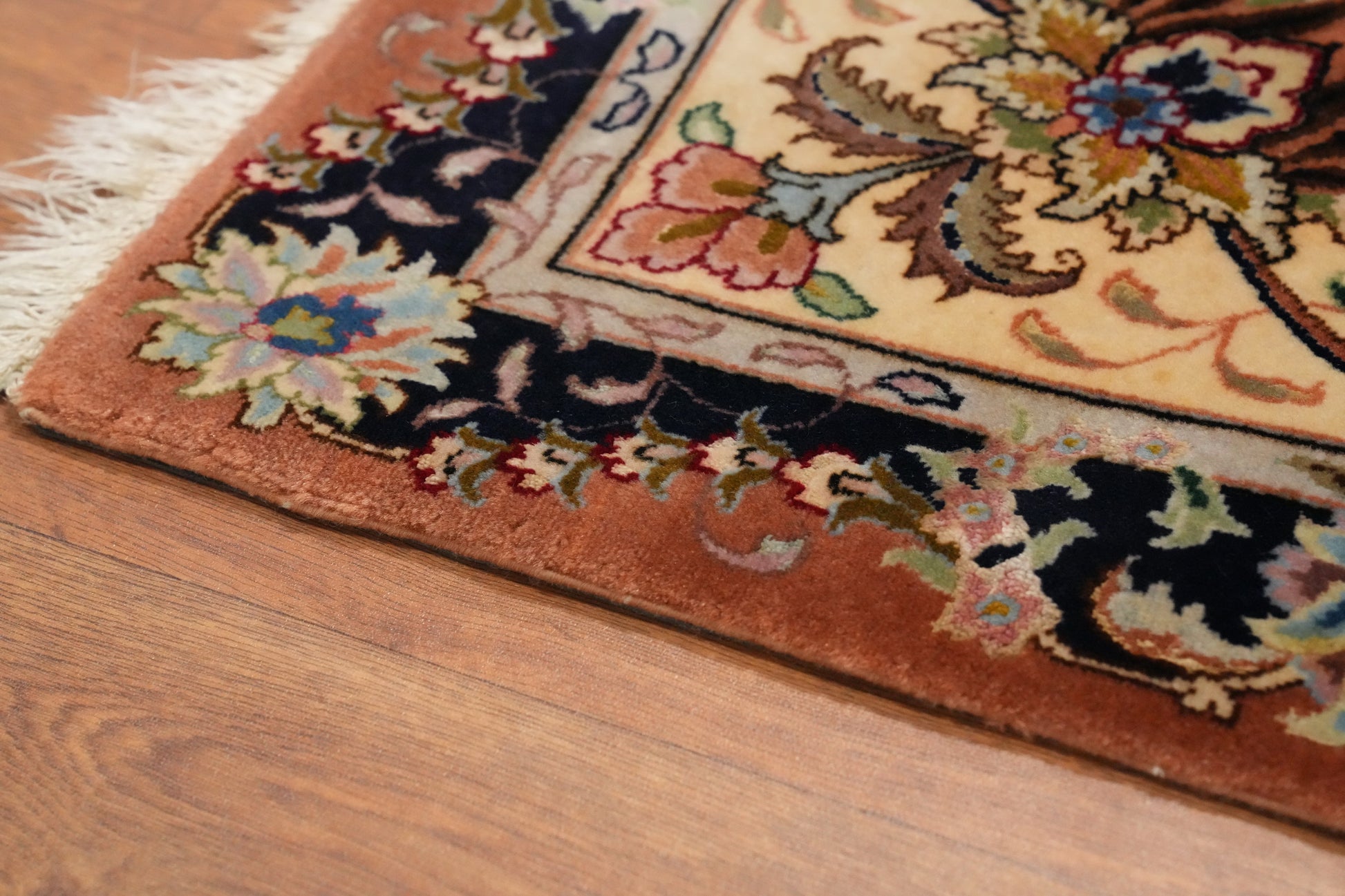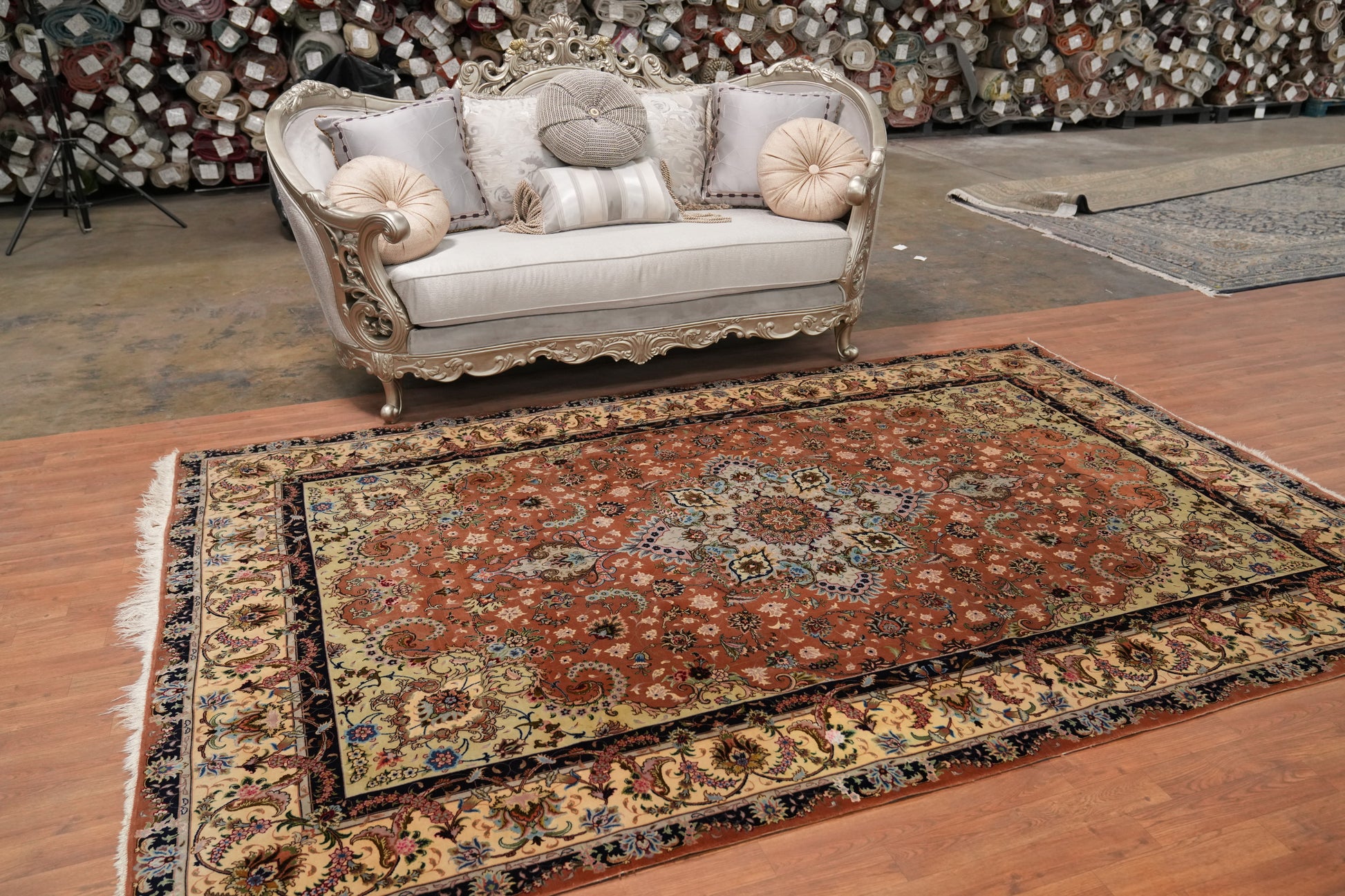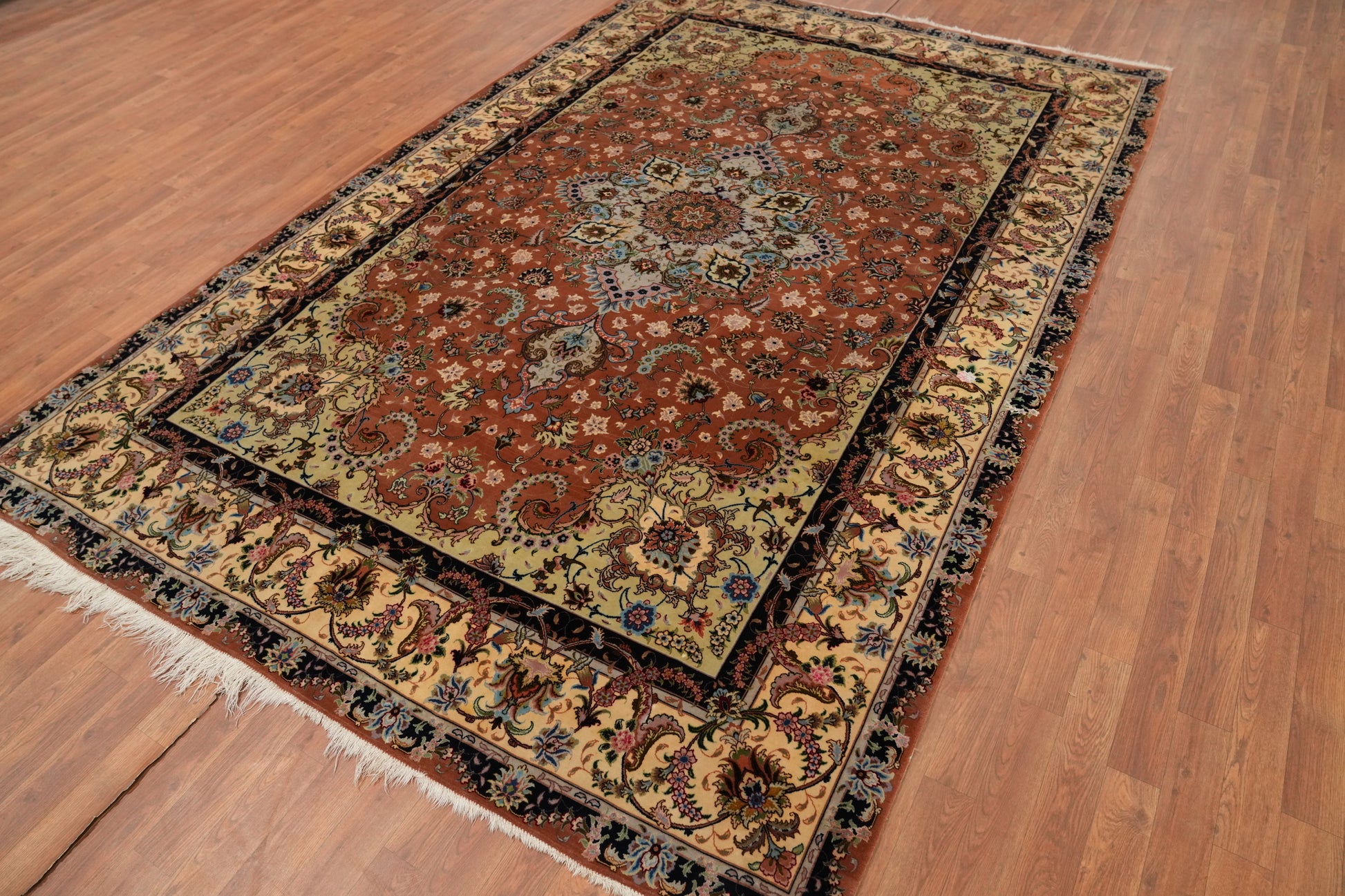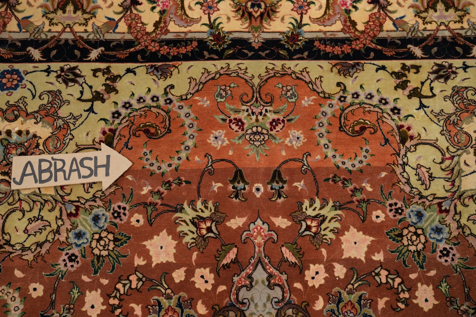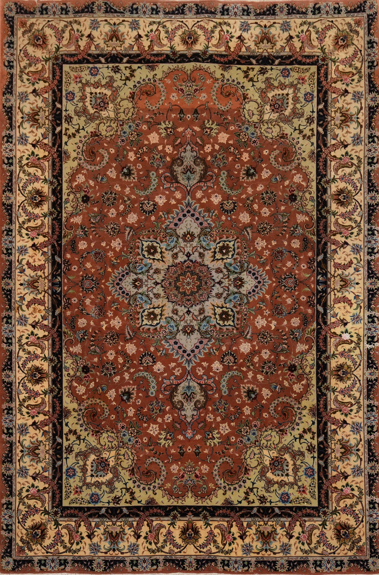 A Beautiful Genuine Persia ( Persia ) Tabriz rug is Hand Knotted by skillful weavers in Persia ( Persia ) with 100% Wool Material. This rug is in Very Good (Abrash) condition. dimensions are 10' 1'' X 6' 8'' in foot and  307 X 203 in centimeter. the primary color is Oranges & Rust.