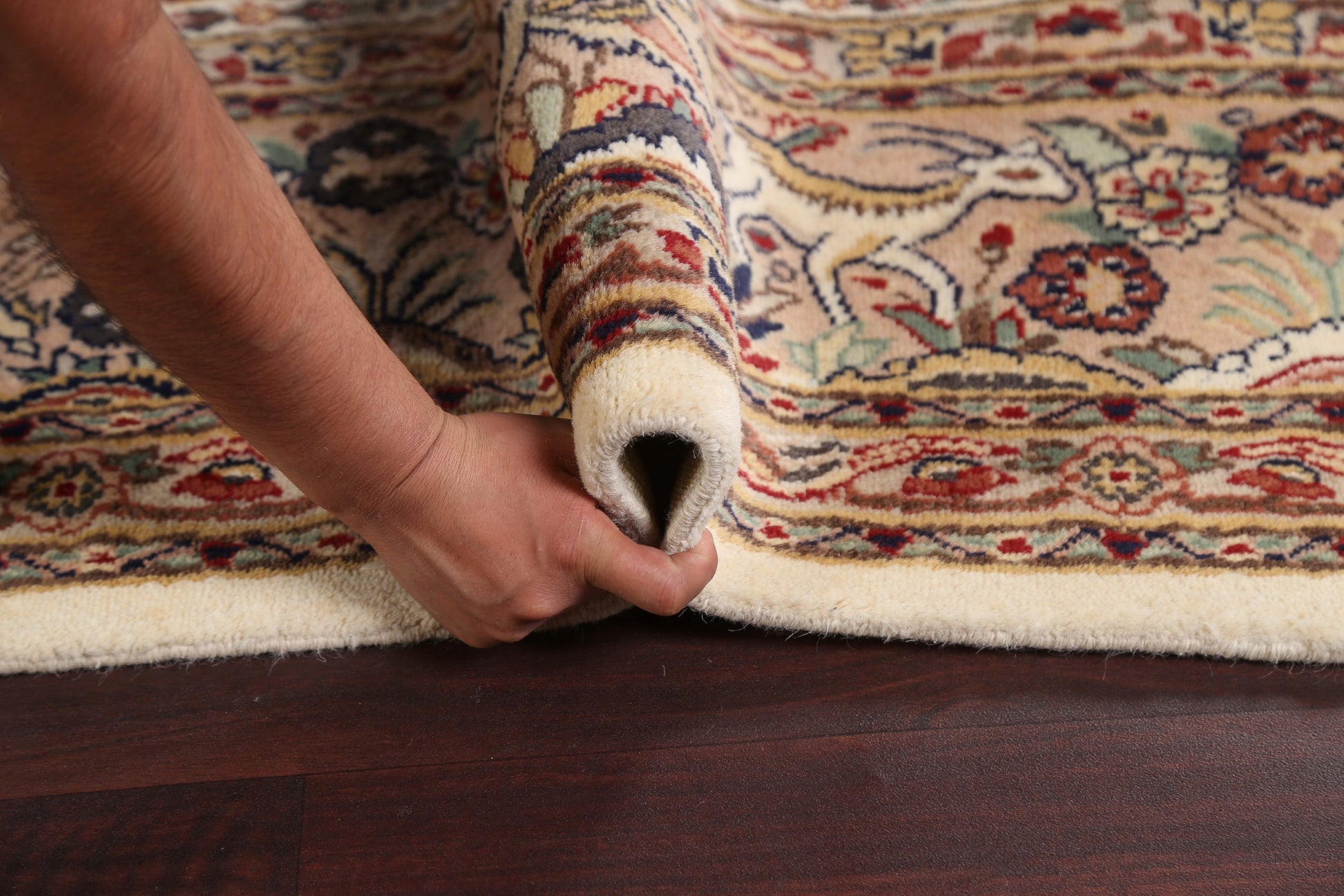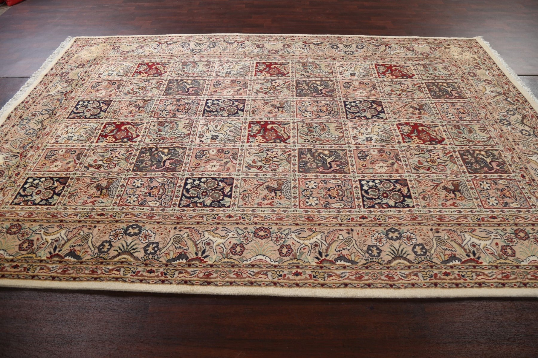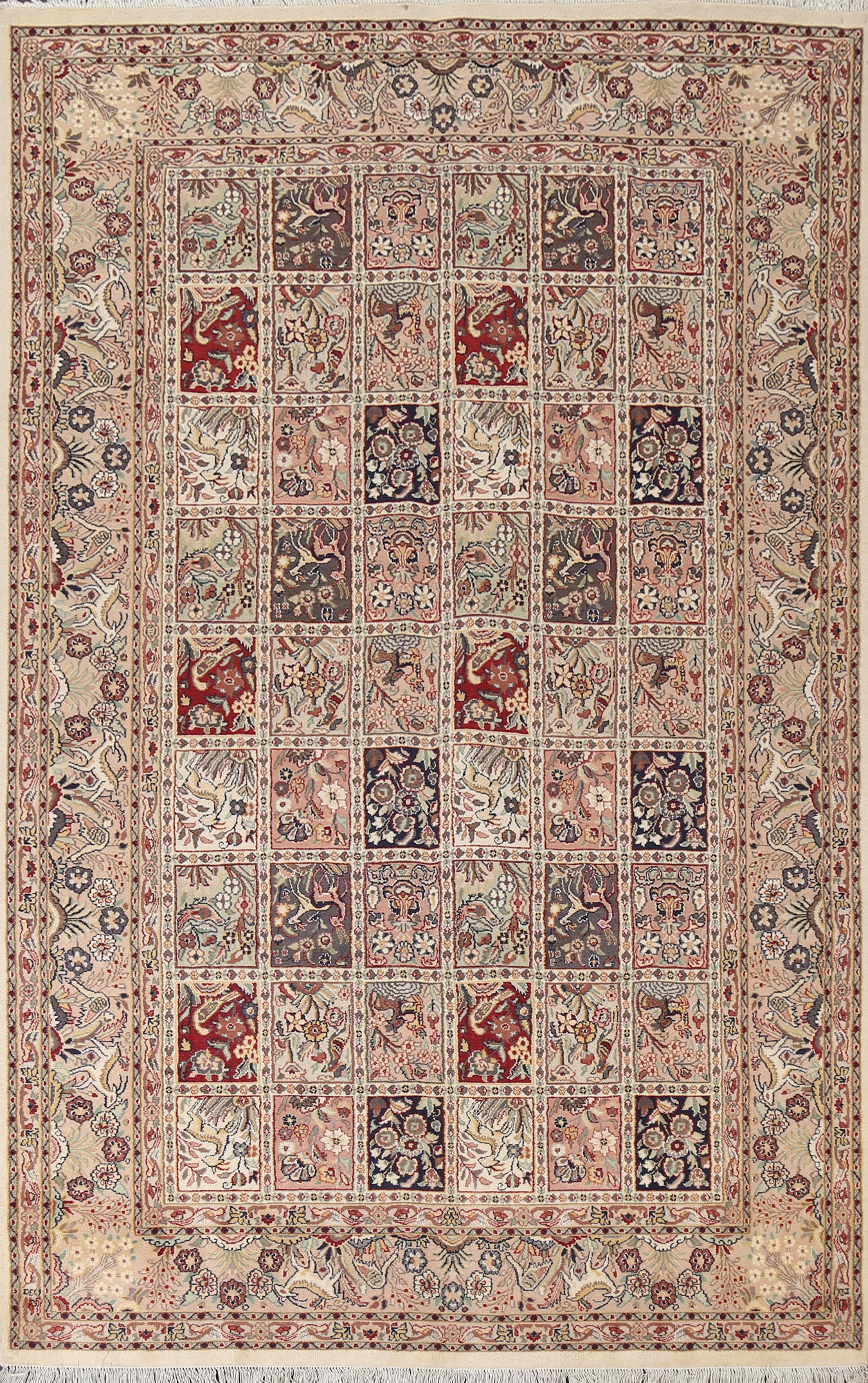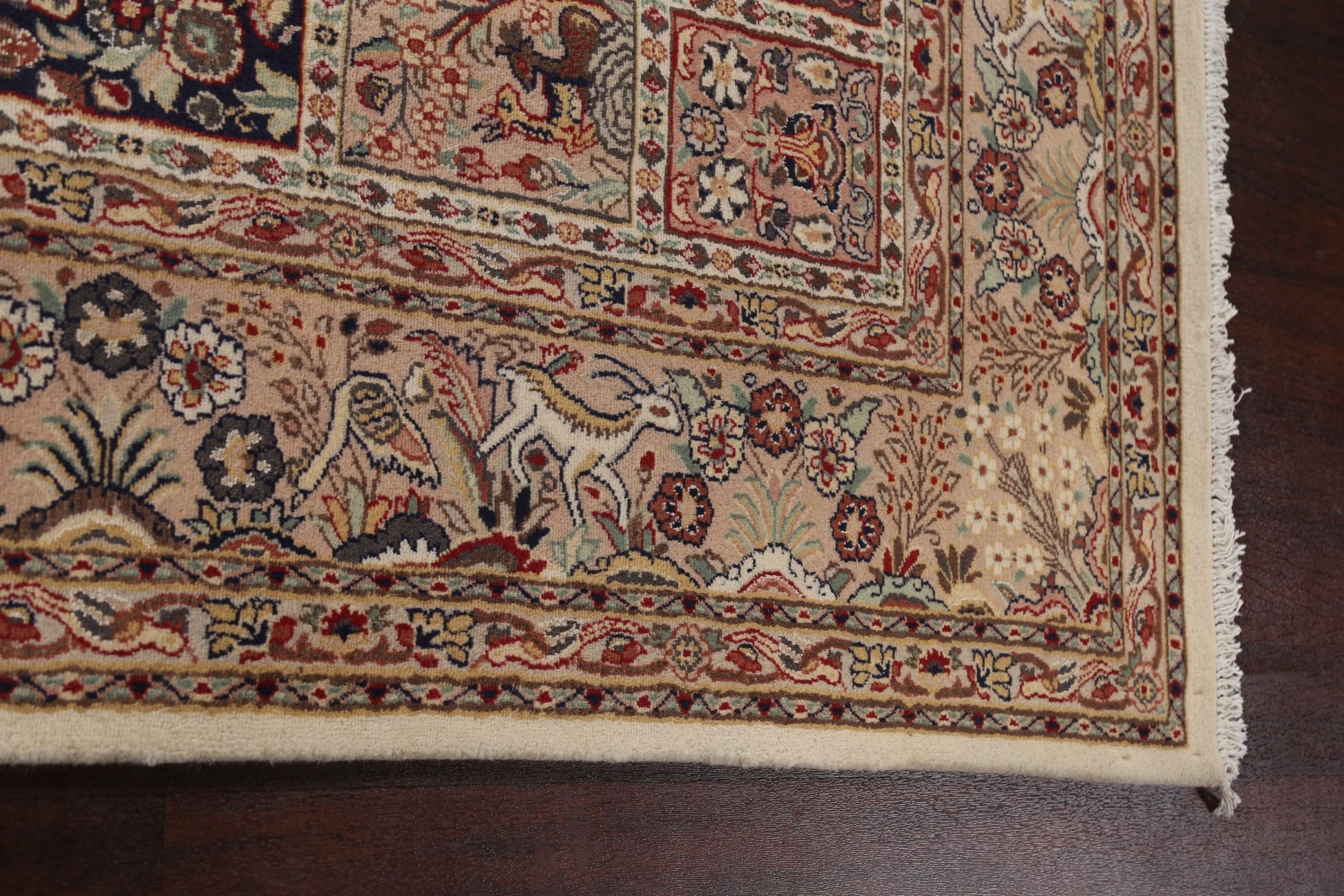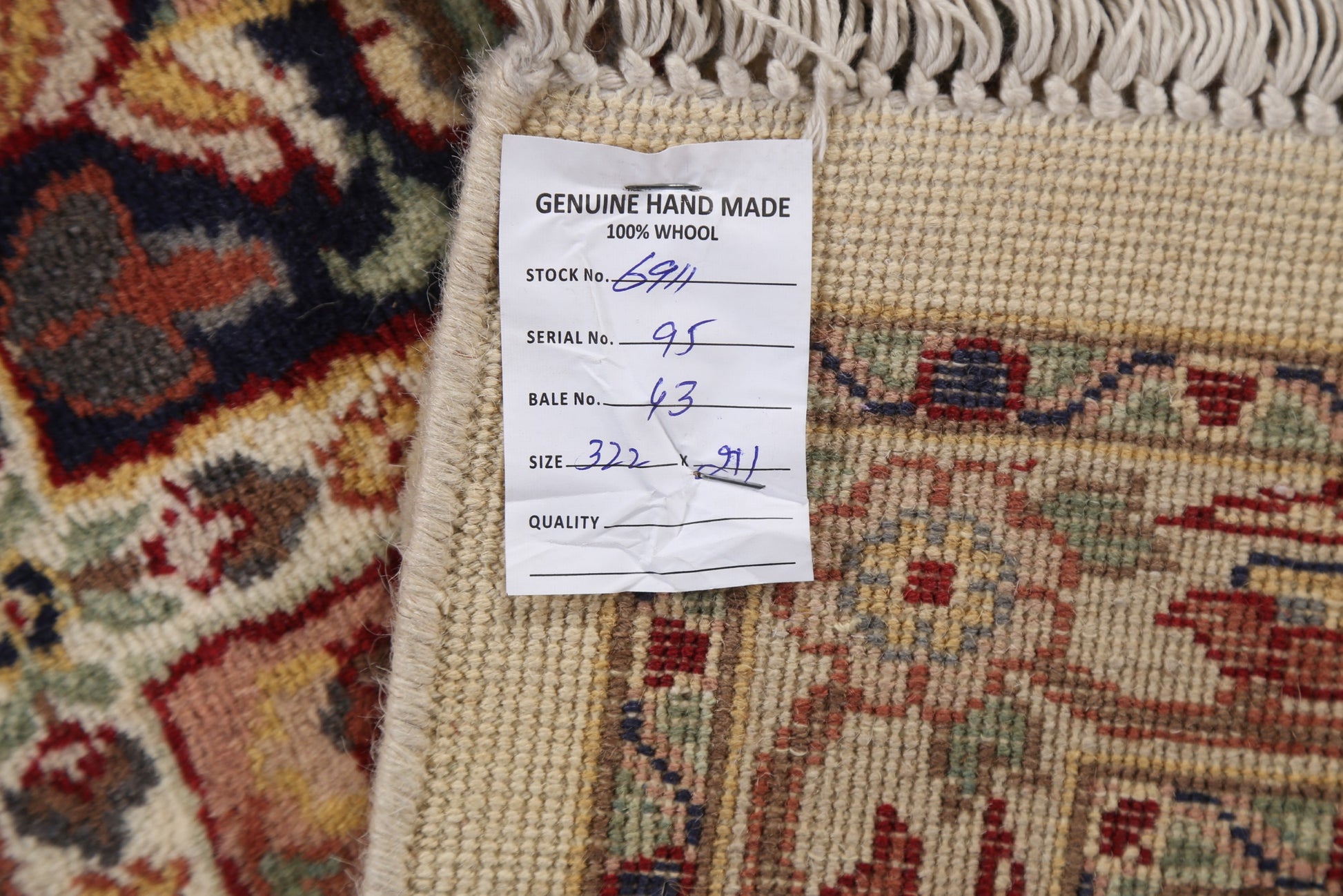A Beautiful Genuine Persia ( Persia ) Tabriz rug is Hand Knotted by skillful weavers in Persia ( Persia ) with 100% Wool Material. This rug is in New, First Quality condition. dimensions are 10' 7'' X 6' 11'' in foot and 323 X 211 in centimeter. the primary color is Beige & Ivories.