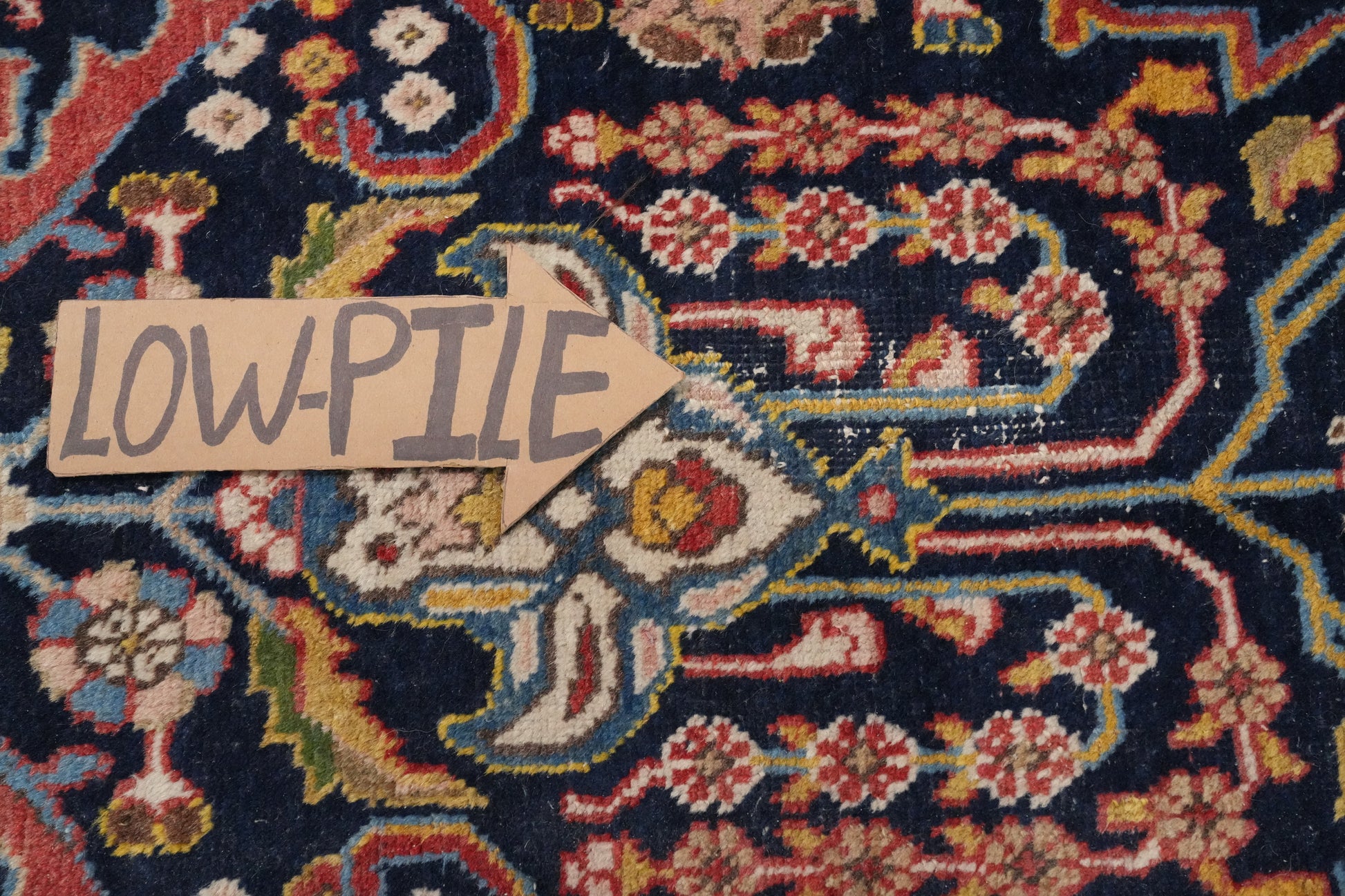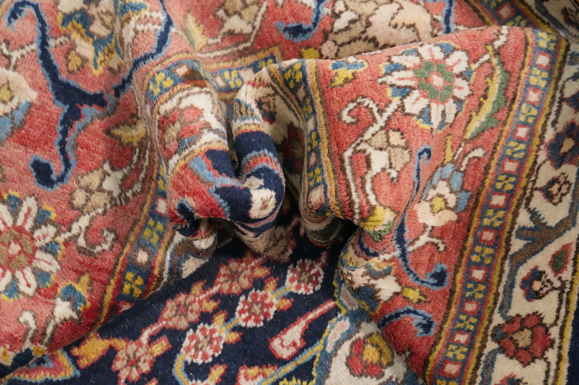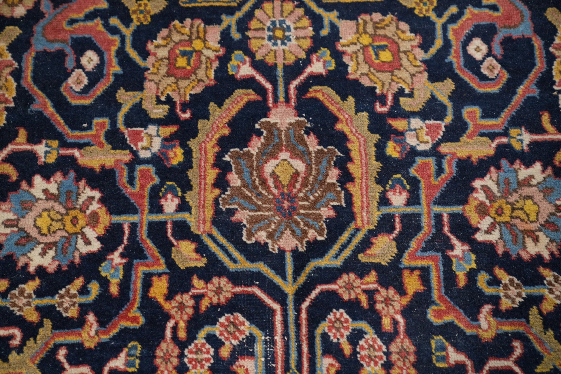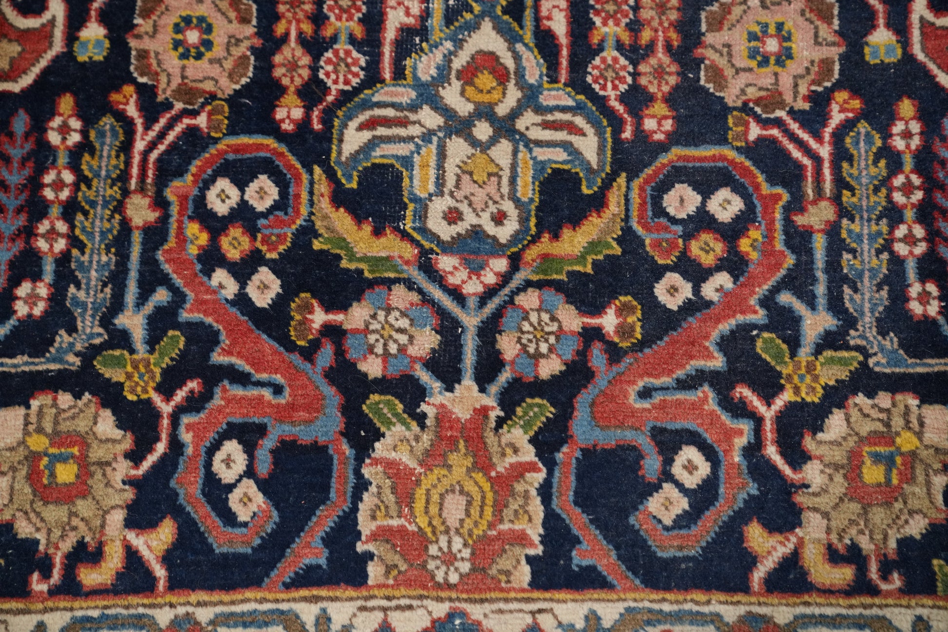 A Beautiful Genuine Persia ( Persia ) Tabriz rug is Hand Knotted by skillful weavers in Persia ( Persia ) with 100% Wool Material. This rug is in Very Good ( Low Pile ) condition. dimensions are 10' 6'' X 7' 2'' in foot and 320 X 218 in centimeter. the primary color is Navy Blue & Blues.
