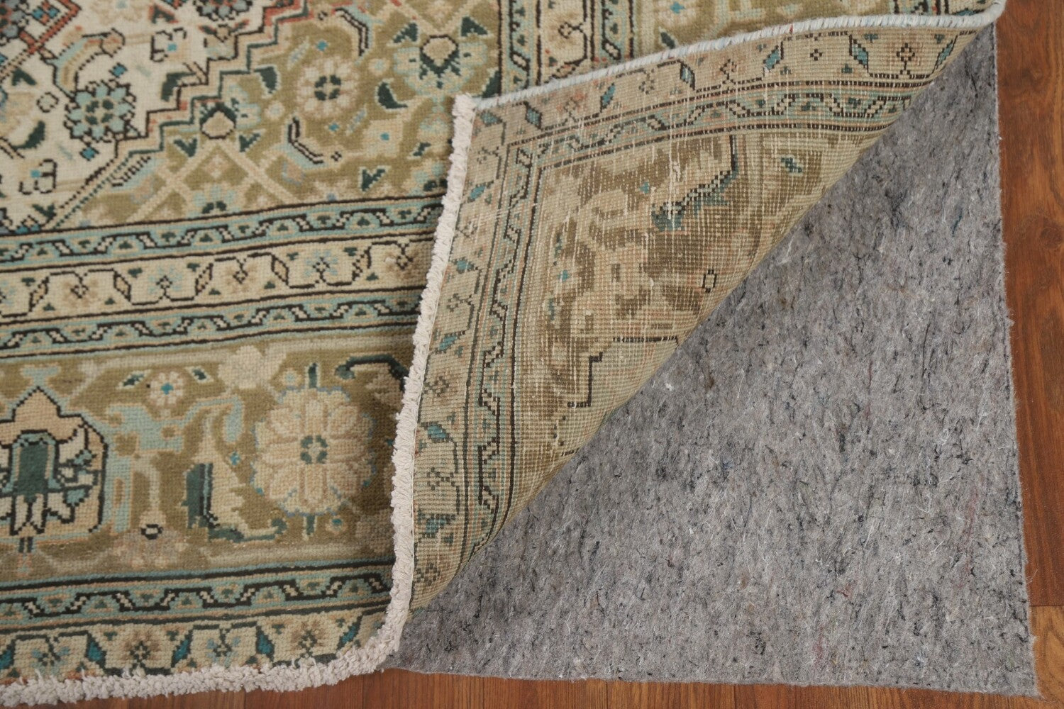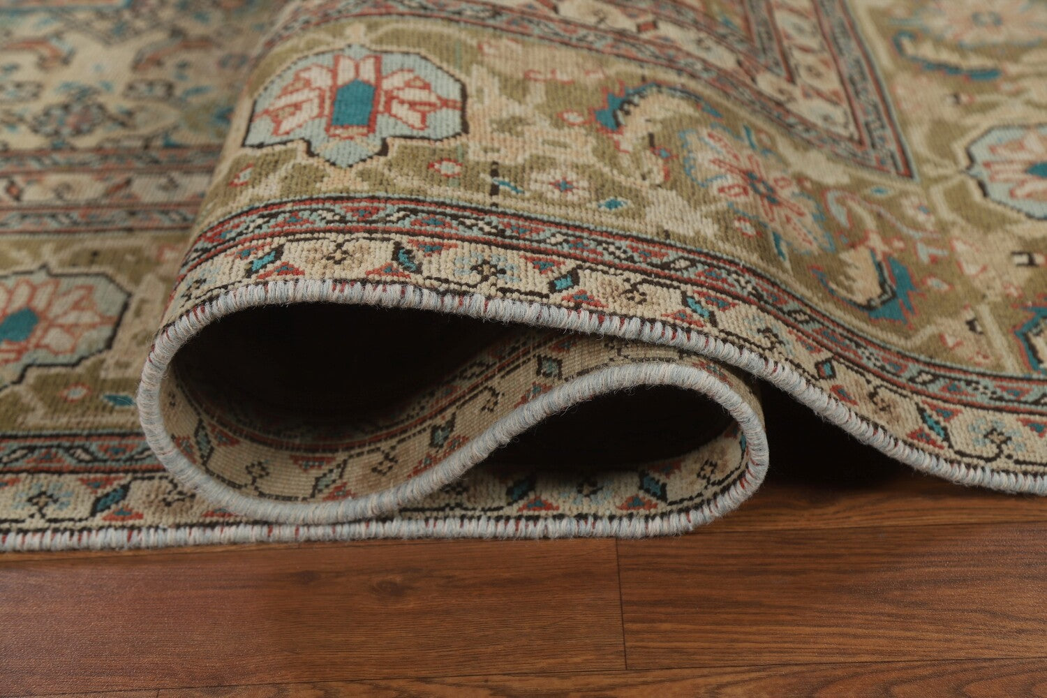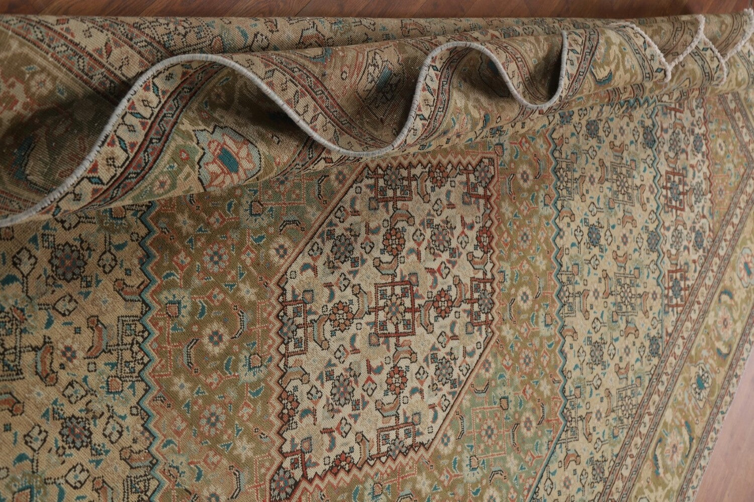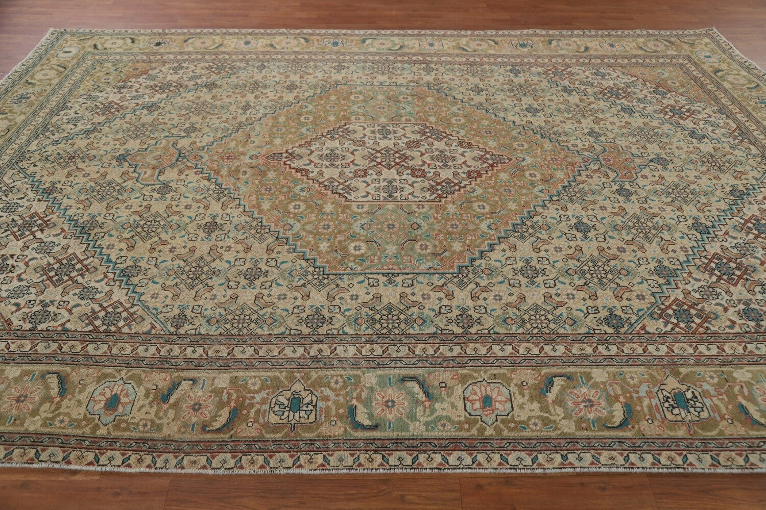 A Beautiful Genuine Persia ( Persia ) Tabriz rug is Hand Knotted by skillful weavers in Persia ( Persia ) with 100% Wool Material. This rug is in Very Good (Abrash) condition. dimensions are 11' 0'' X 7' 8'' in foot and 335 X 234 in centimeter. the primary color is Beige & Ivories.