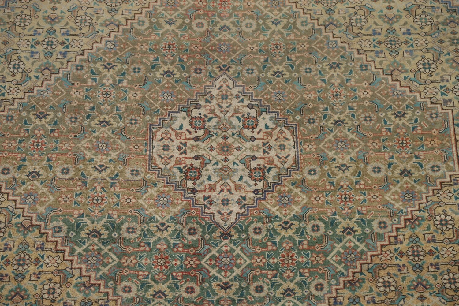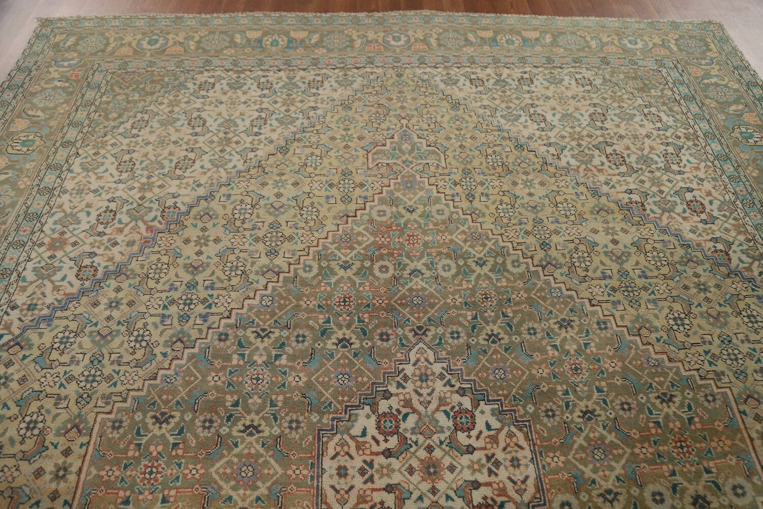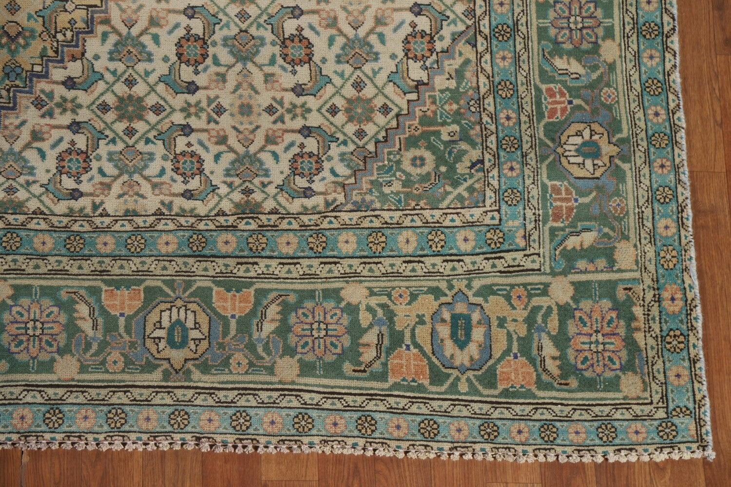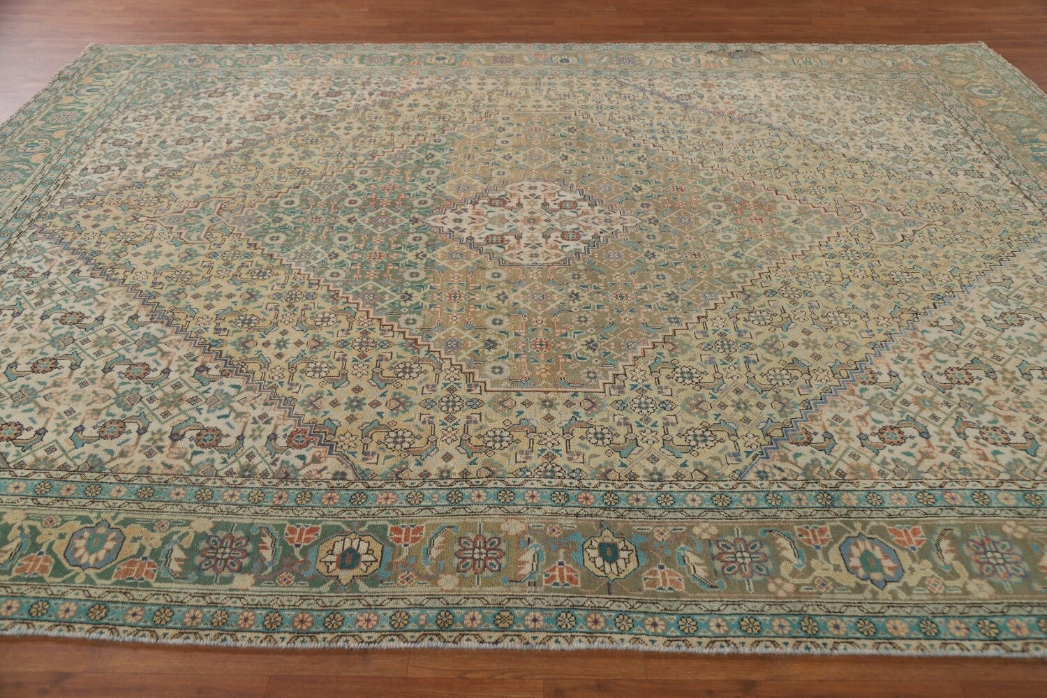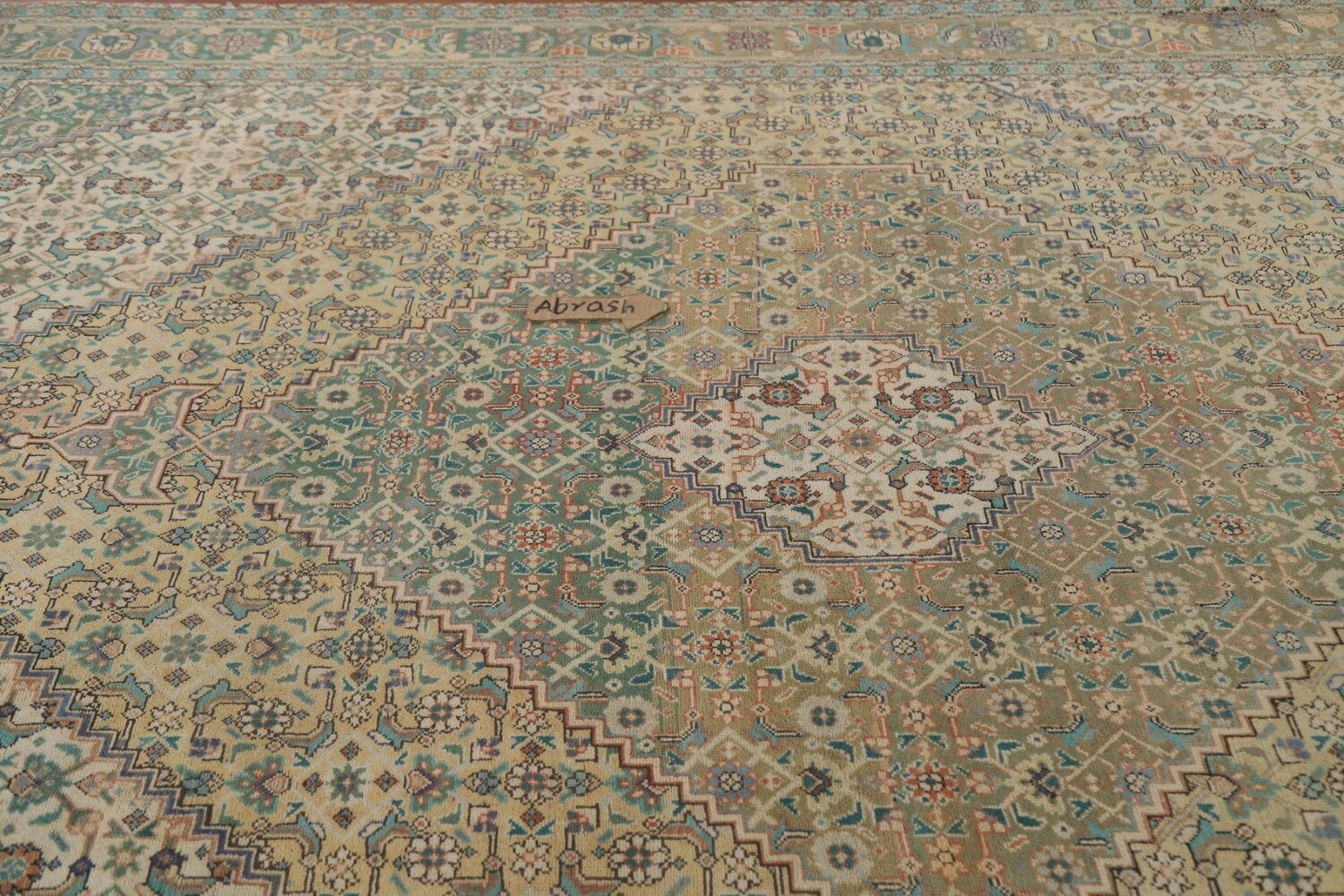 A Beautiful Genuine Persia ( Persia ) Tabriz rug is Hand Knotted by skillful weavers in Persia ( Persia ) with 100% Wool Material. This rug is in Very Good (Abrash) condition. dimensions are 10' 9'' X 8' 2'' in foot and 328 X 249 in centimeter. the primary color is Peach.
