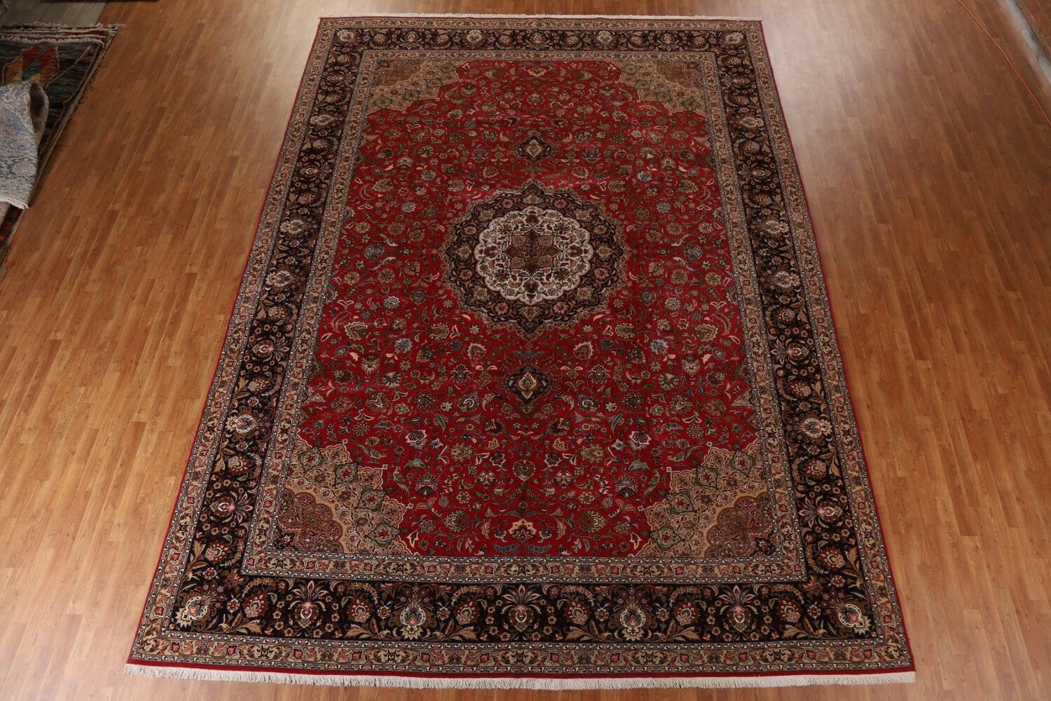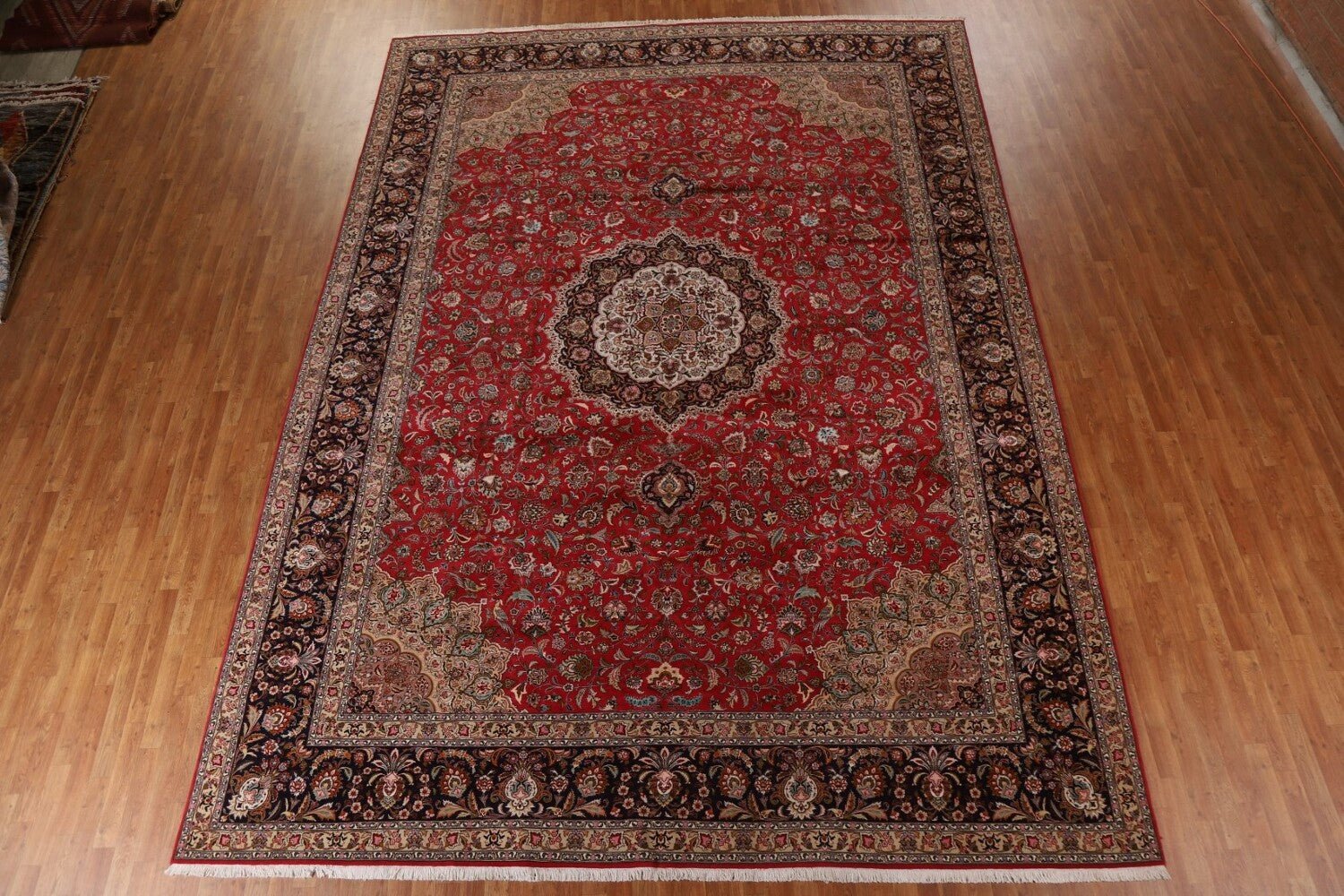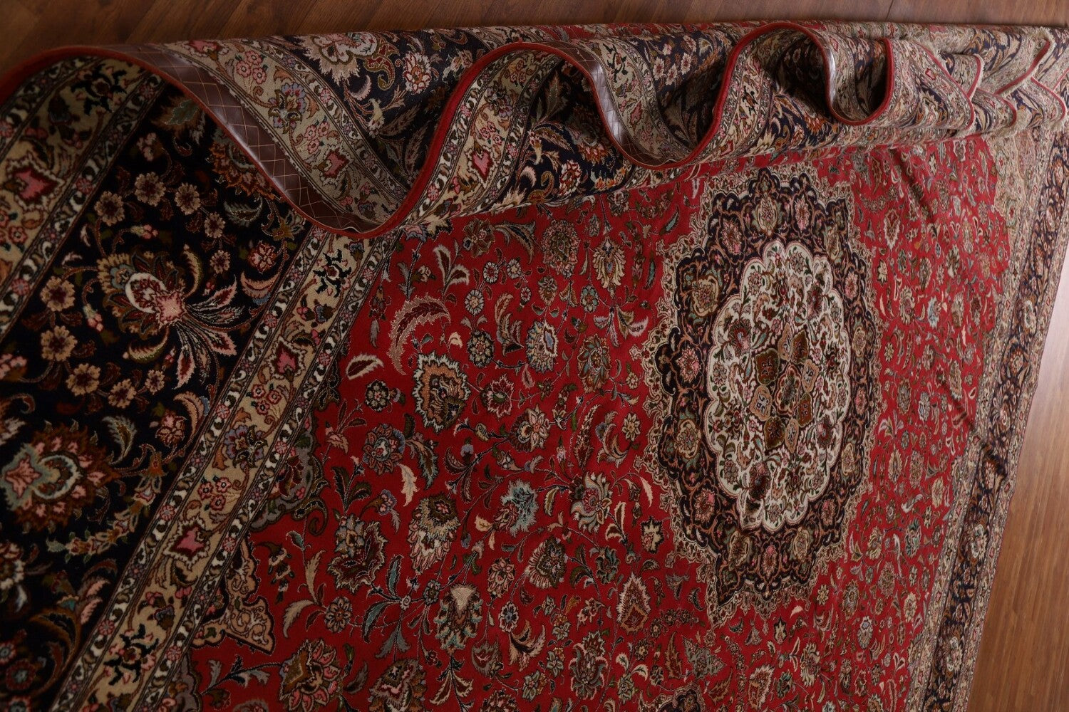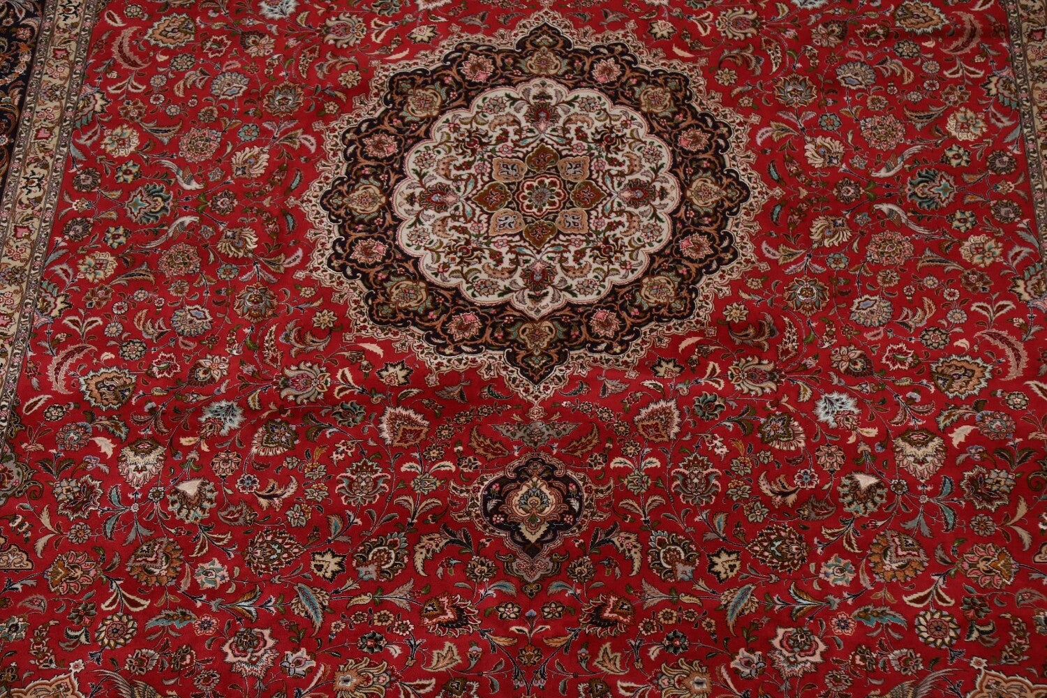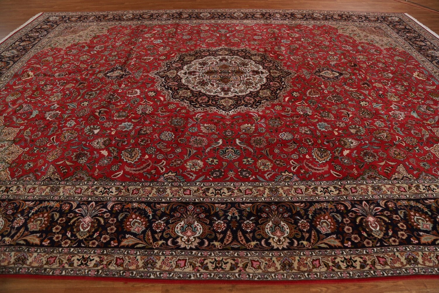A Beautiful Genuine Persia ( Persia ) Tabriz rug is Hand Knotted by skillful weavers in Persia ( Persia ) with Wool & Silk Material. This rug is in condition. dimensions are 15' 7'' X 11' 4'' in foot and 475 X 345 in centimeter. the primary color is Red.