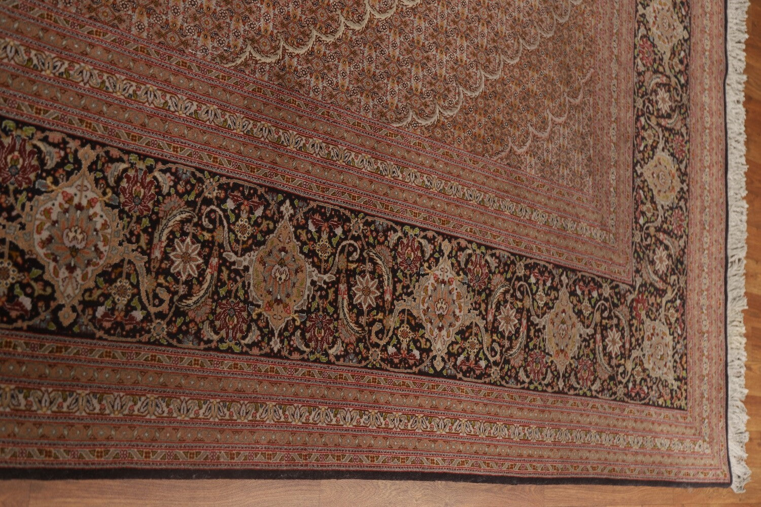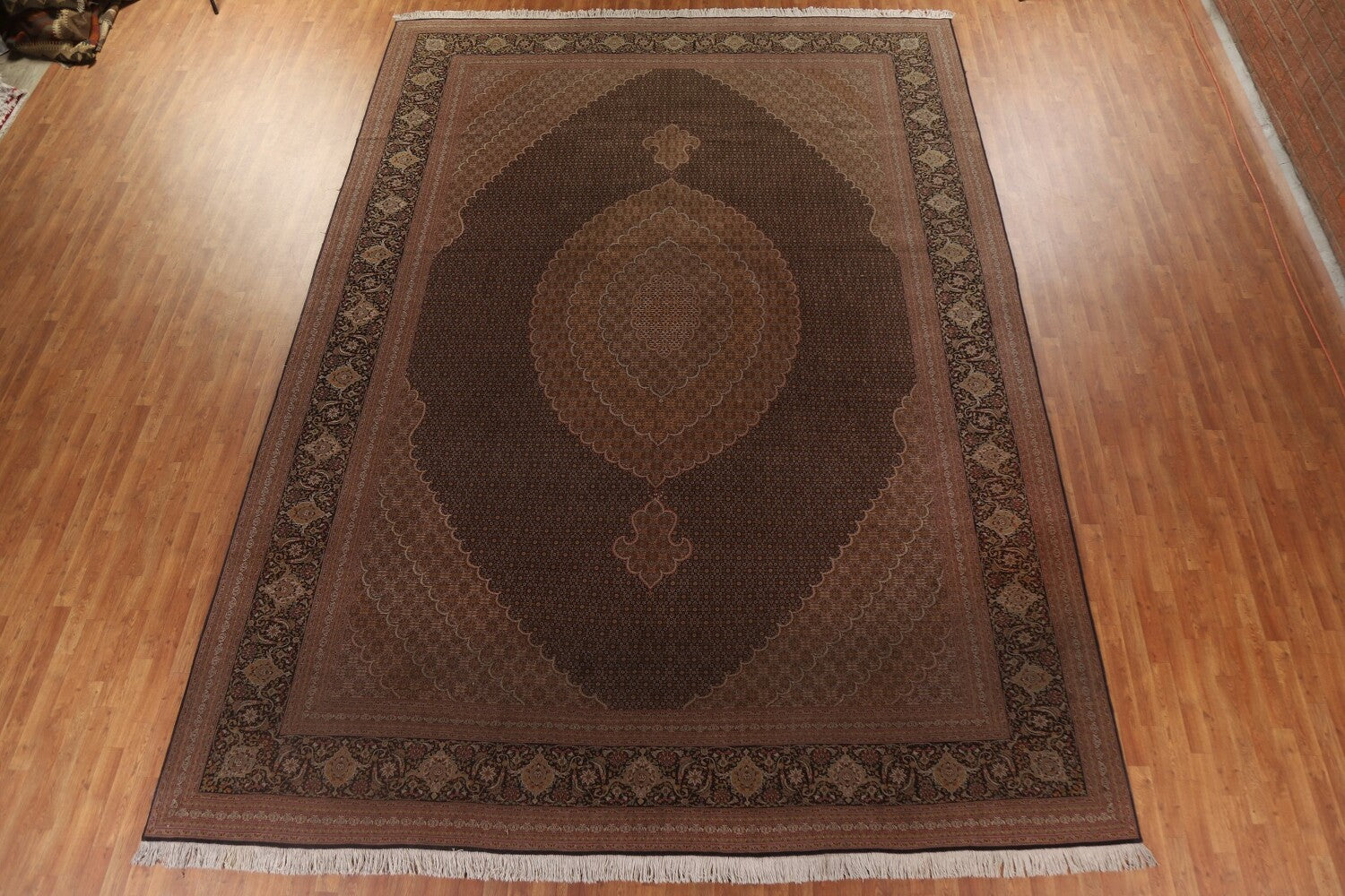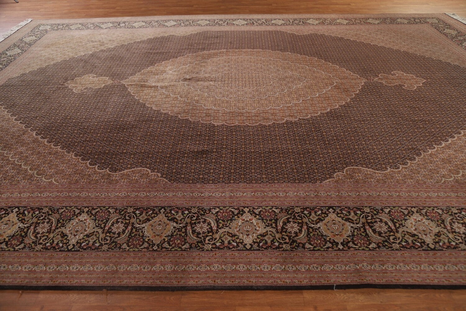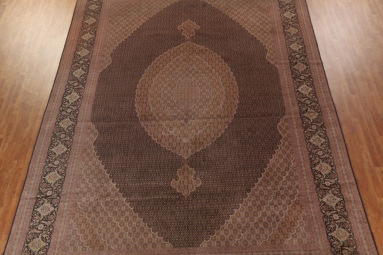 A Beautiful Genuine Persia ( Persia ) Tabriz rug is Hand Knotted by skillful weavers in Persia ( Persia ) with 100% Wool Material. This rug is in Excellent condition. dimensions are 15' 11'' X 11' 5'' in foot and 485 X 348 in centimeter. the primary color is Black.