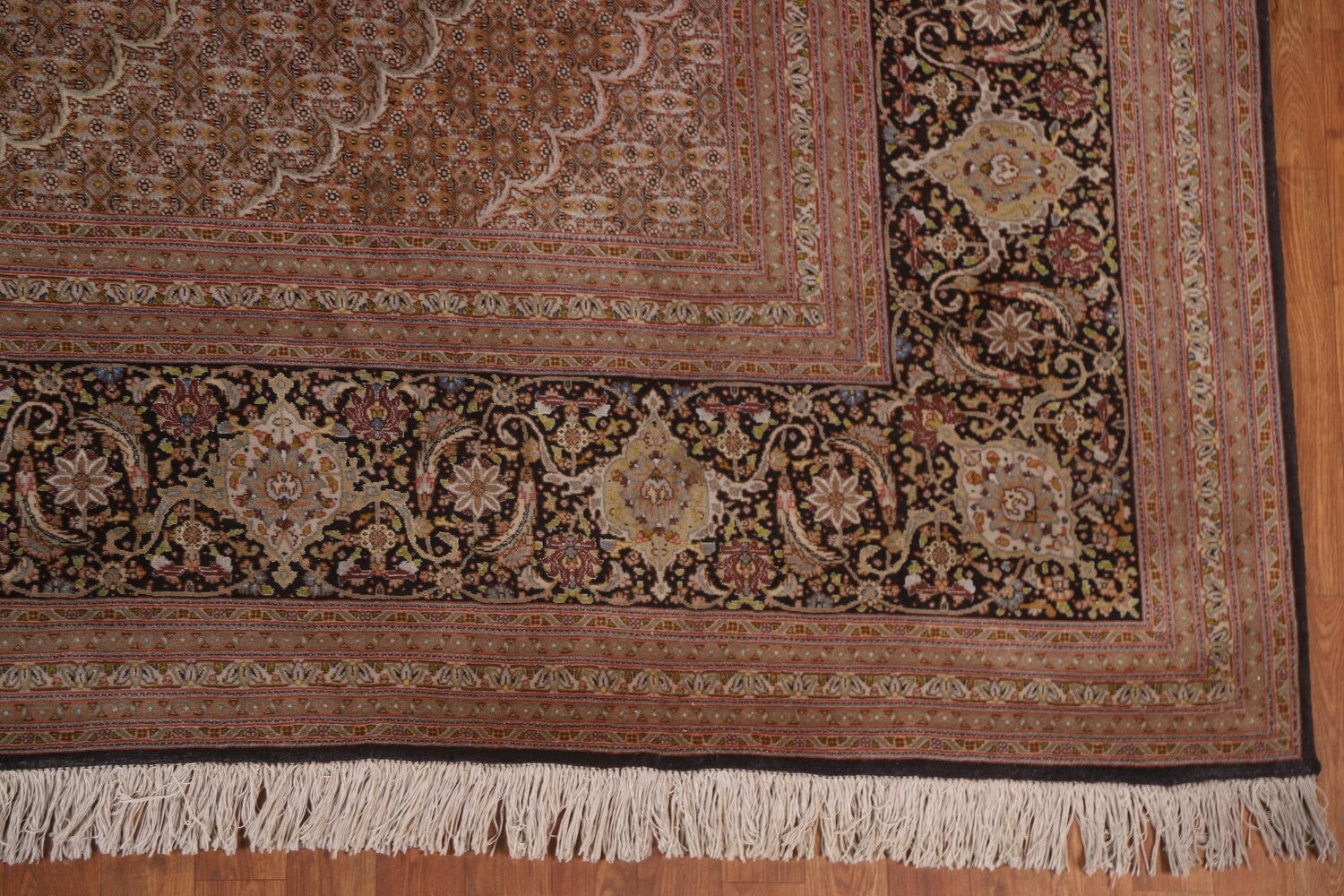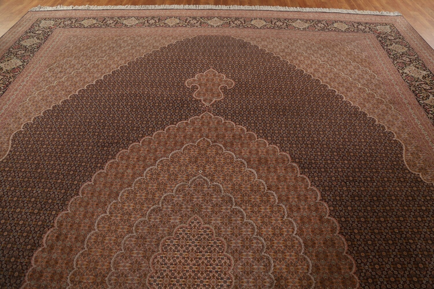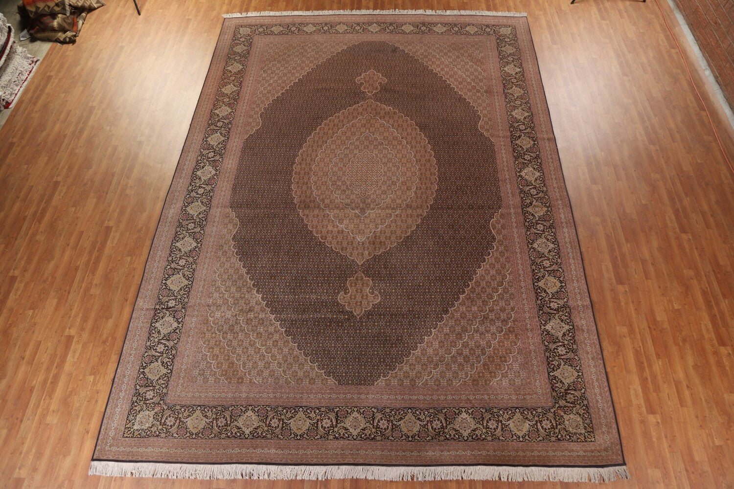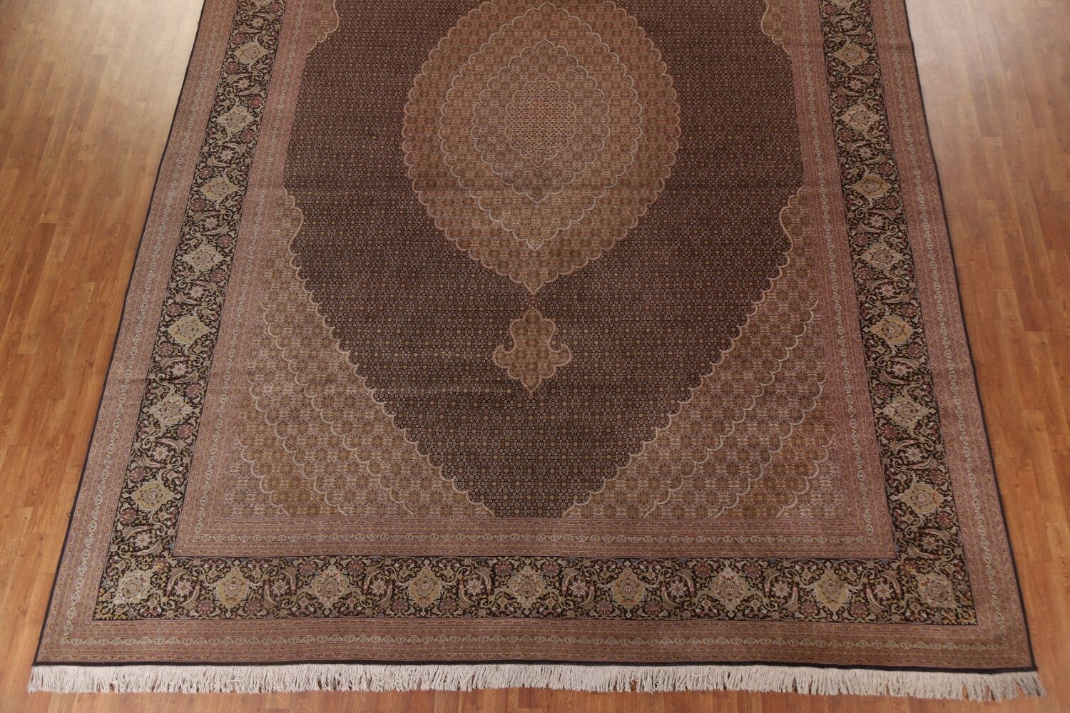 A Beautiful Genuine Persia ( Persia ) Tabriz rug is Hand Knotted by skillful weavers in Persia ( Persia ) with 100% Wool Material. This rug is in Excellent condition. dimensions are 15' 11'' X 11' 5'' in foot and 485 X 348 in centimeter. the primary color is Black.